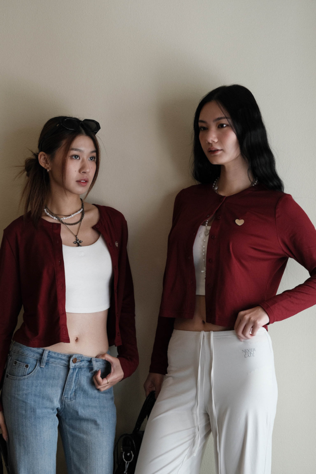 自家原創酒紅牛奶絲開胸小外套