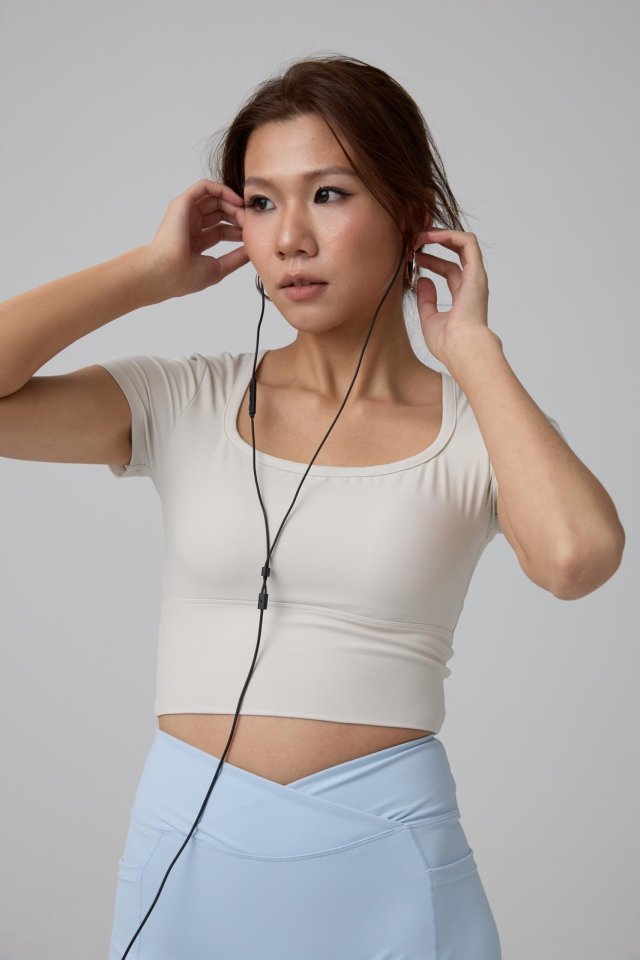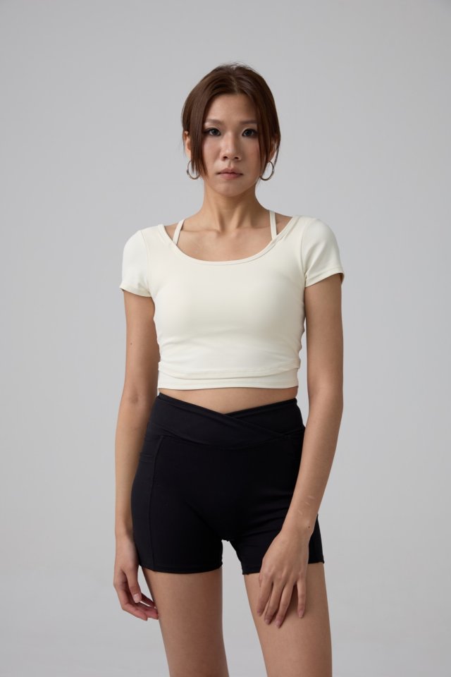 NVTT534 - 象牙白方領貼身短袖Bra Top