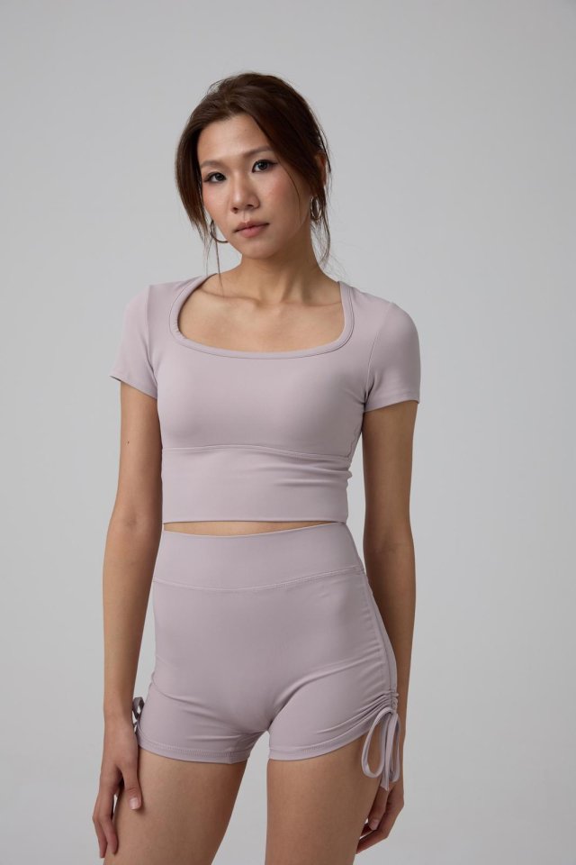 NVTT536 - 灰紫方領貼身短袖Bra Top