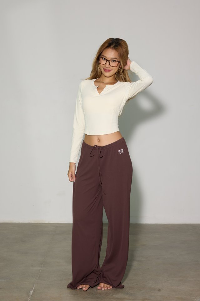 NVTT516- 淺卡其小V領修身隨性運動上衣(連胸墊)