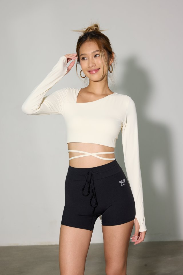 NVTT521- 象牙白斜領顯瘦綁帶運動上衣(連胸墊)