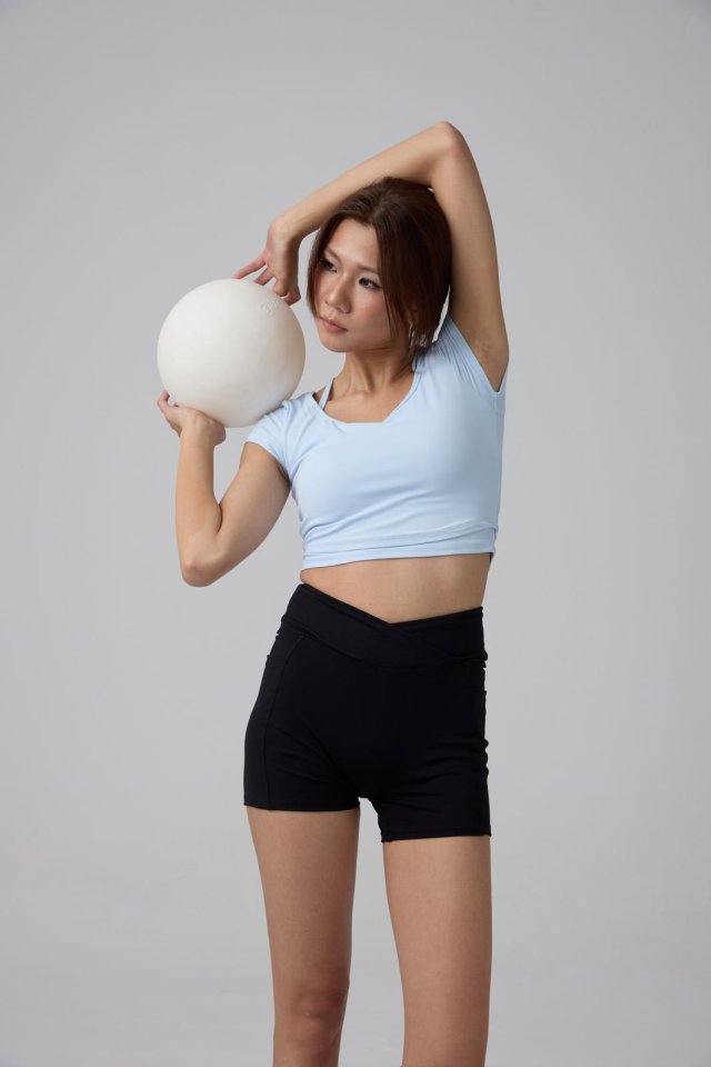 NVTP435- 灰藍裸感高腰三分褲(升級版)