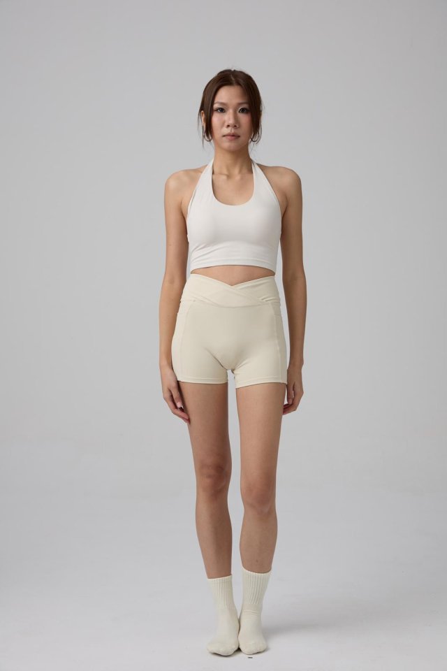 NVTP507 - 燕麥杏交叉腰側袋緊緻兩分褲