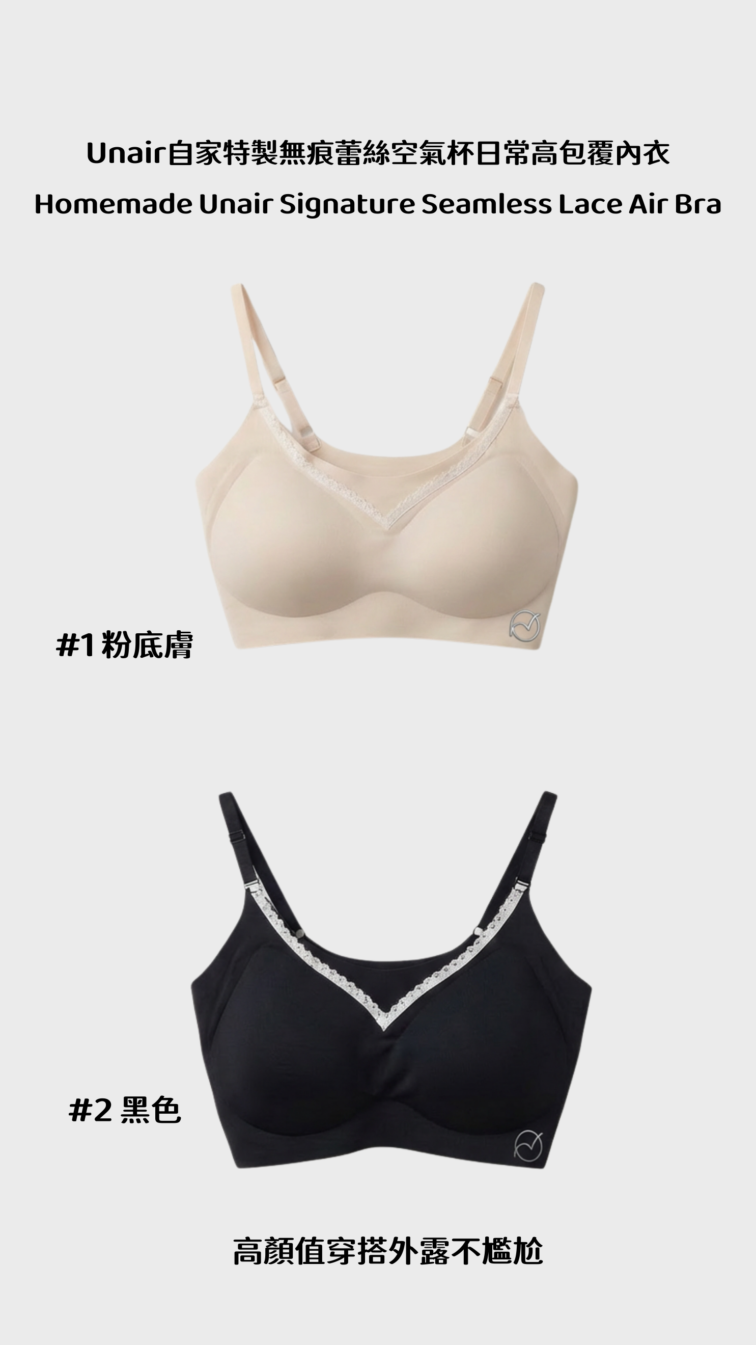 Unair自家特製無痕蕾絲空氣杯日常高包覆內衣