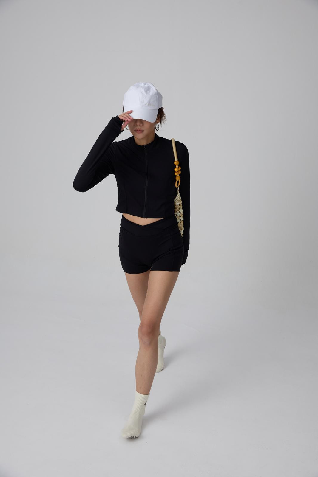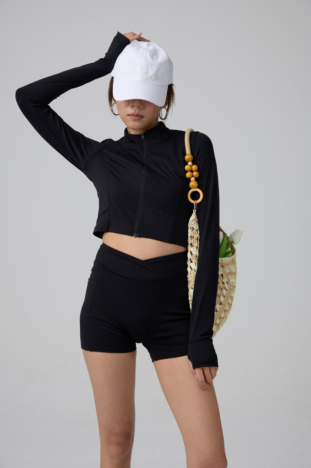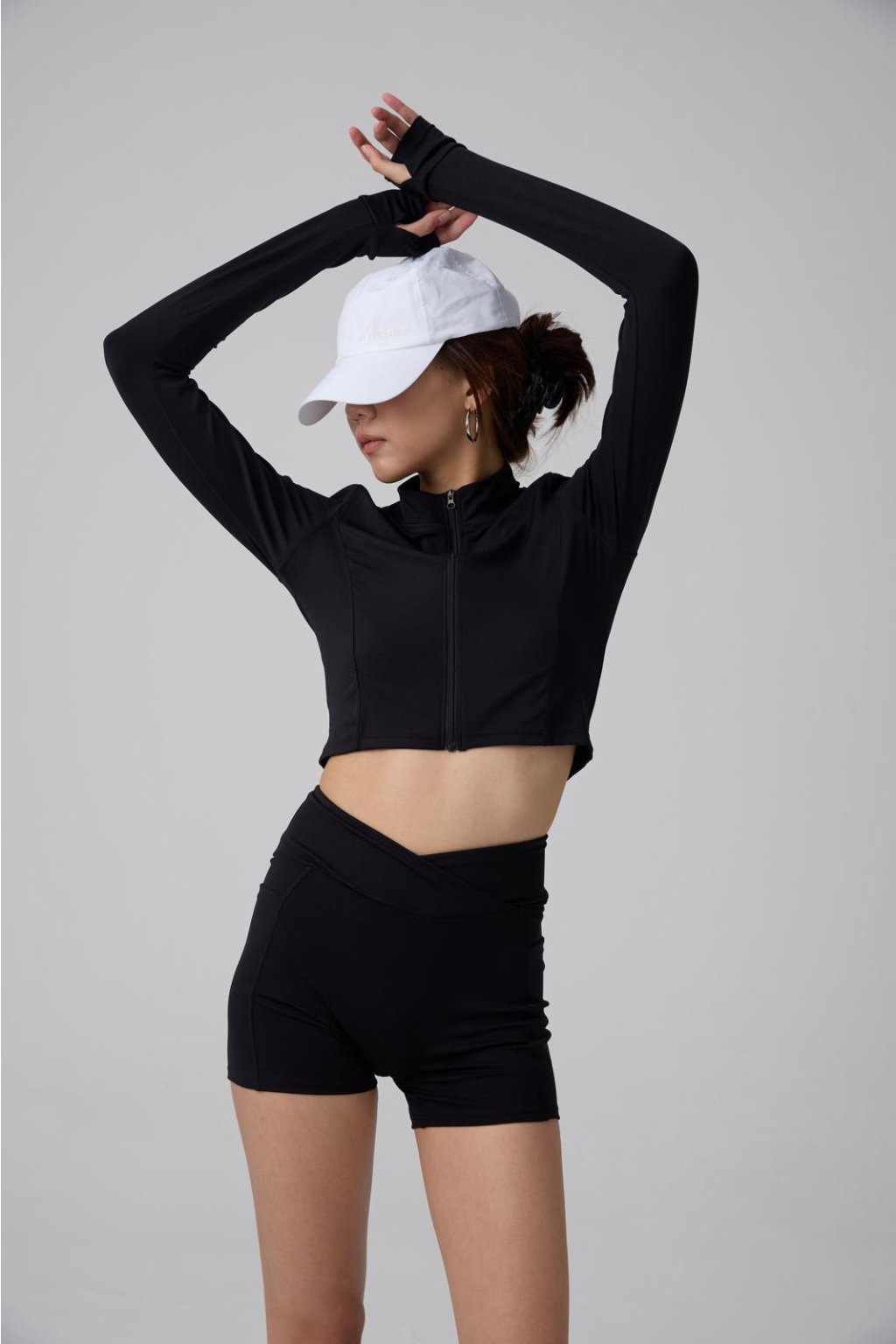 NVTO642 - 黑色顯瘦修腰短款立領運動外套