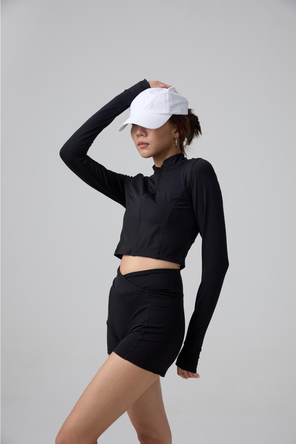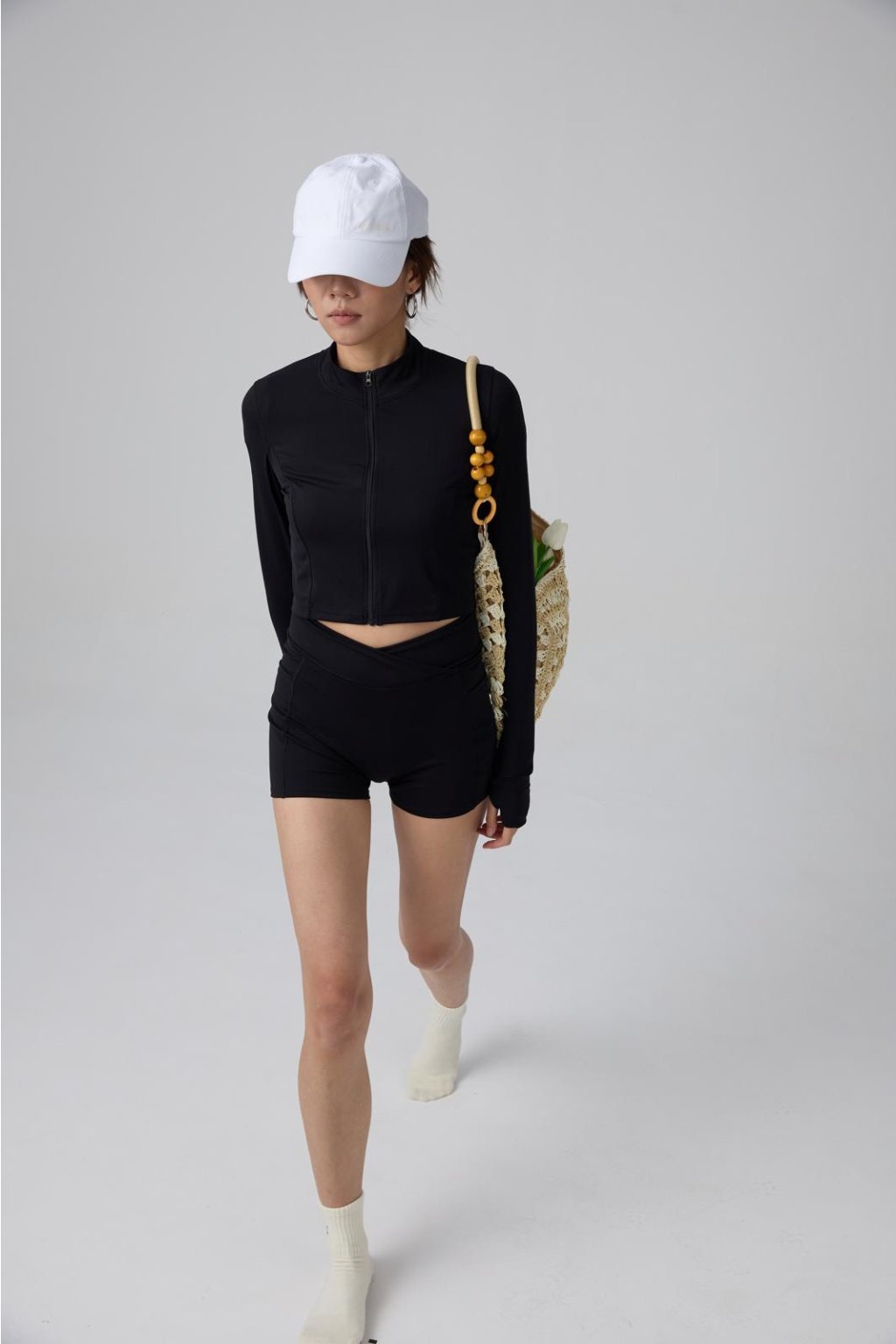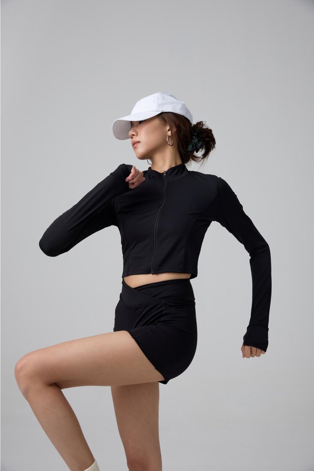 NVTO642 - 黑色顯瘦修腰短款立領運動外套