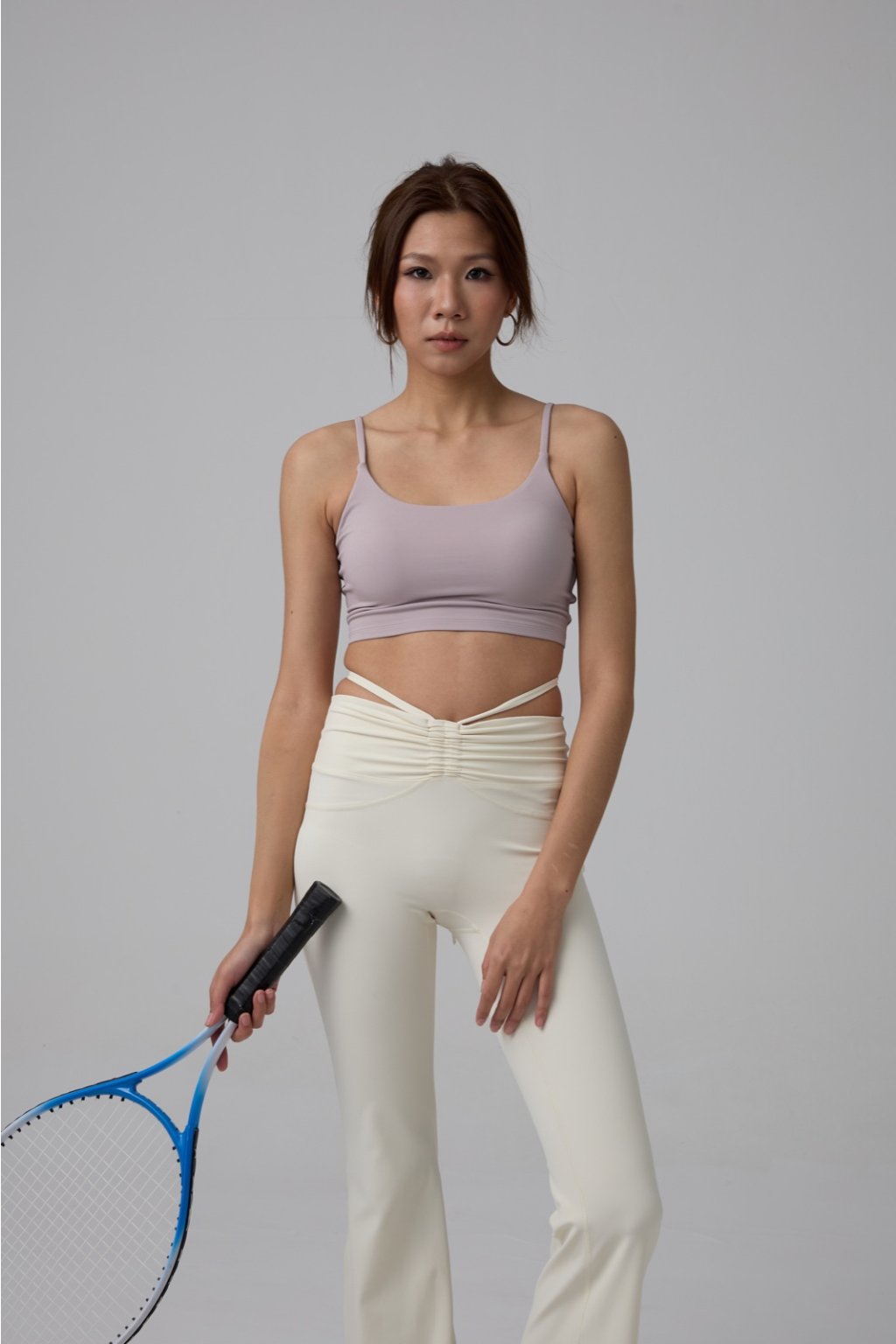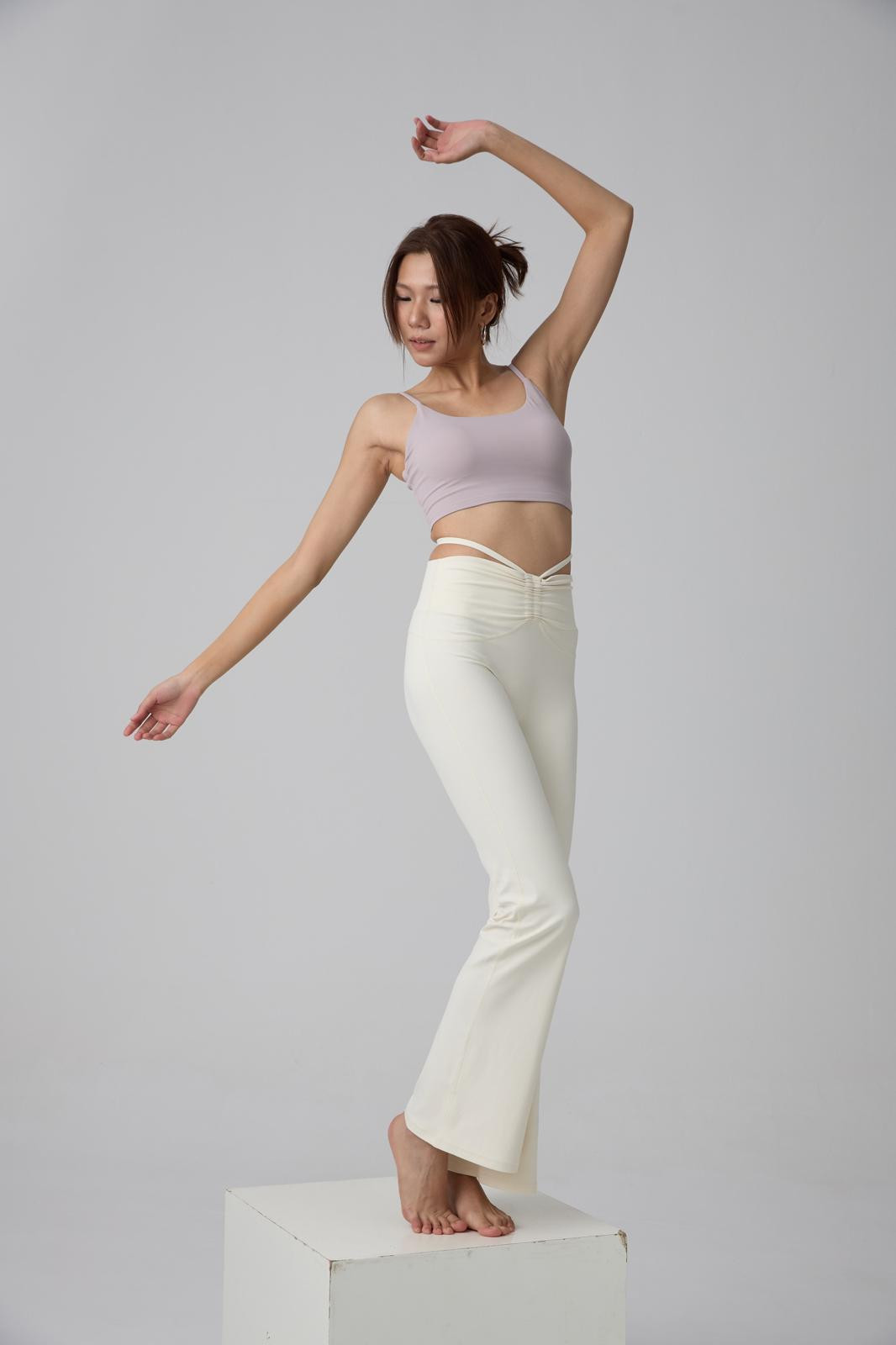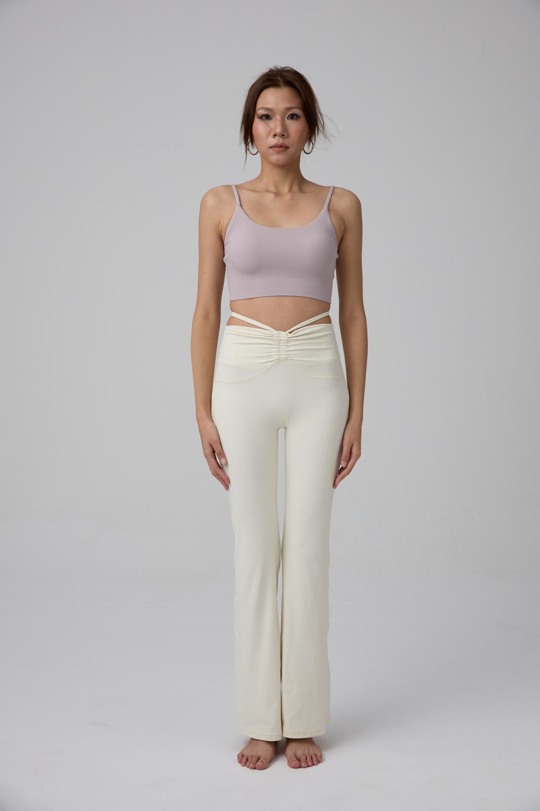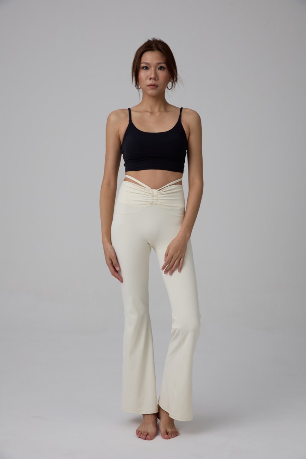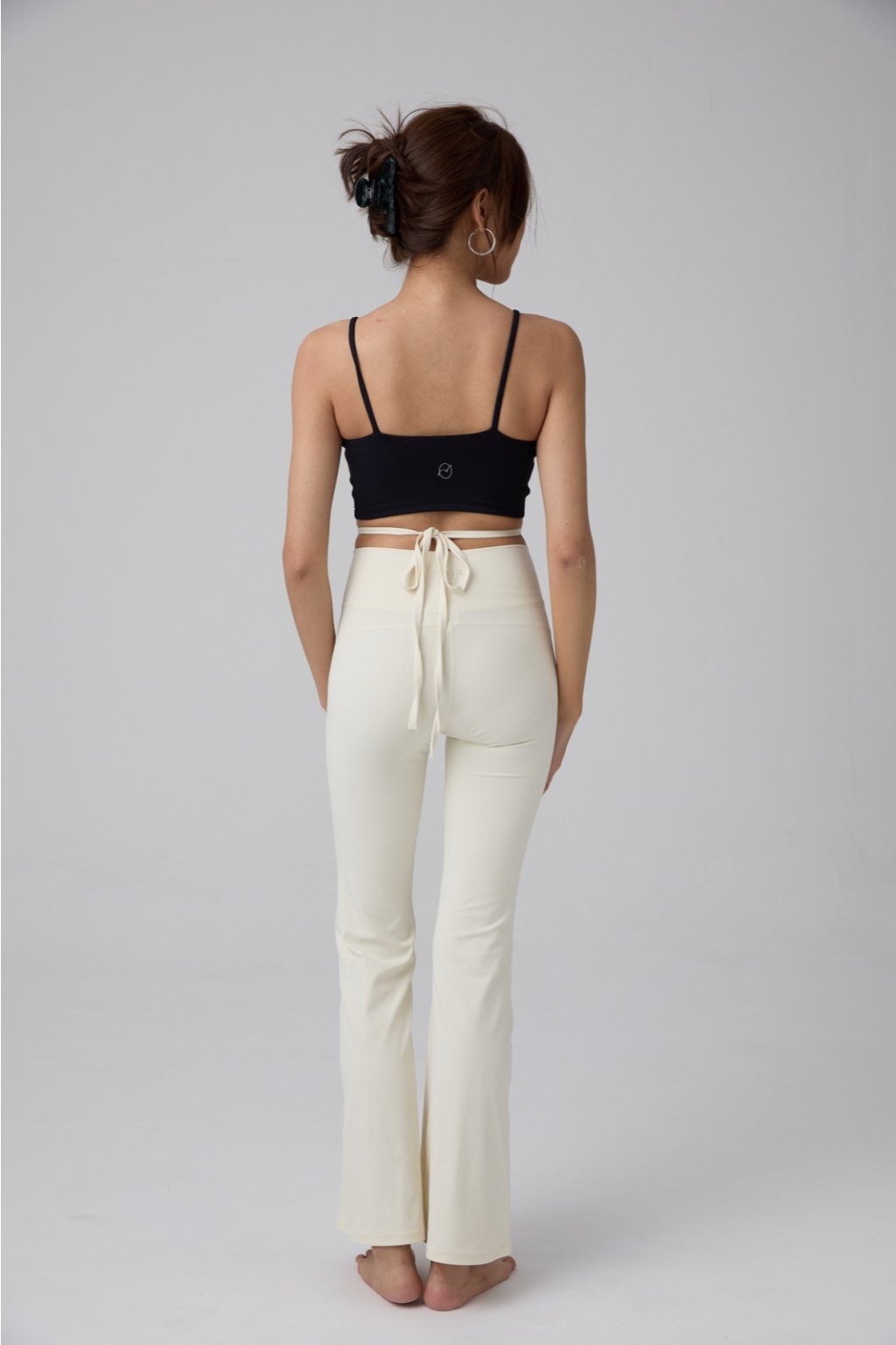 NVTP516 - 奶油白束腰顯瘦裸感喇叭褲