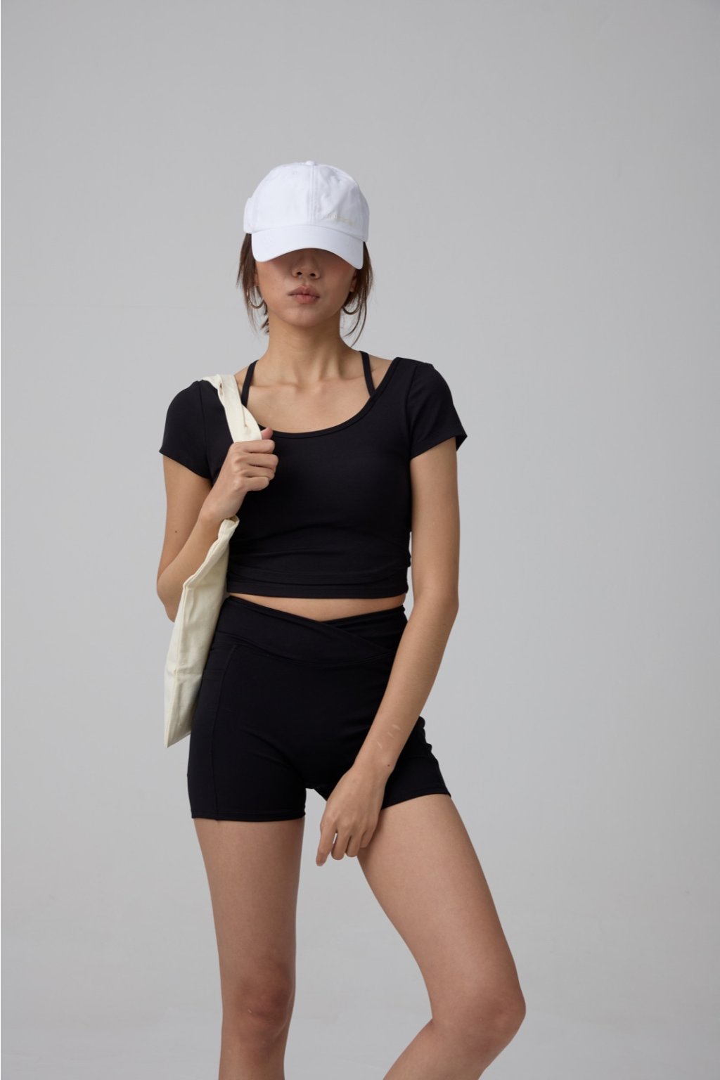 後背交叉細帶:背部採用優雅的交叉細帶設計,自然順應身體線條,不僅能修飾背部曲線,更在視覺上營造出纖薄、緊緻的背肌效果。
