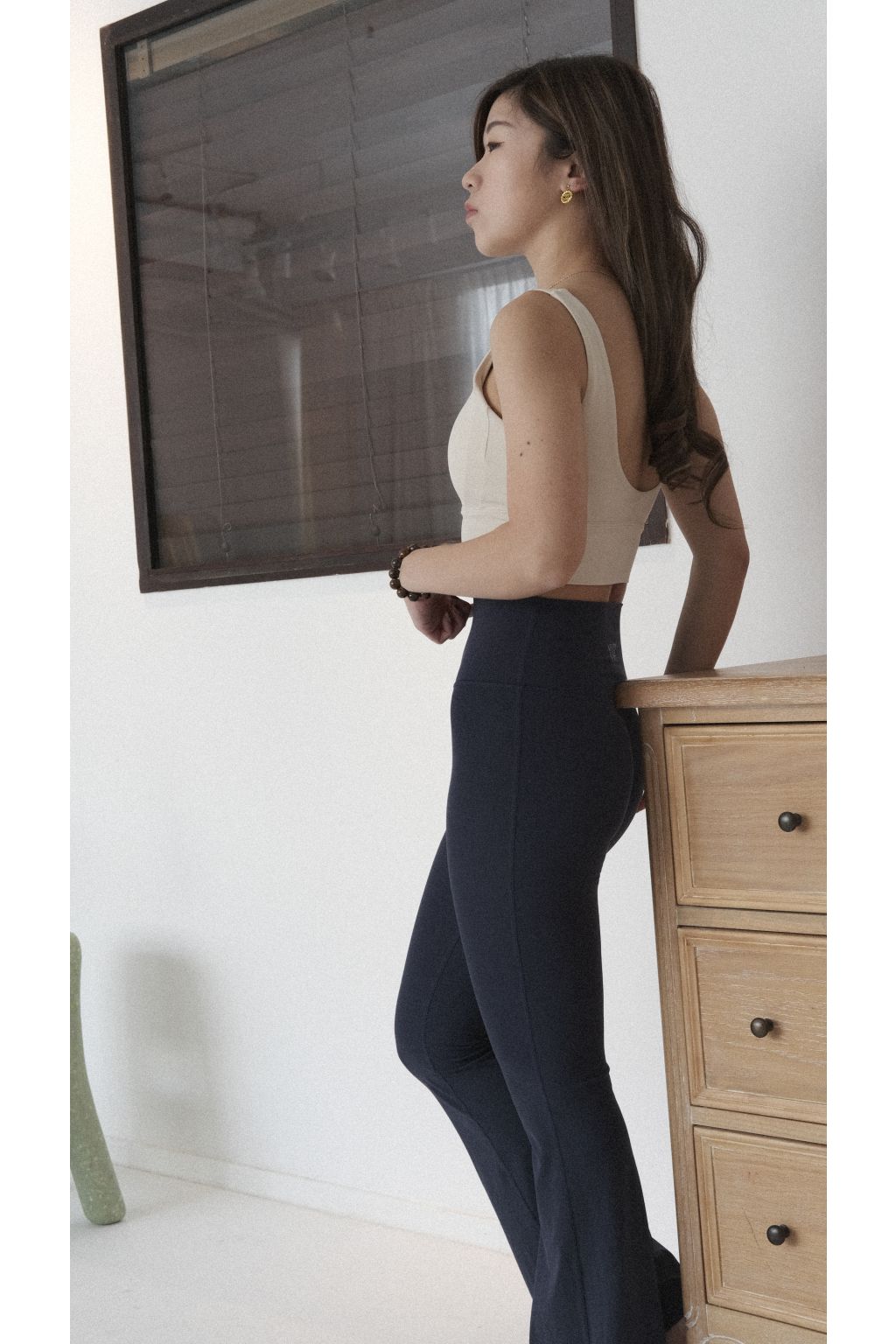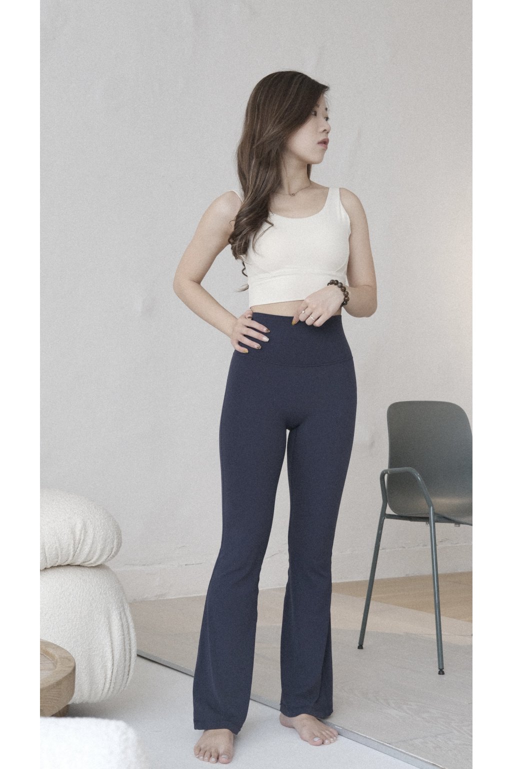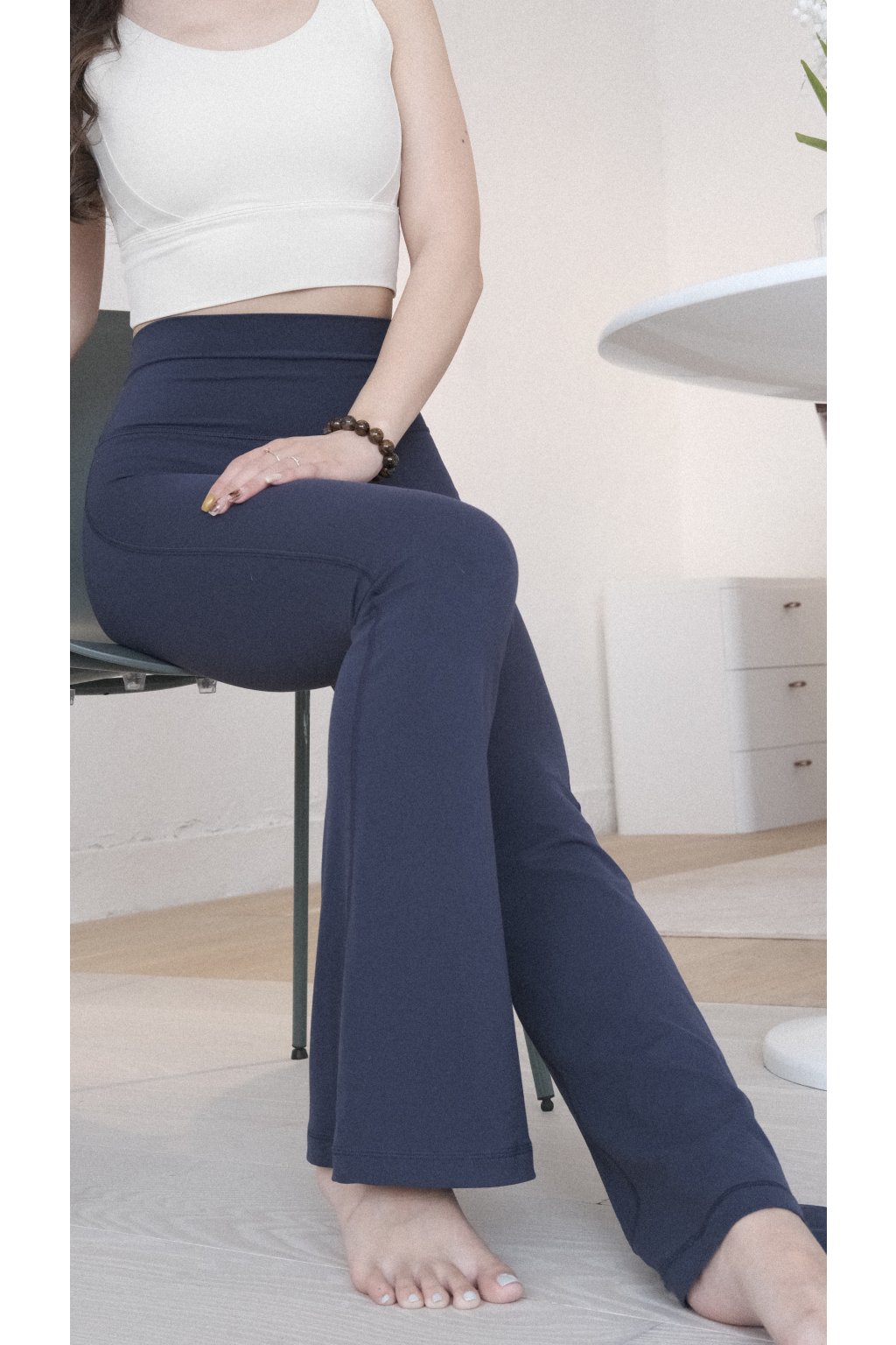 NVTP322- 深藍裸感無尺碼高腰喇叭褲