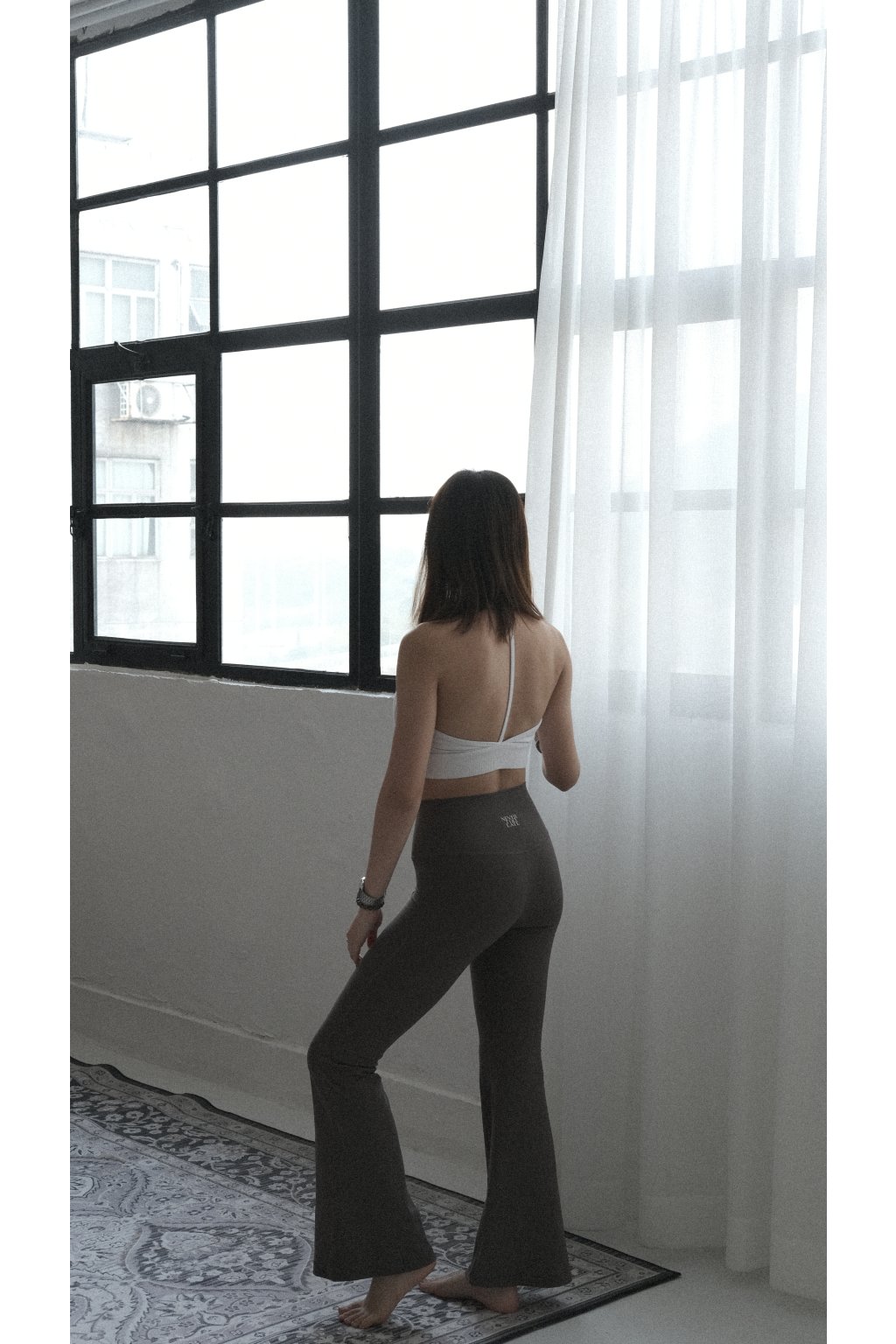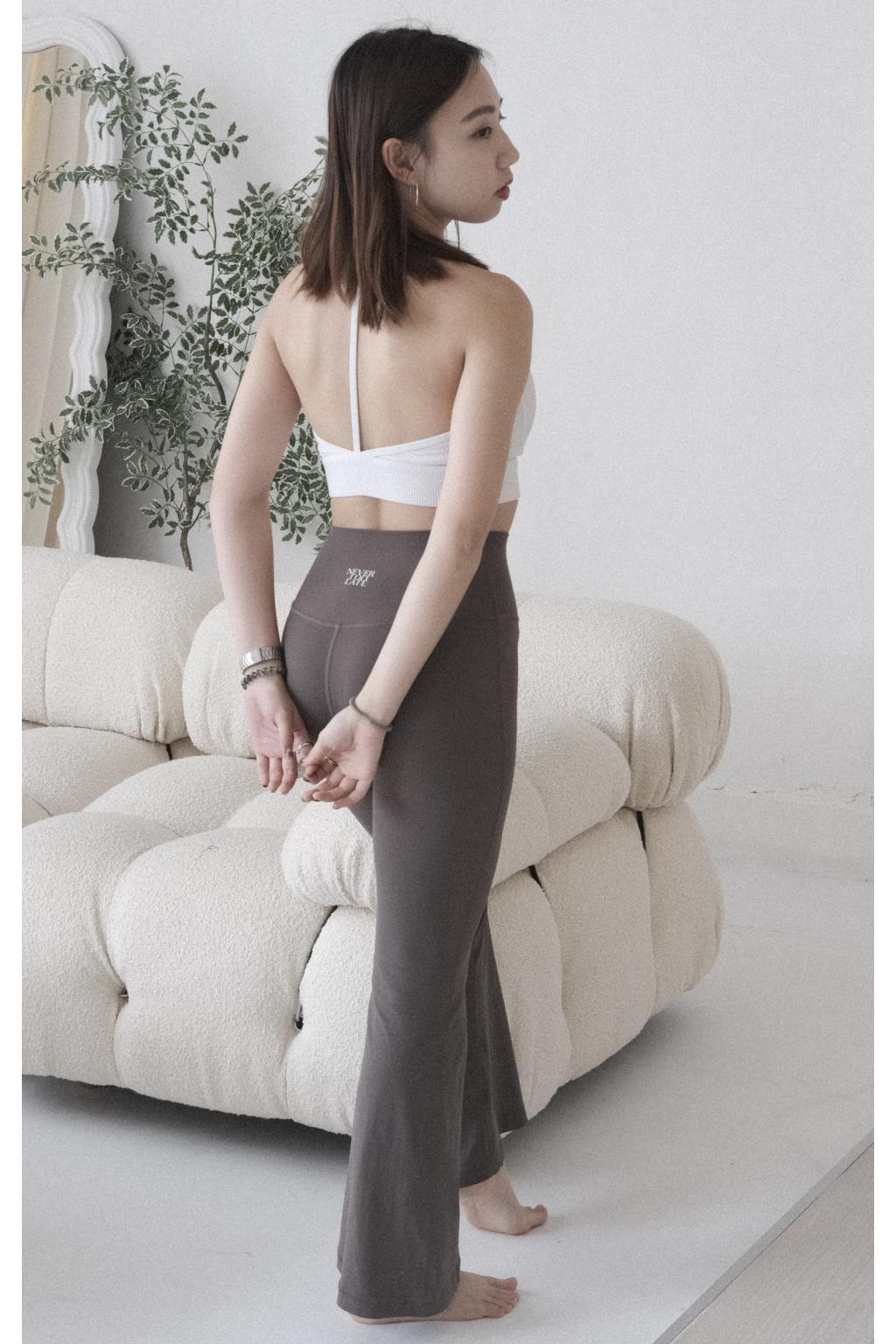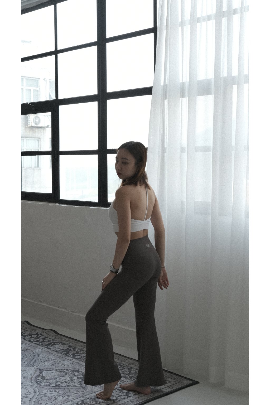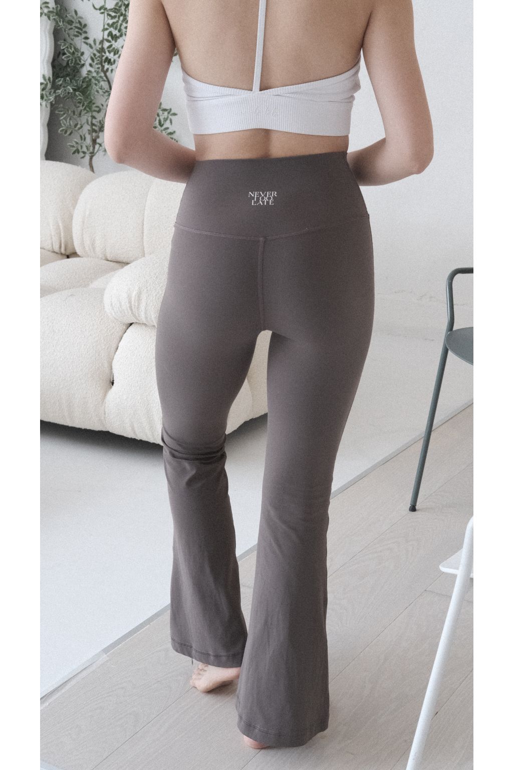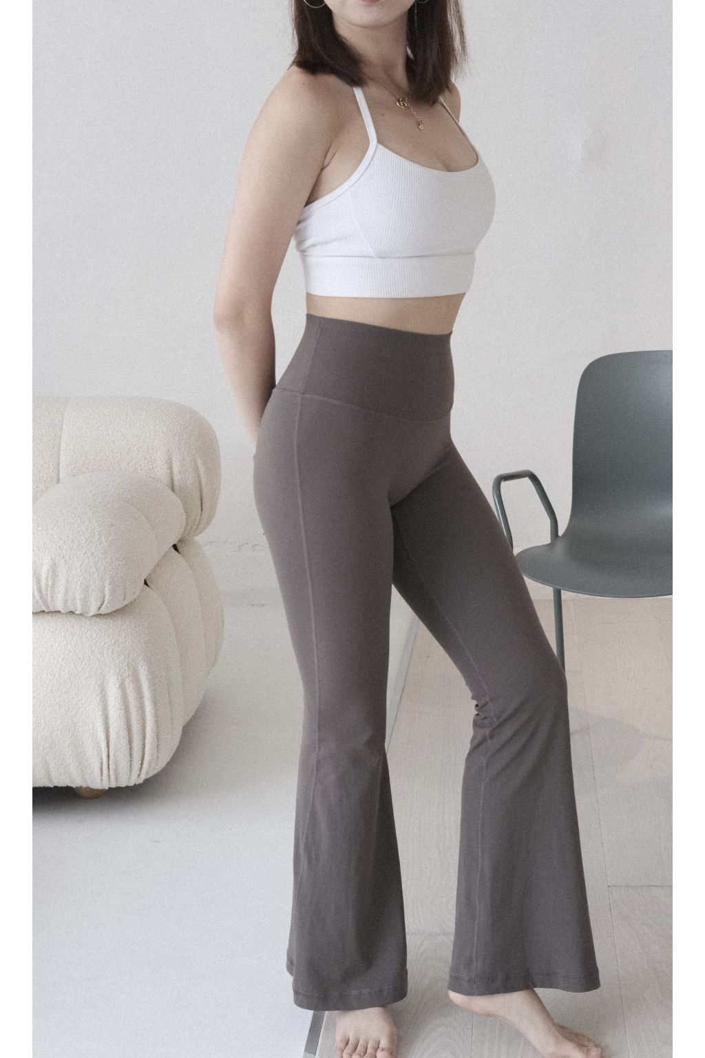 NVTP324- 卡其啡裸感無尺碼高腰喇叭褲