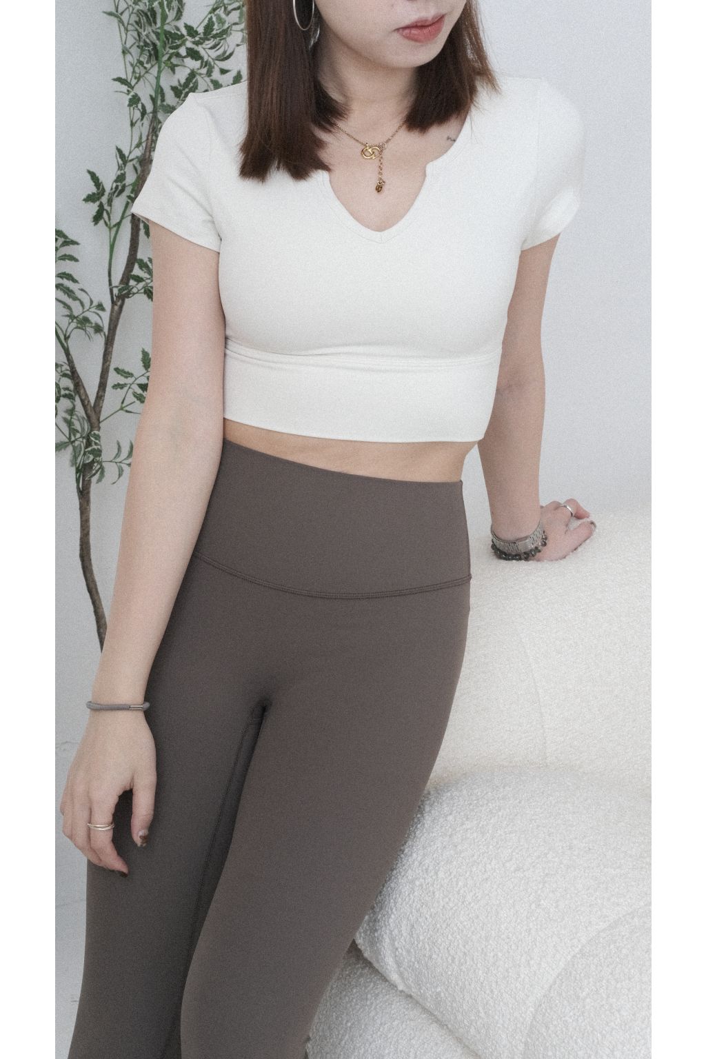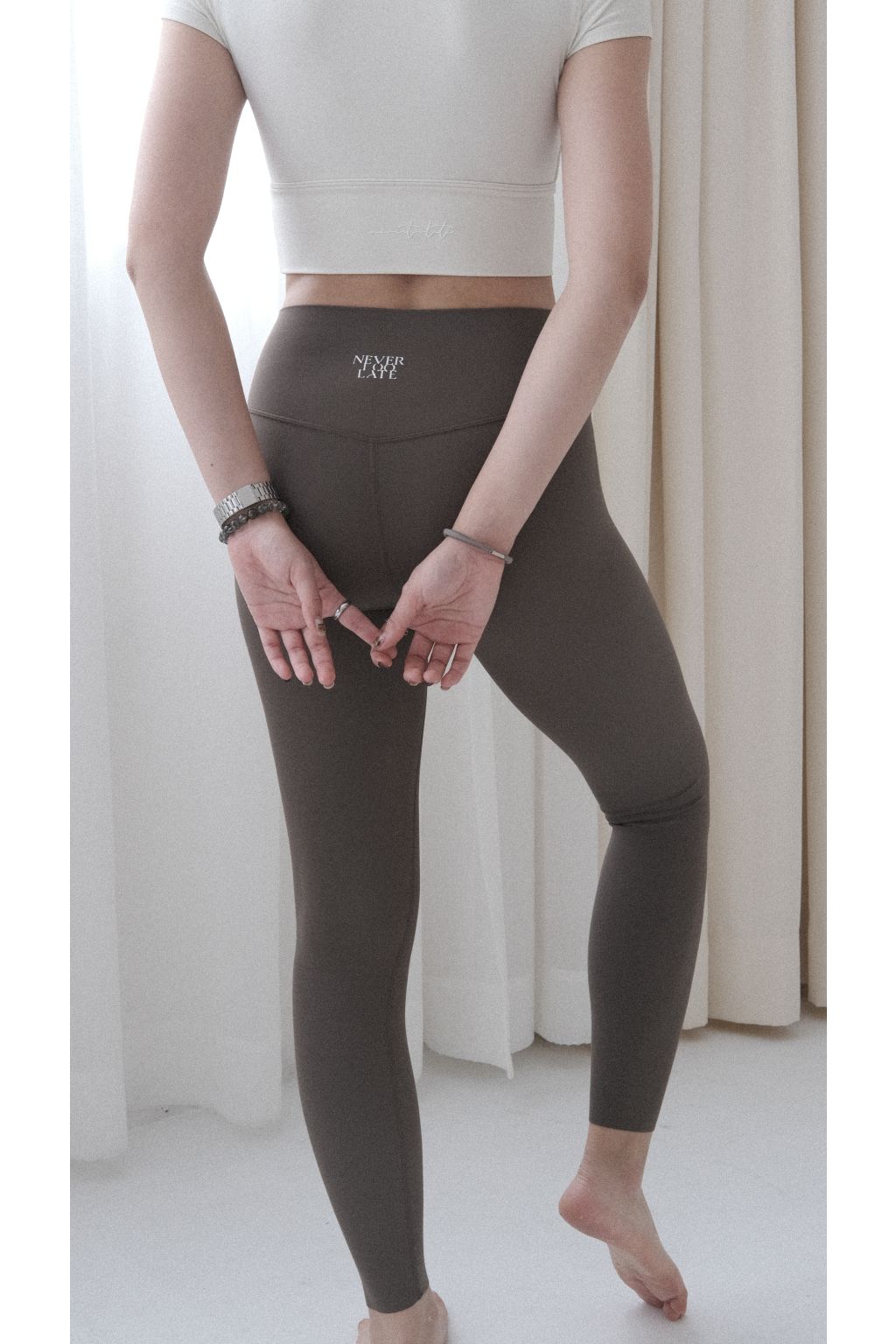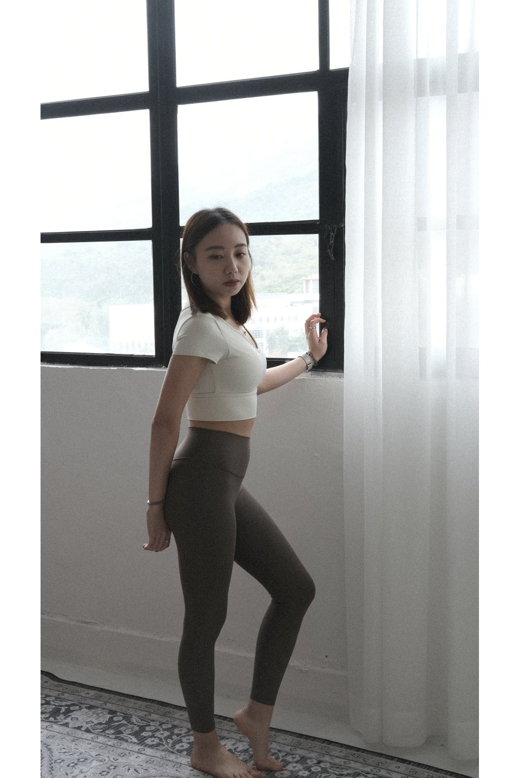 NVTP325- 茶啡裸感無尺碼高腰九分褲