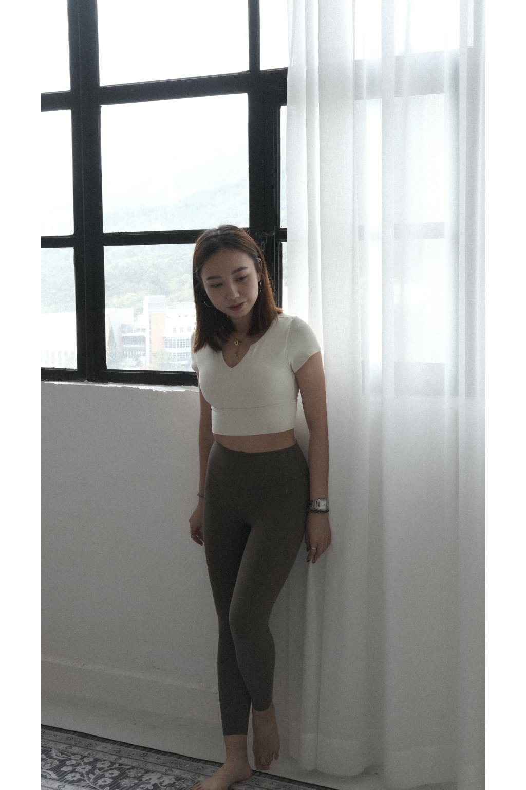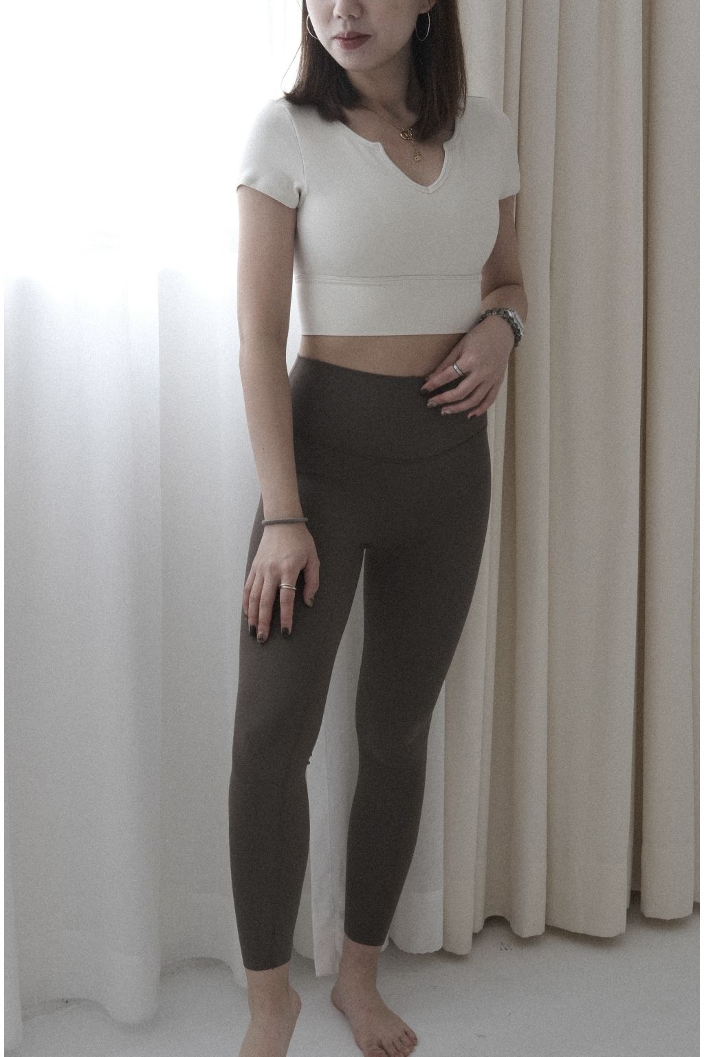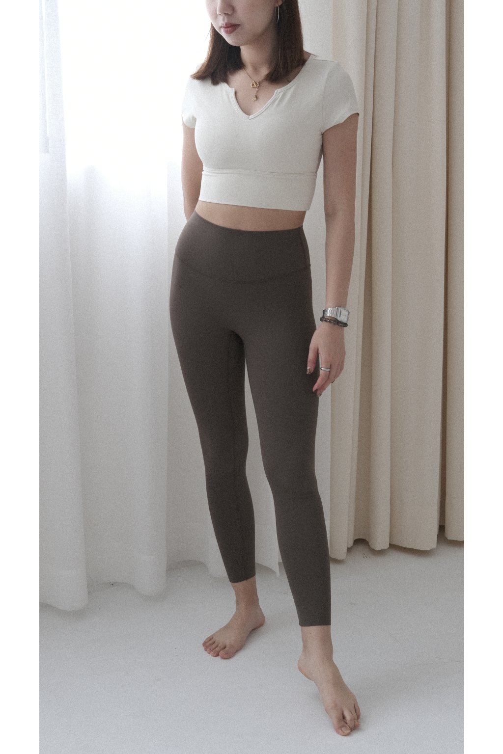 NVTP325- 茶啡裸感無尺碼高腰九分褲