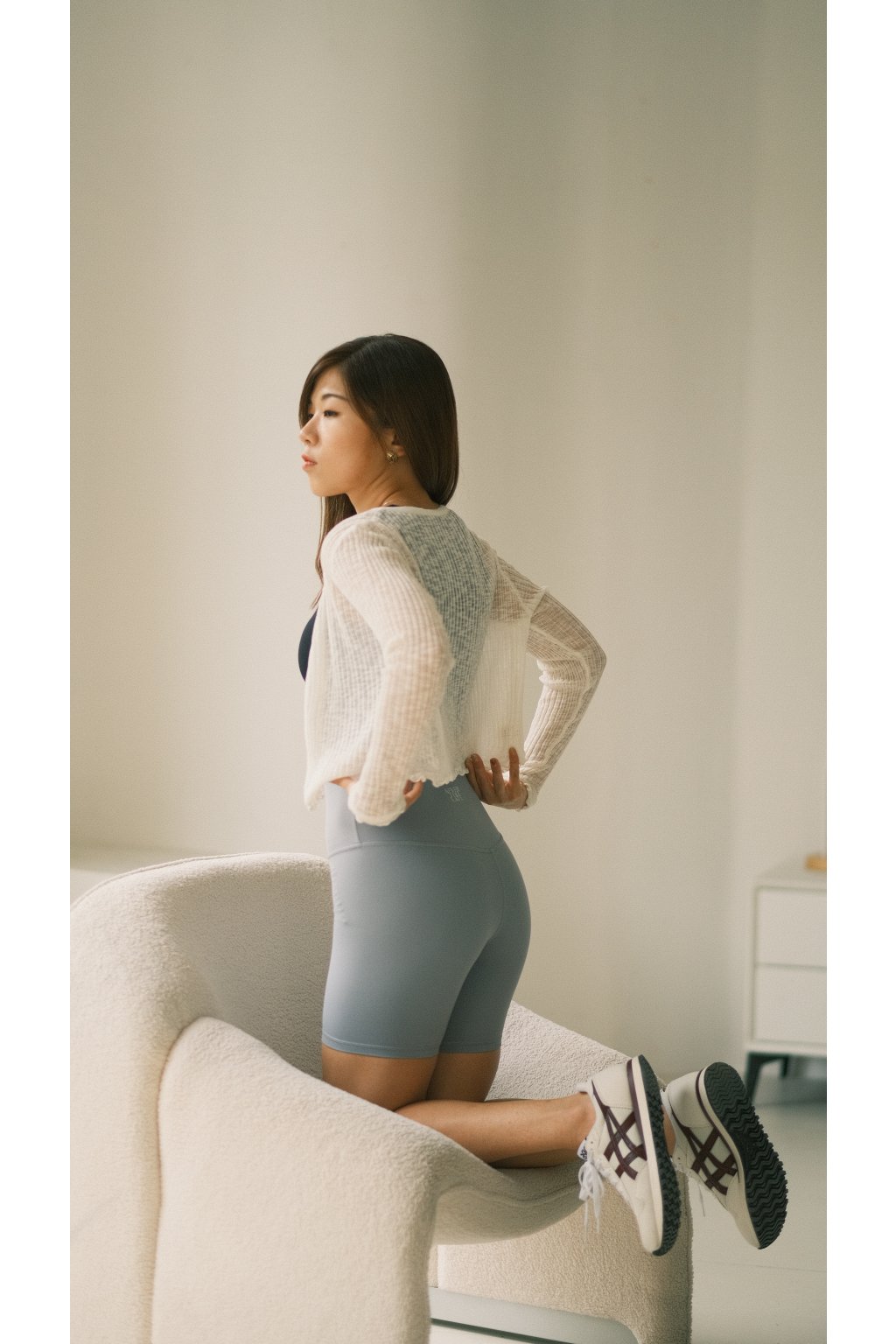 NVTP435- 灰藍裸感高腰三分褲(升級版)