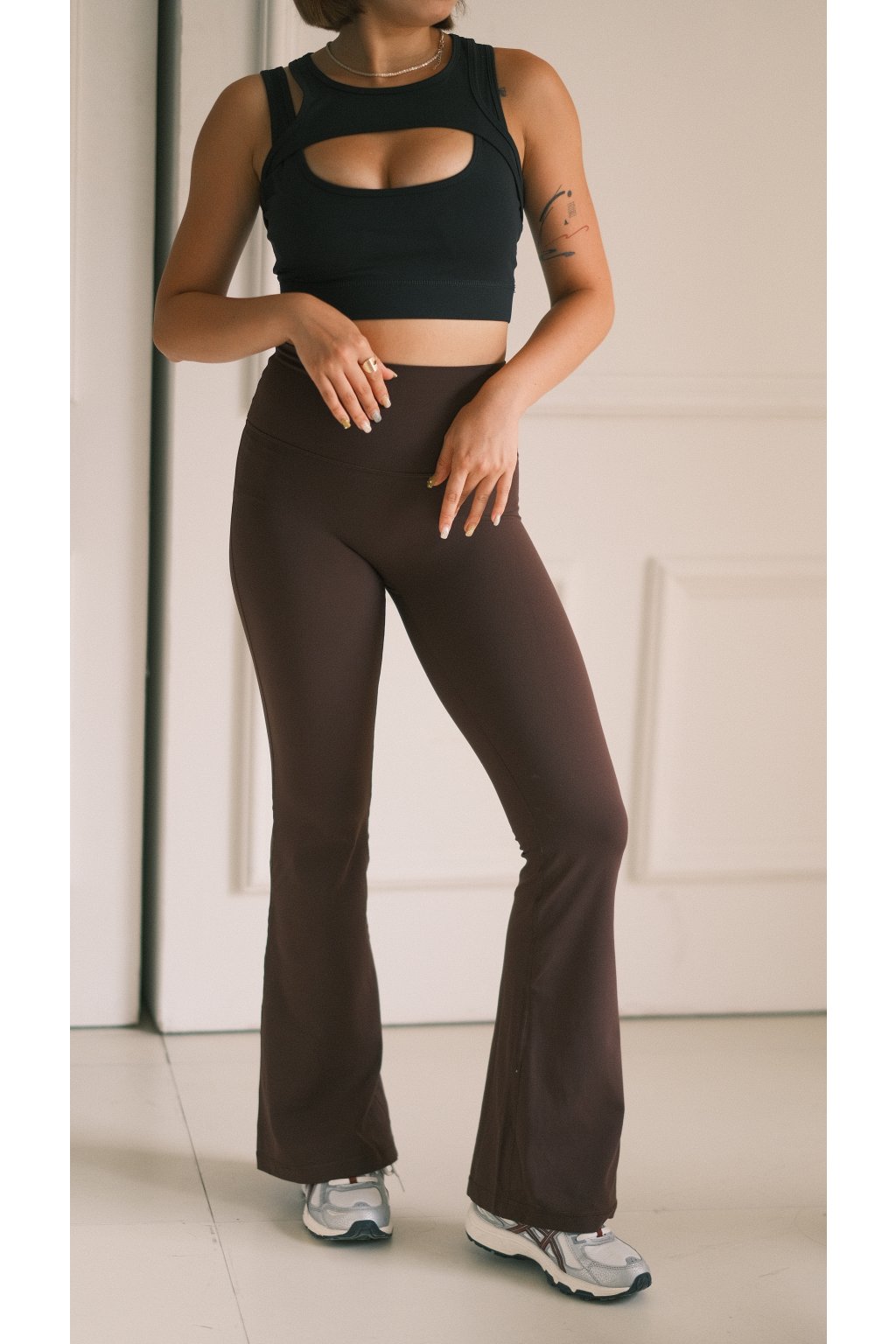 NVTP436- 特濃咖啡裸感無尺碼高腰喇叭褲