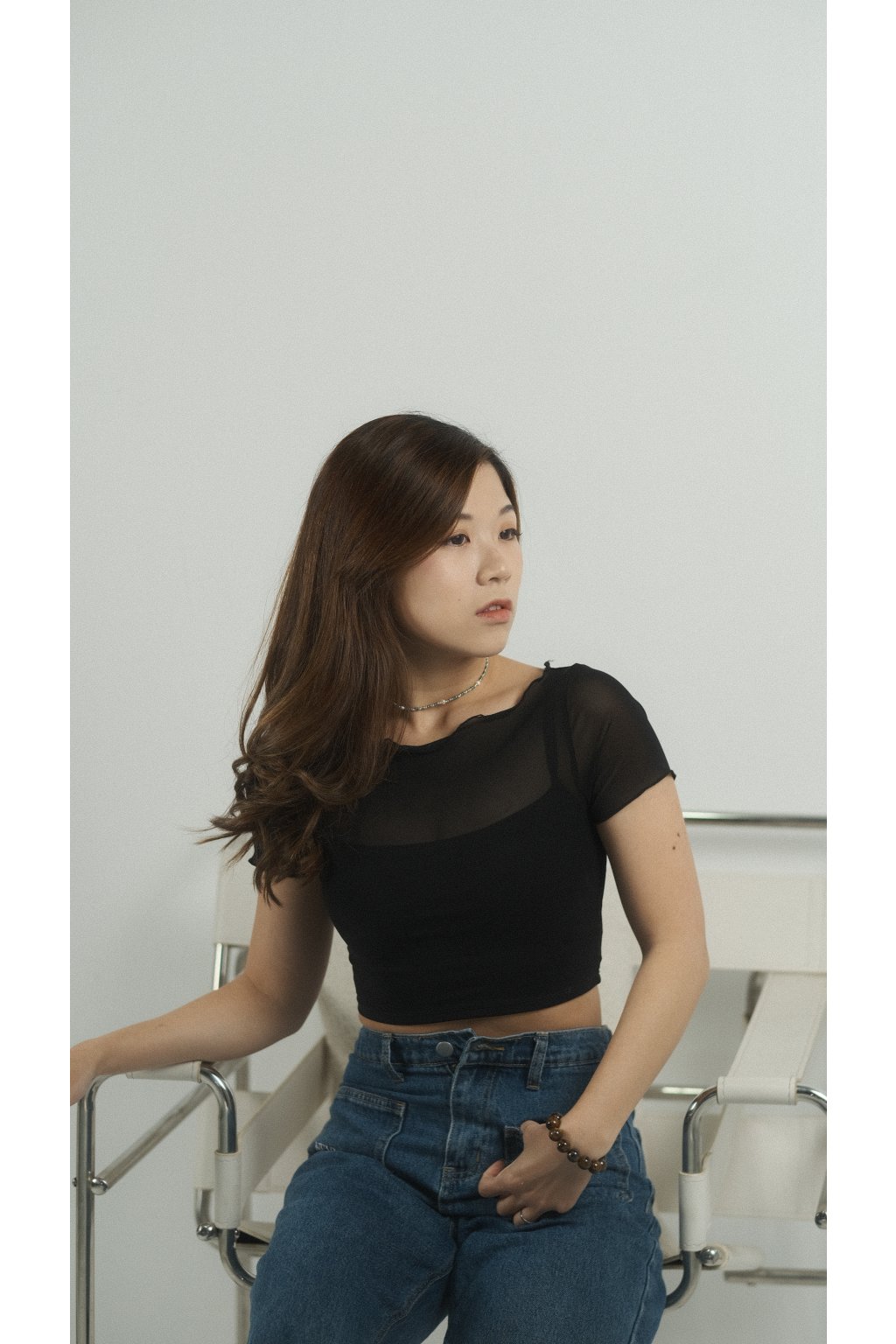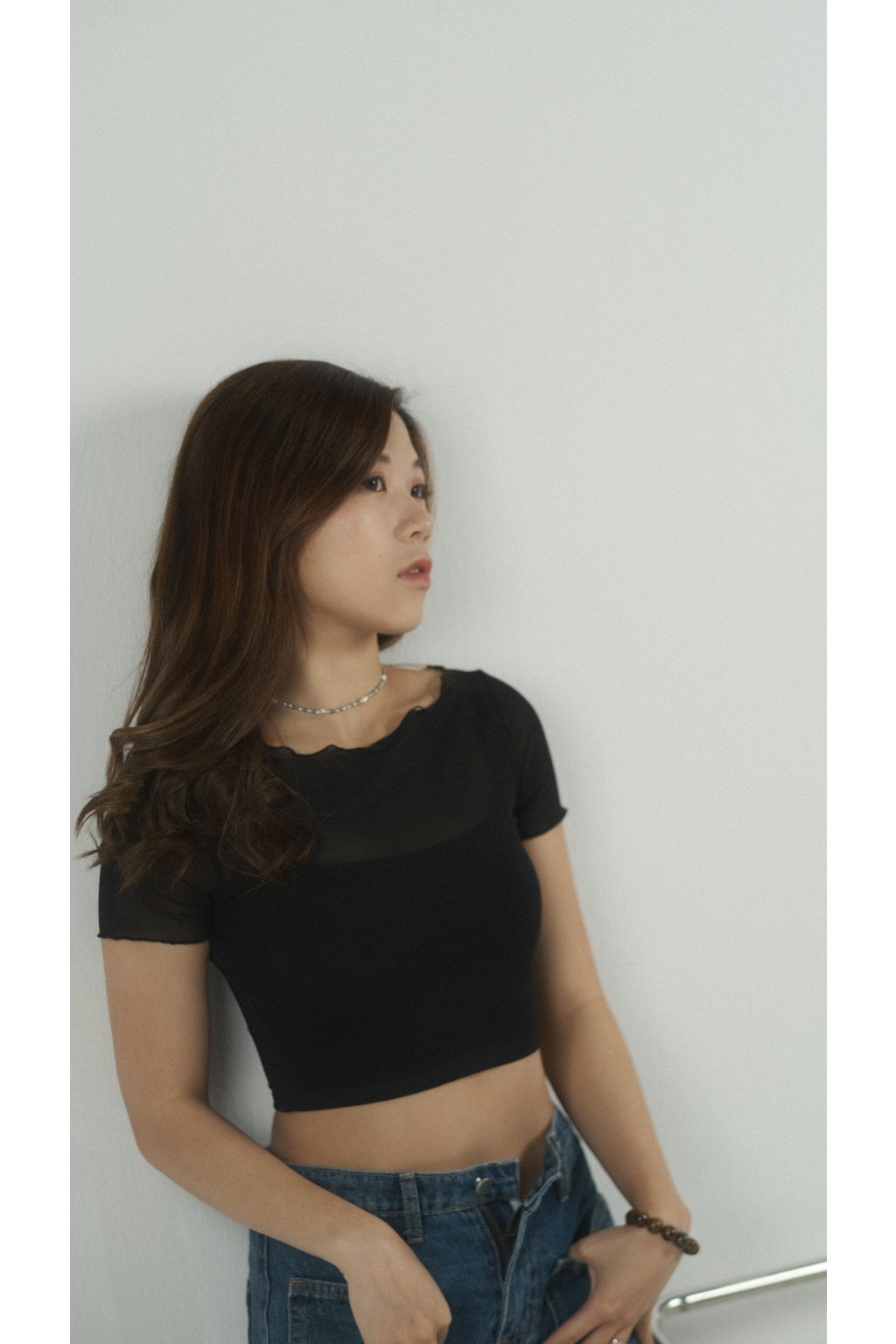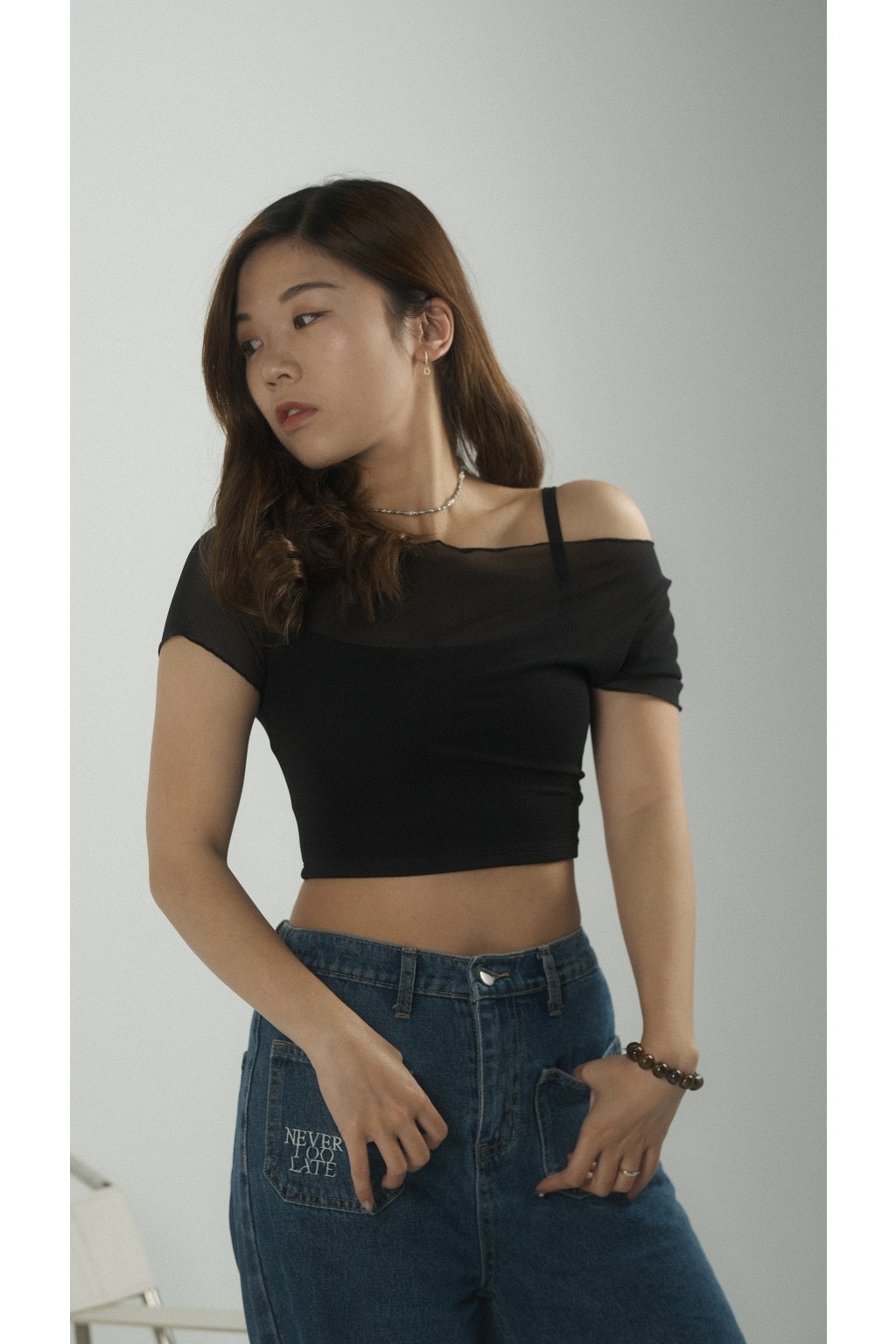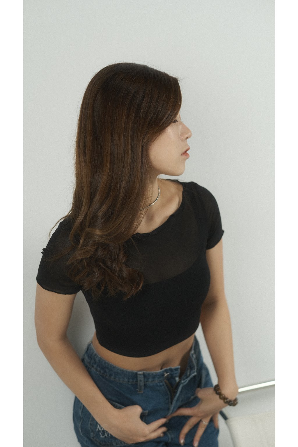 NVTT448- 黑色微醺網紗透視短袖Bra Top