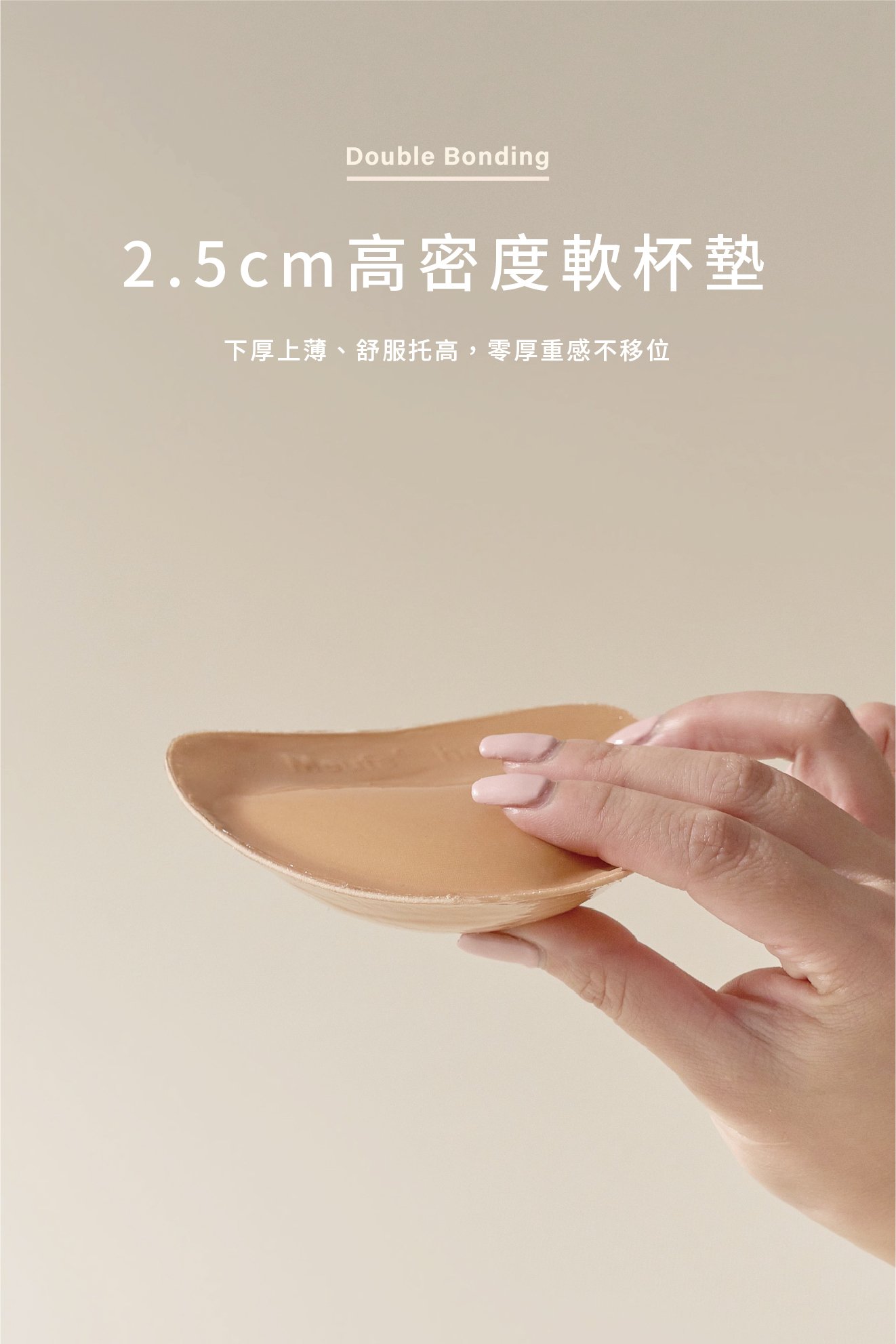 2.5公分高密度軟杯墊:下厚上薄舒服托高,零厚重感不移位
