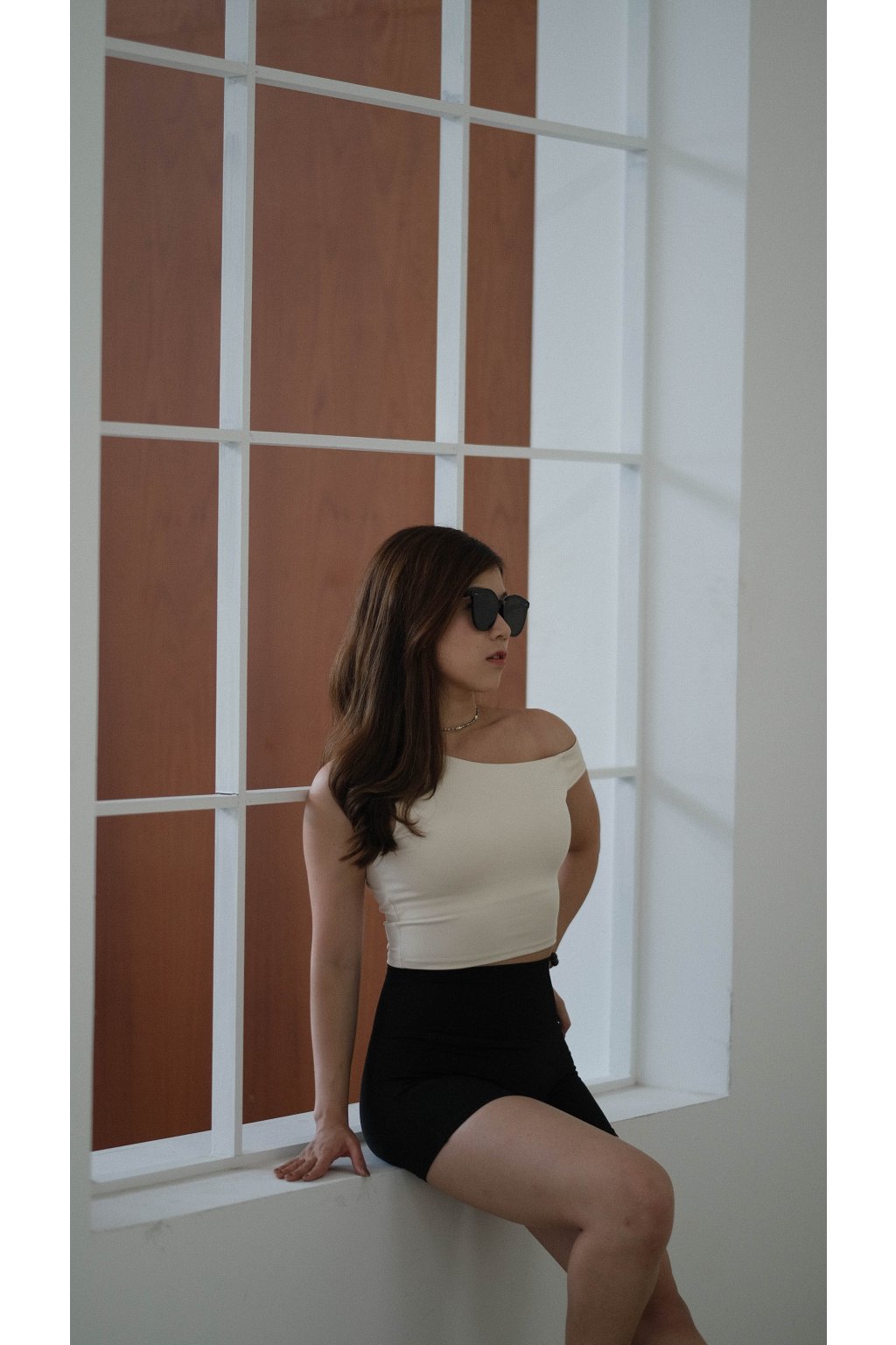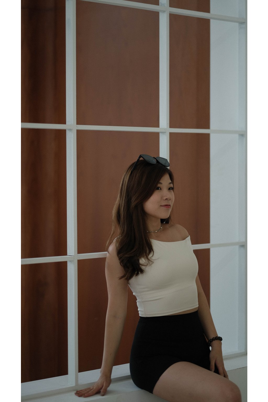 NVTT467- 奶油白不規則時尚斜肩Bra Top