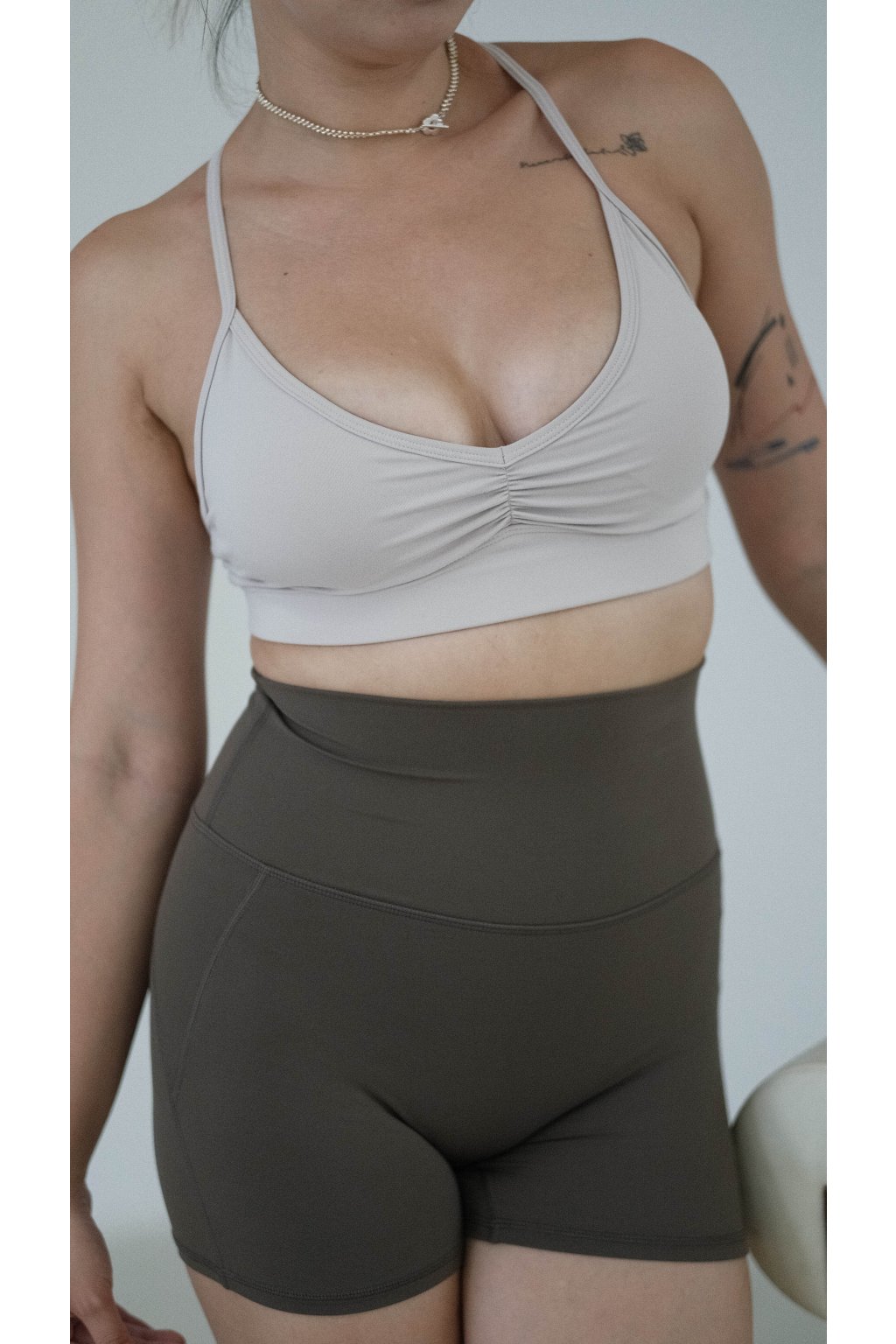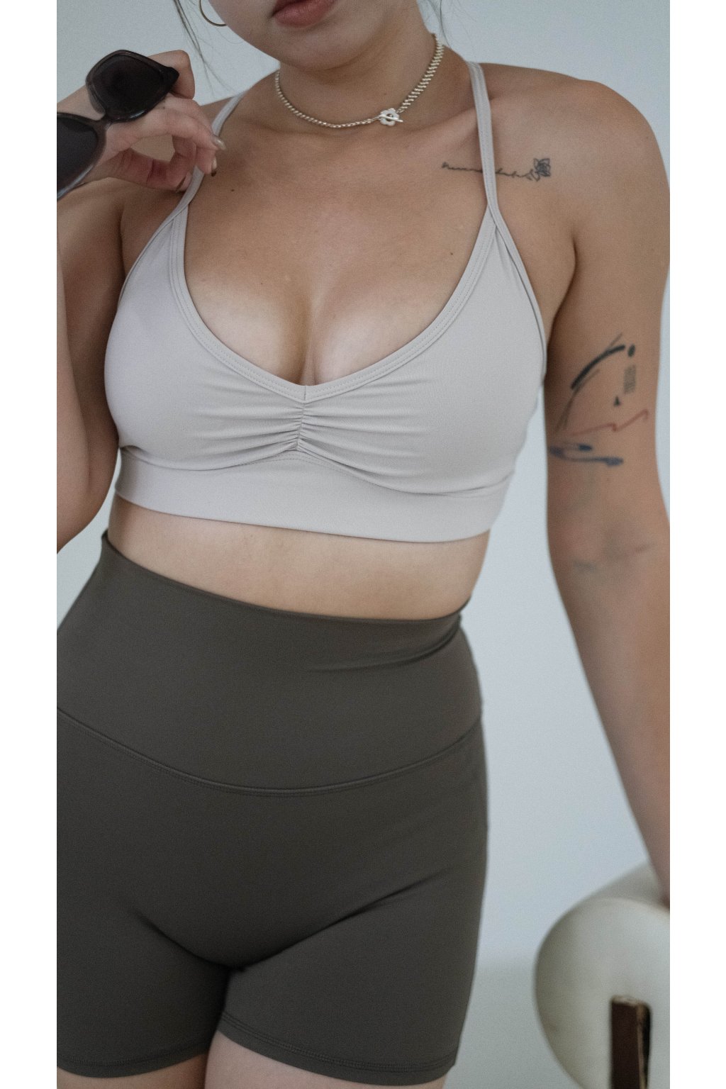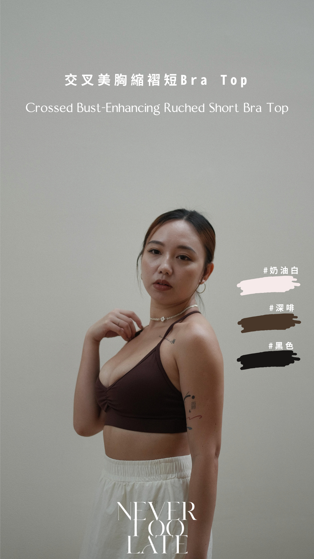 NVTT470- 奶油白交叉美胸縮褶短Bra Top