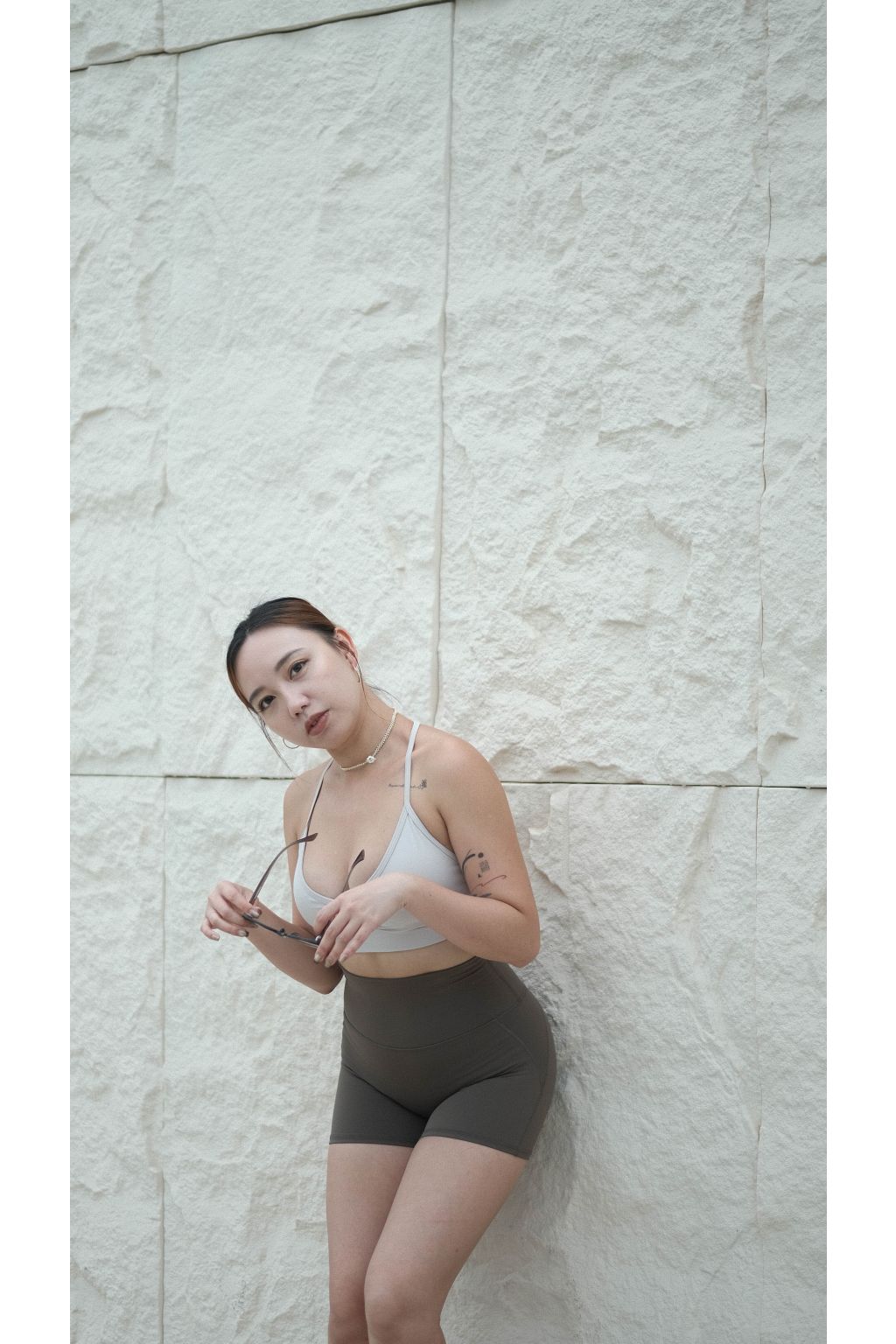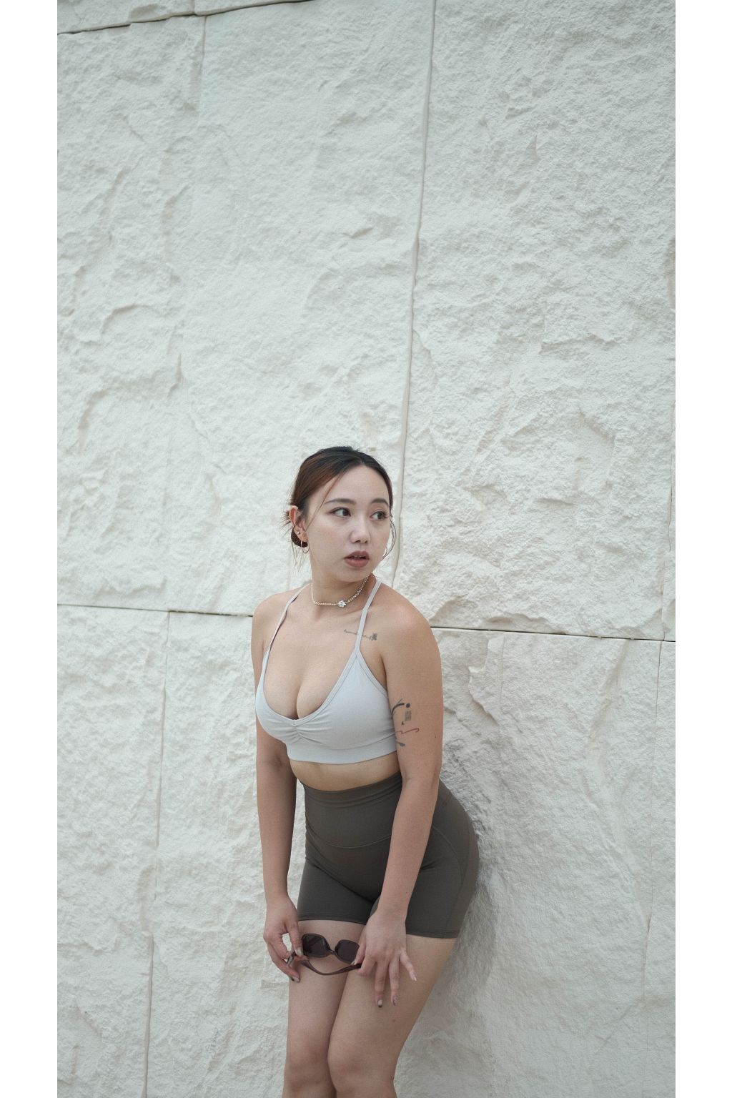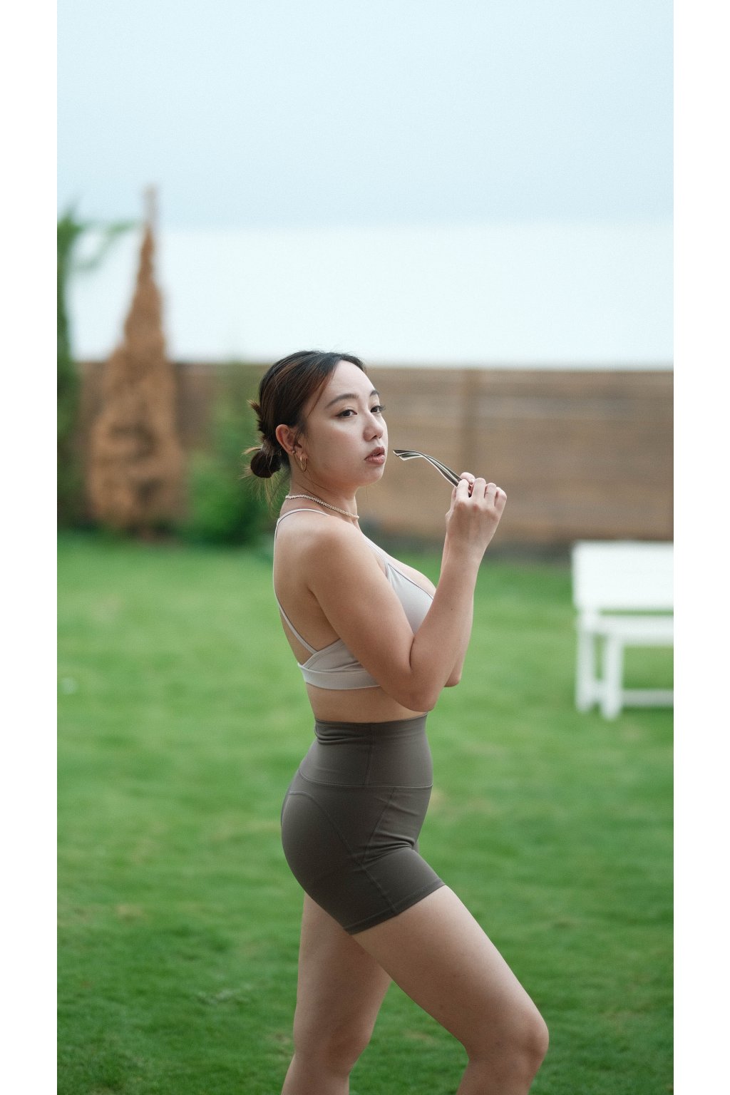 NVTT470- 奶油白交叉美胸縮褶短Bra Top