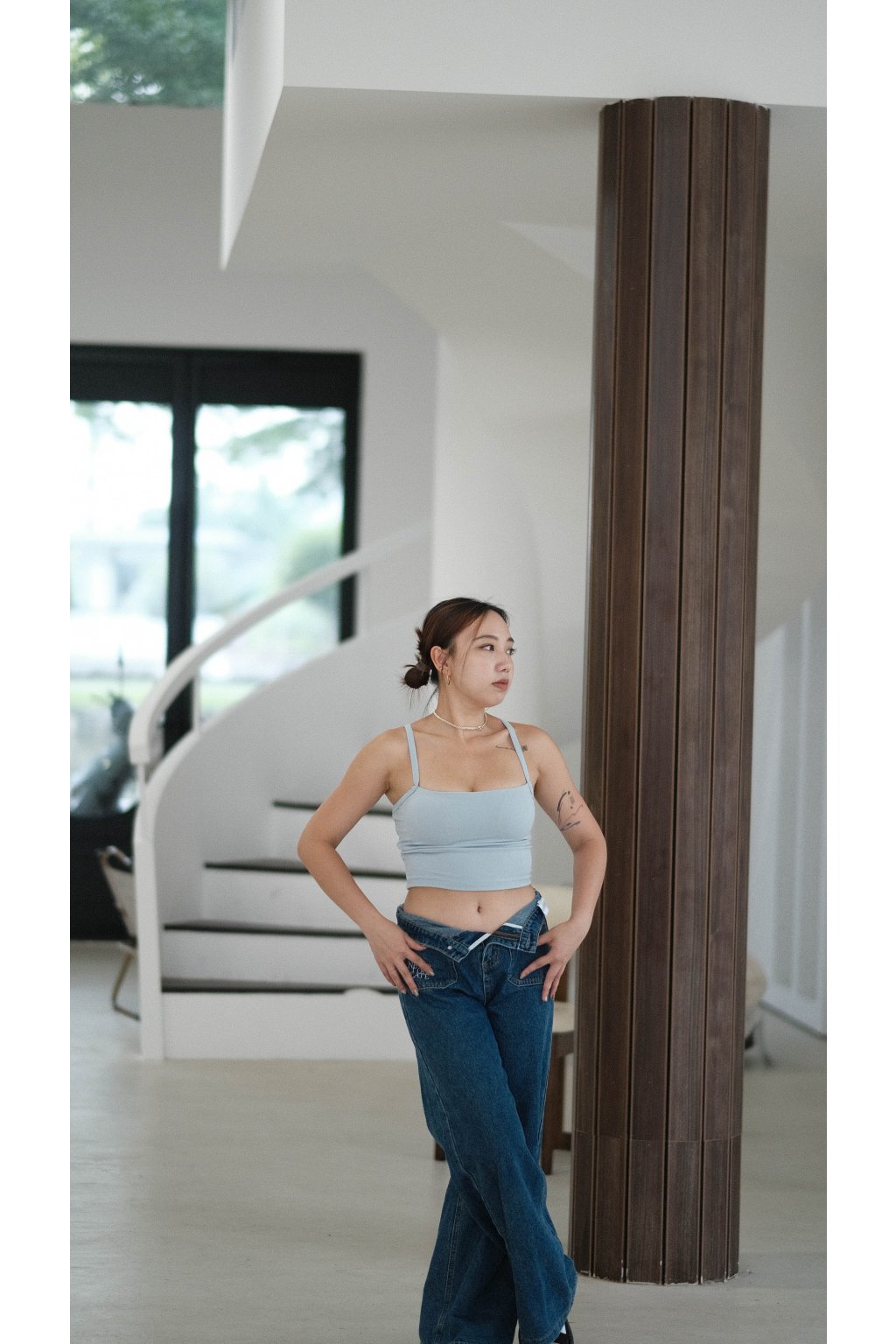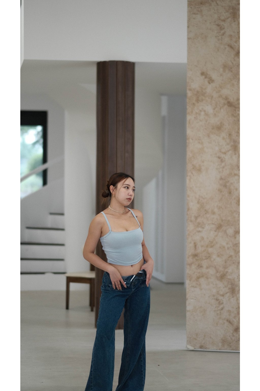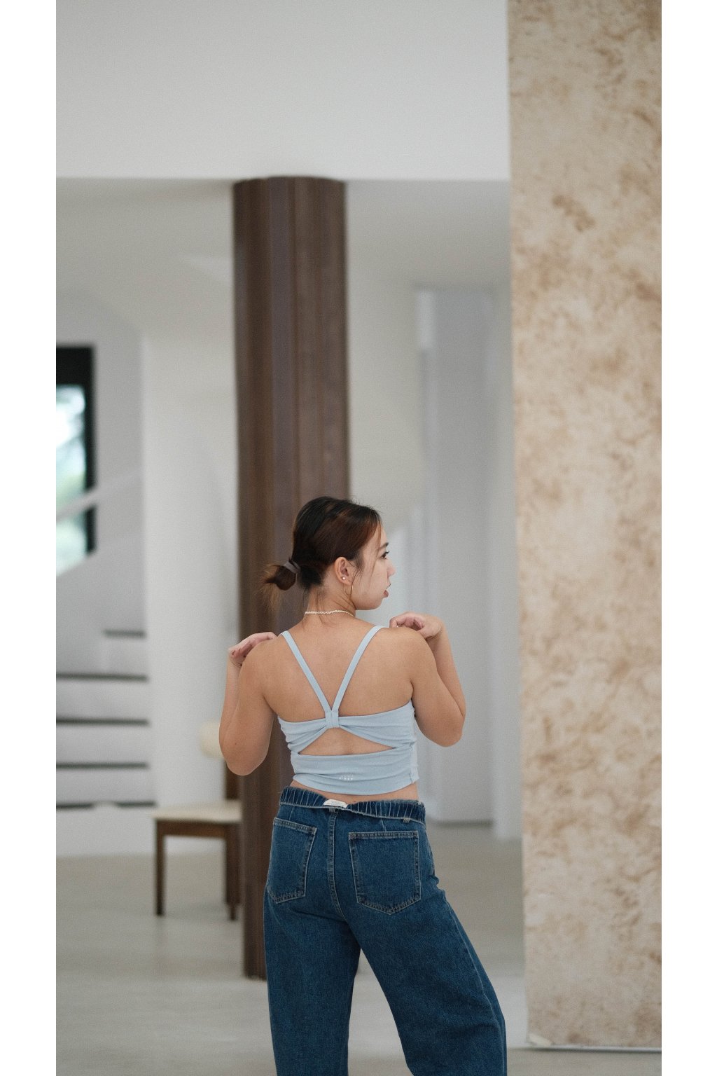 NVTT474- 淺藍雲感蝴蝶美背平口吊帶長Bra Top