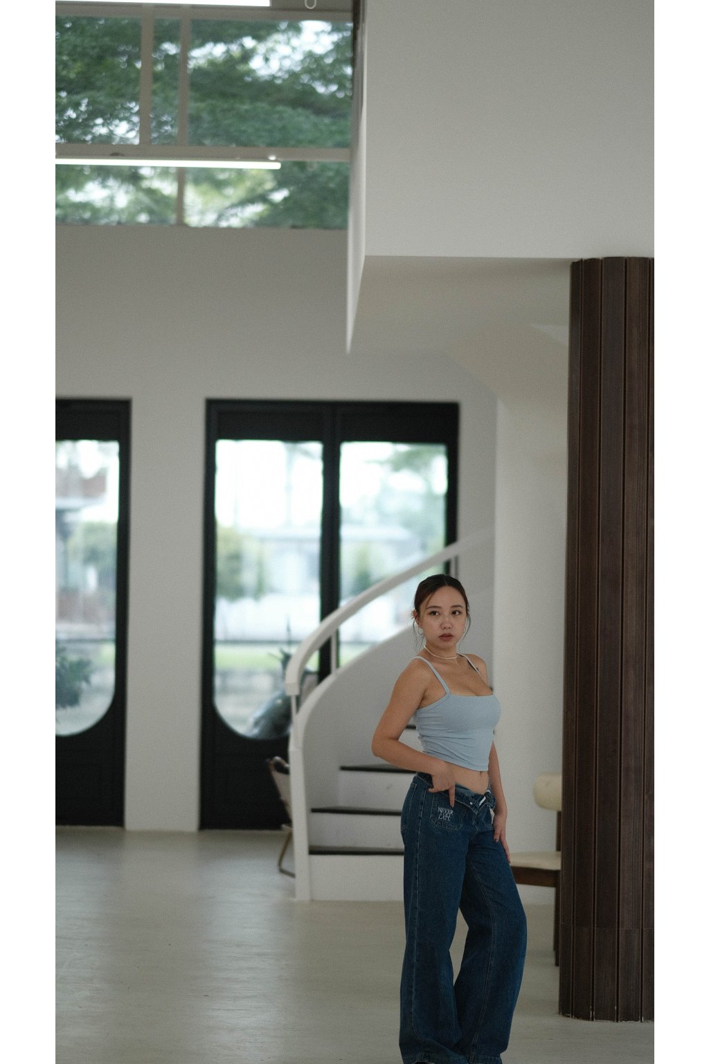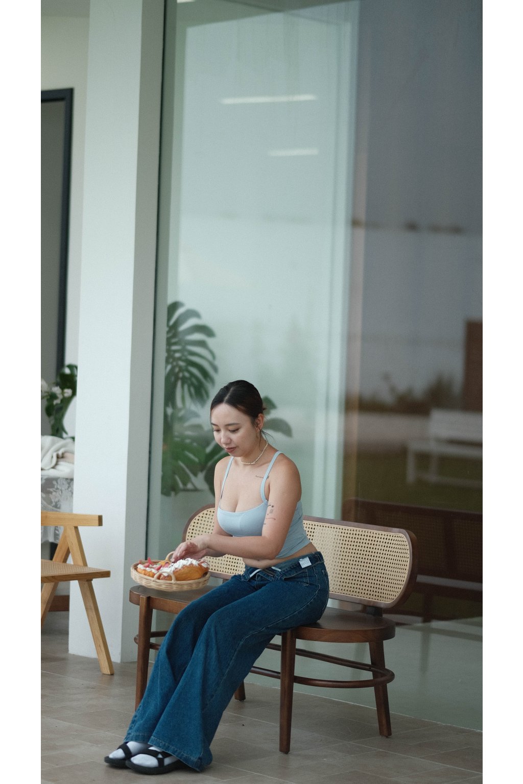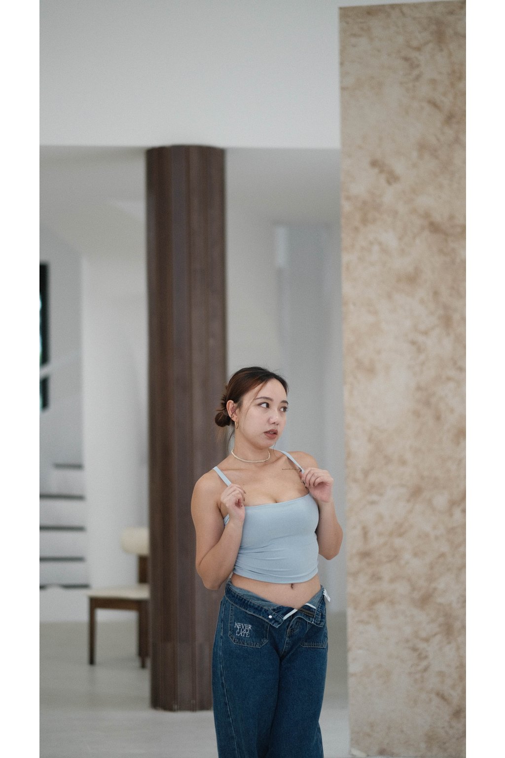 NVTT474- 淺藍雲感蝴蝶美背平口吊帶長Bra Top