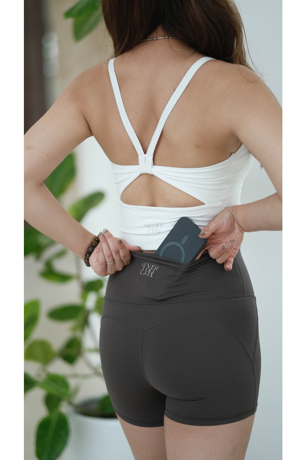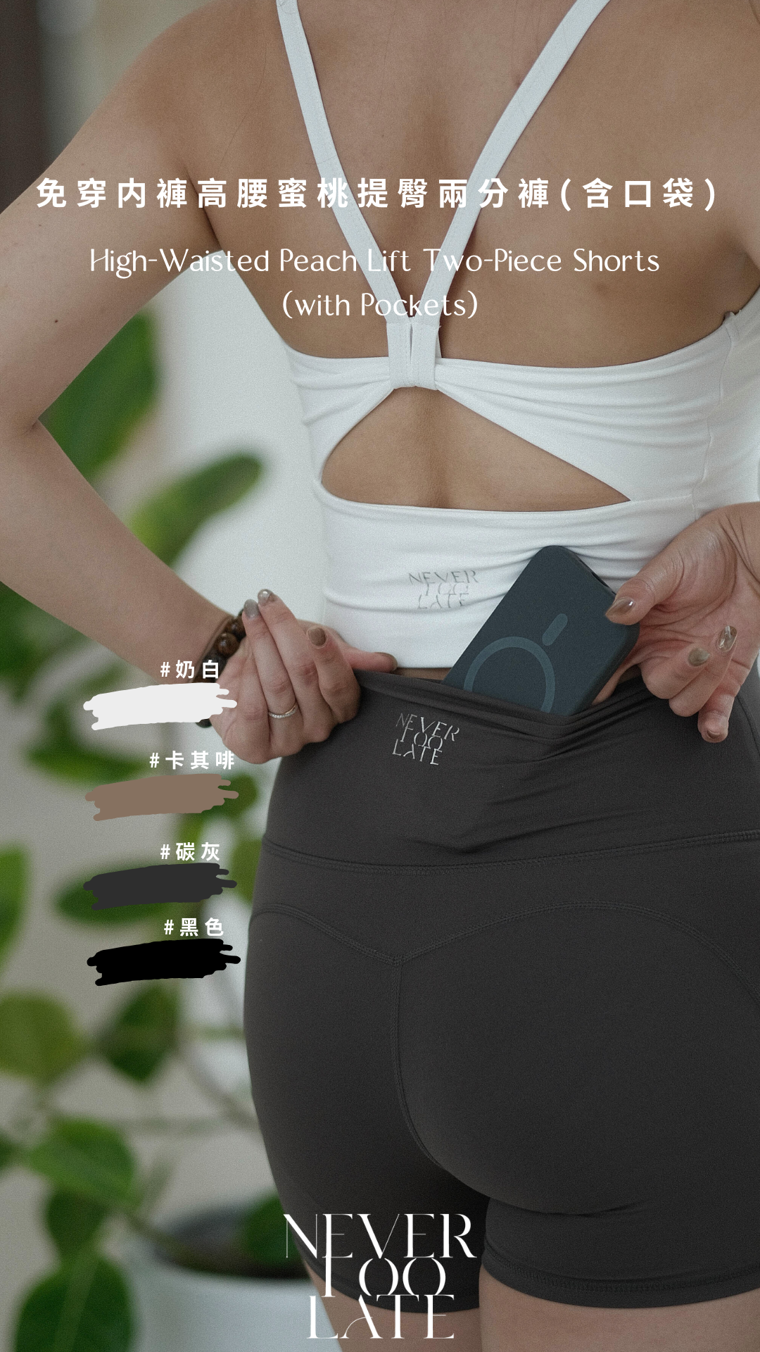 NVTP485- 碳灰免穿内褲高腰蜜桃提臀兩分褲(含口袋)