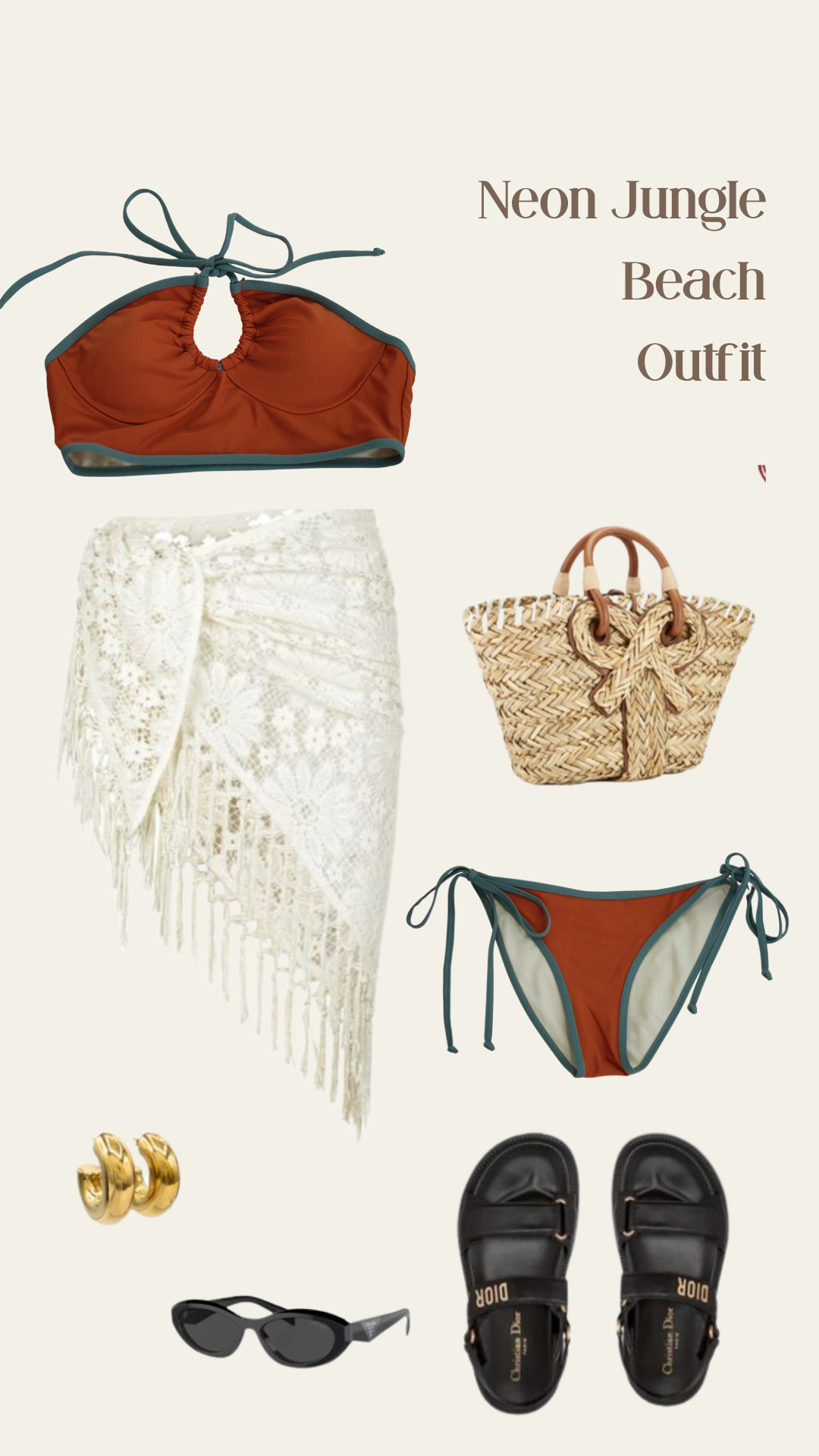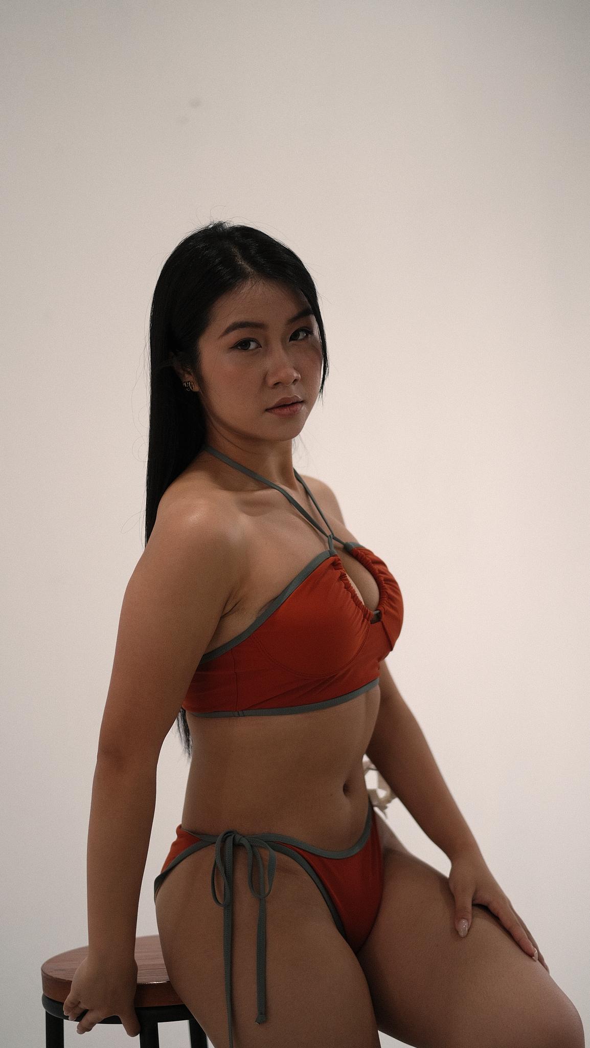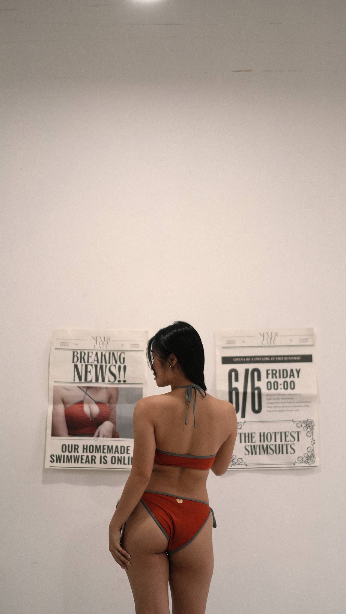 (全現貨)自家原創Neon Jungle復古橘紅森綠掛頸鏤空Bikini Set