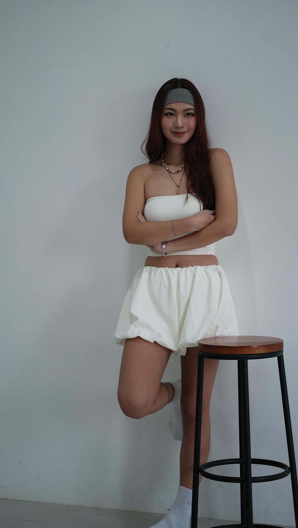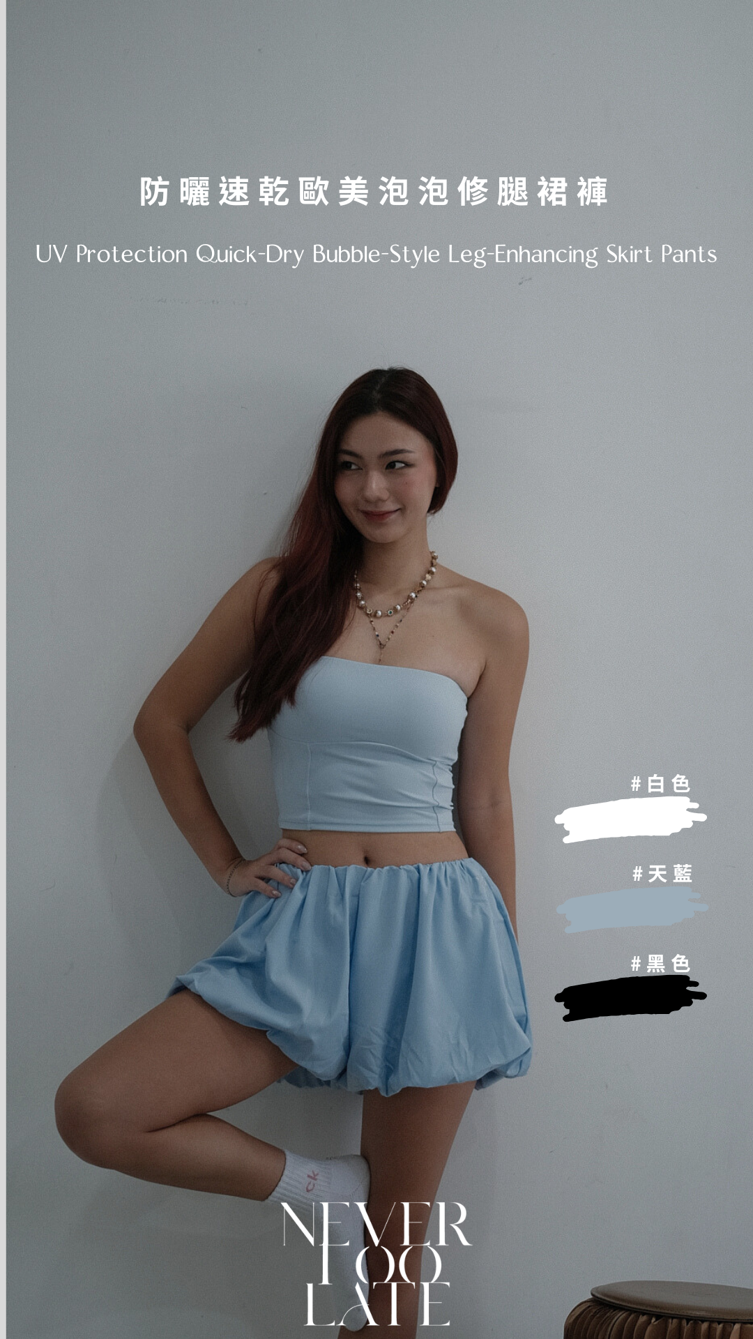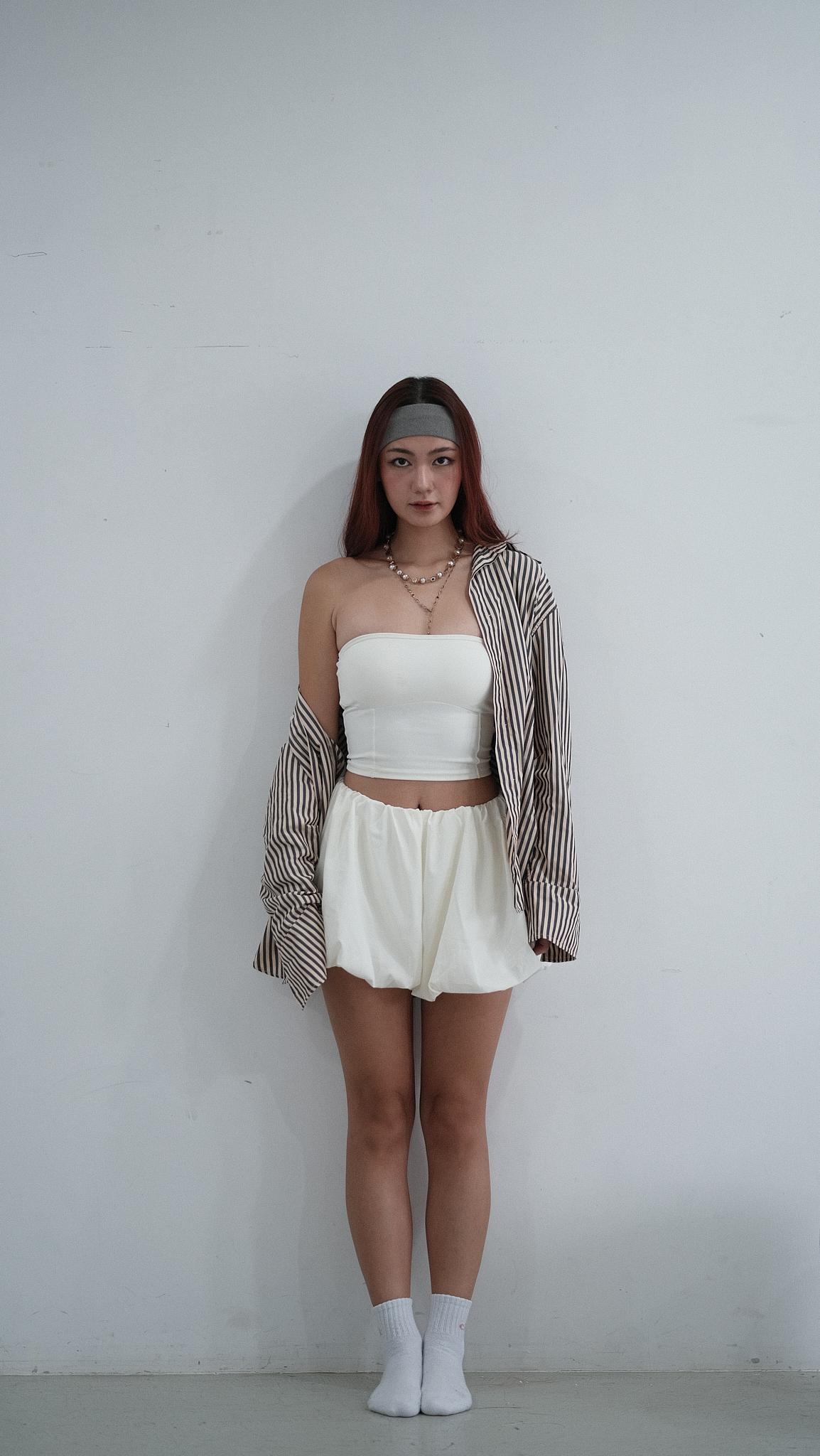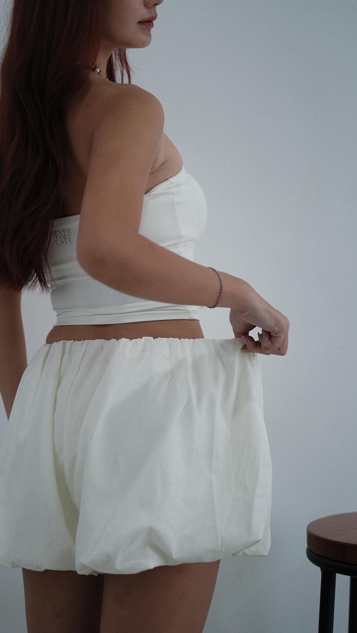 NVTP492- 白色防曬速乾歐美泡泡修腿裙褲