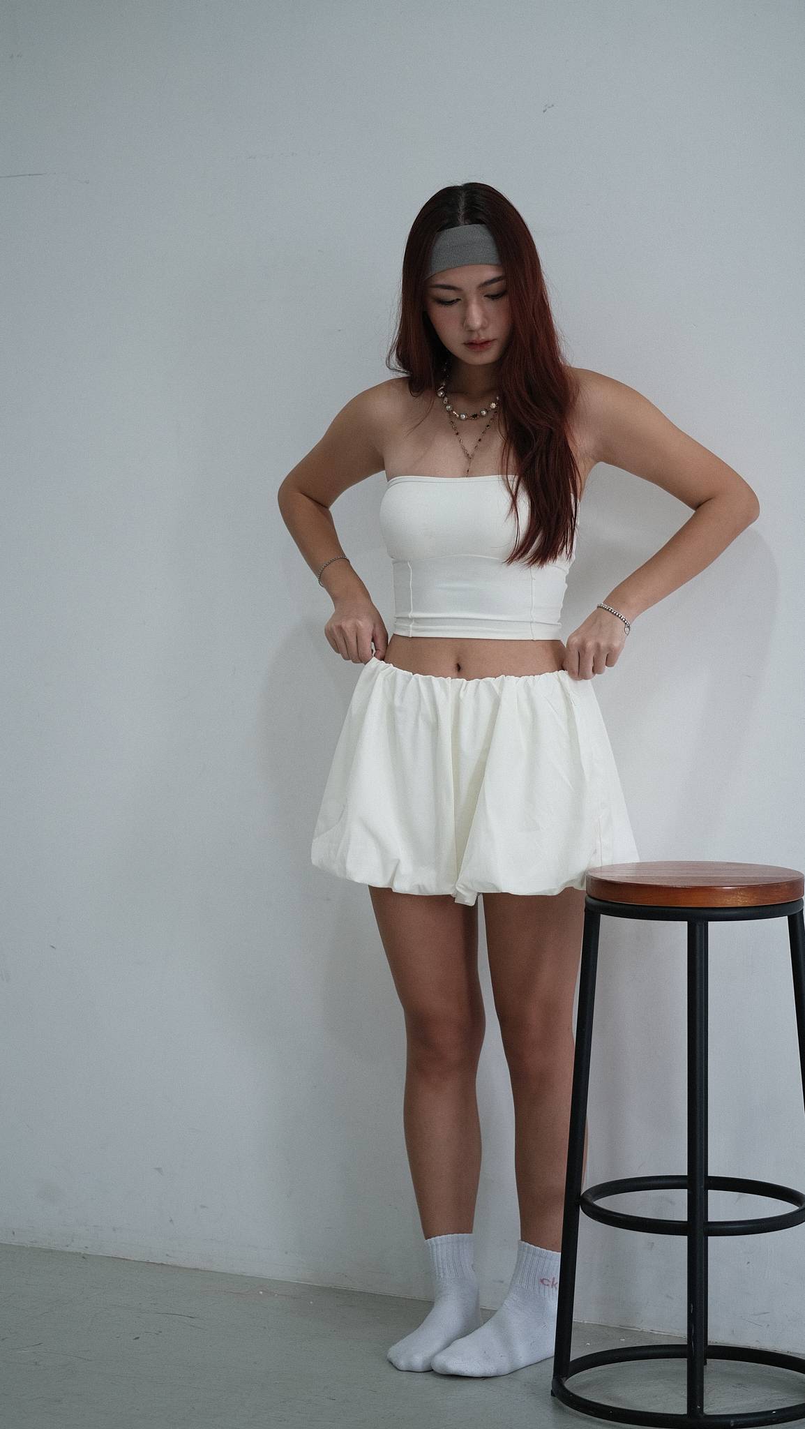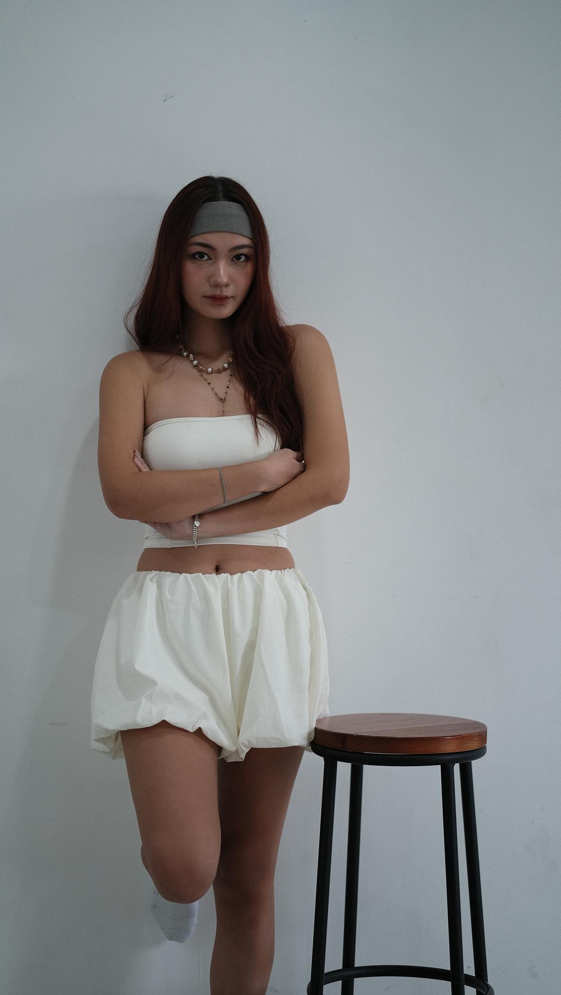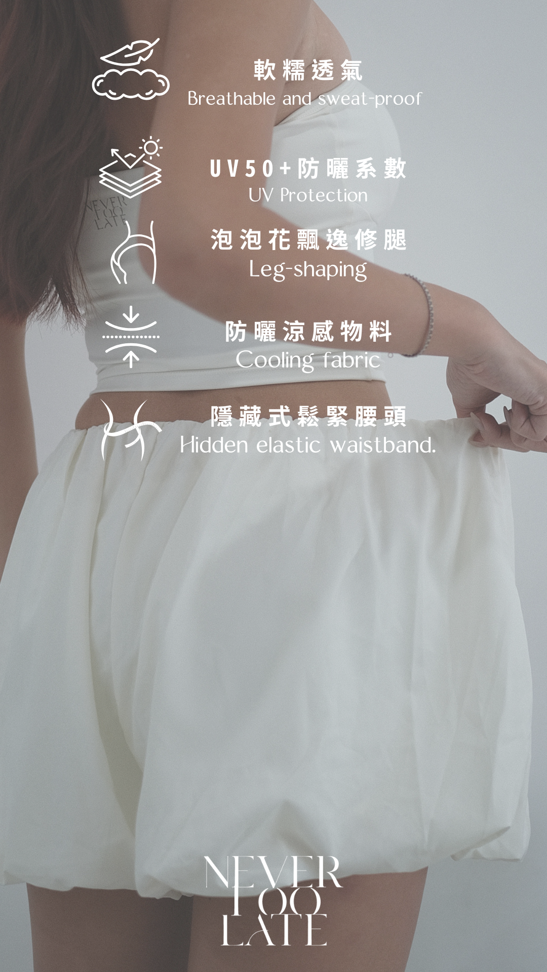 NVTP492- 白色防曬速乾歐美泡泡修腿裙褲
