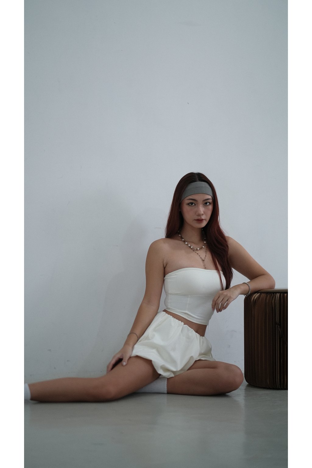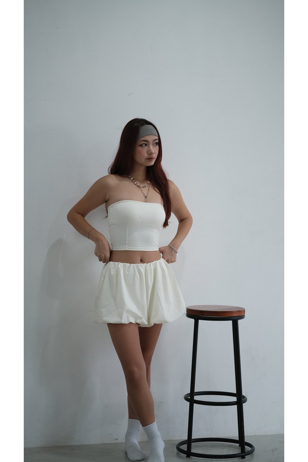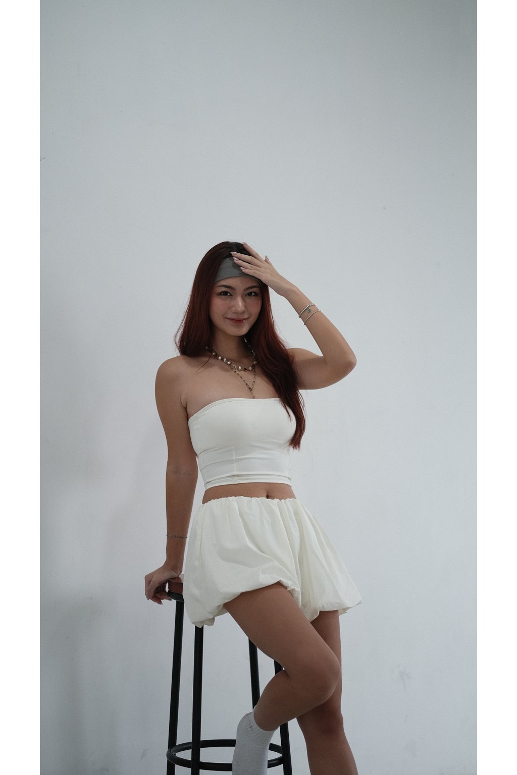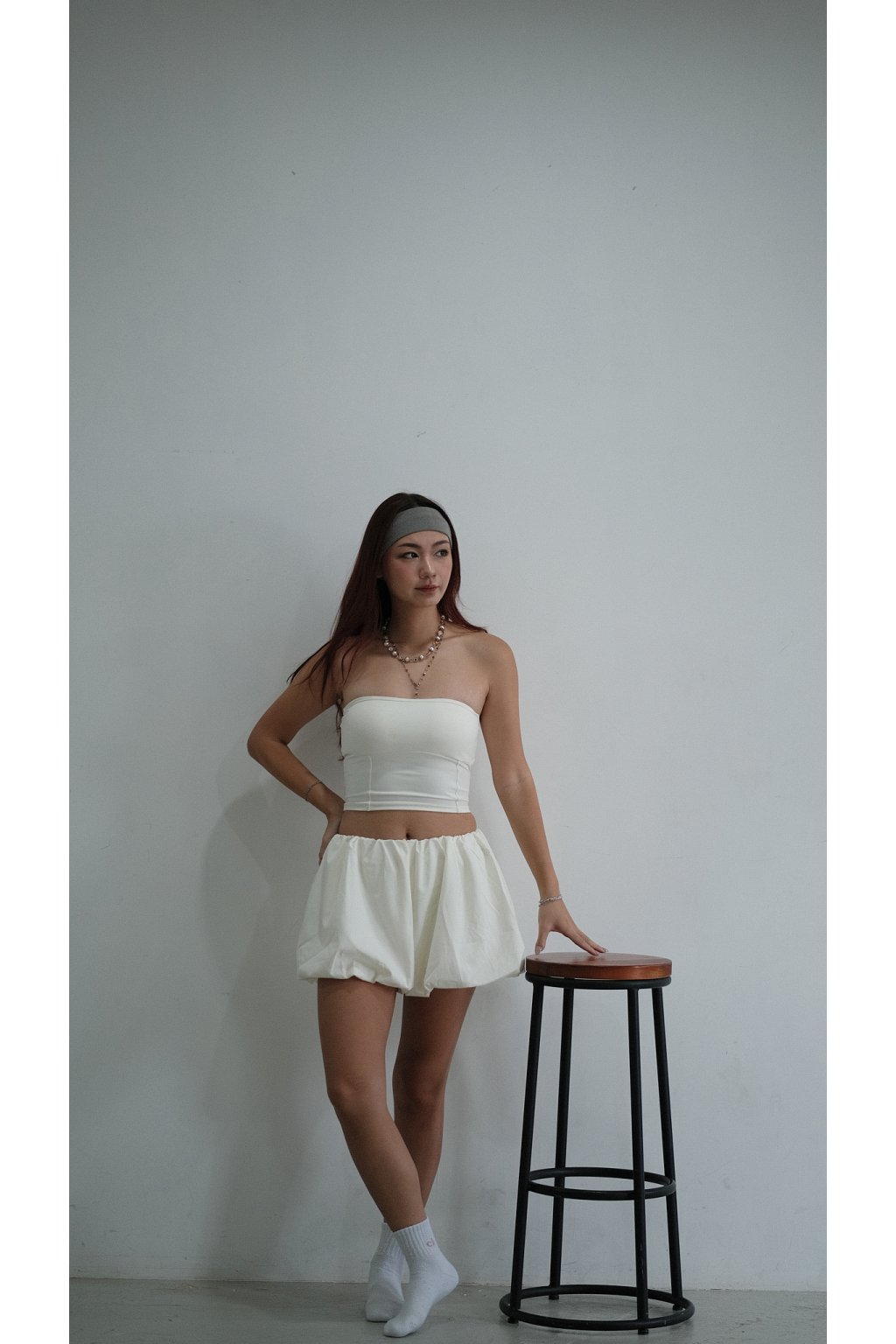 NVTP492- 白色防曬速乾歐美泡泡修腿裙褲