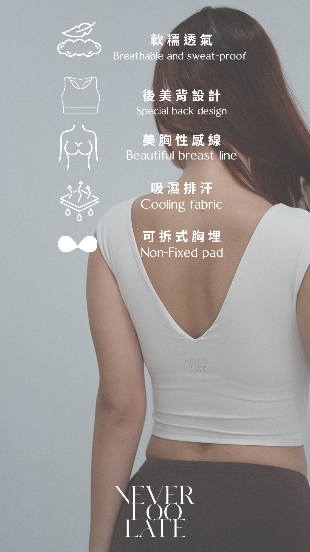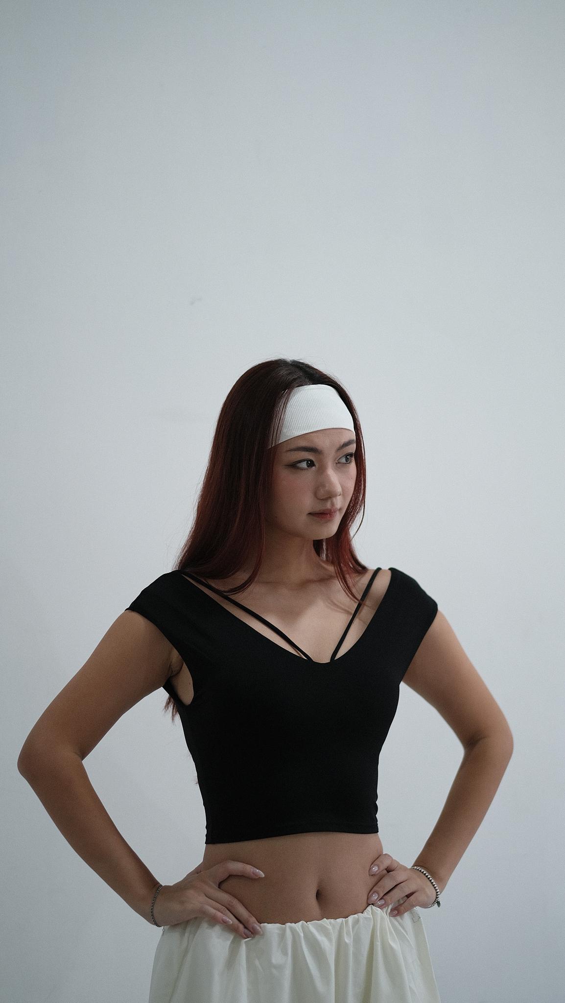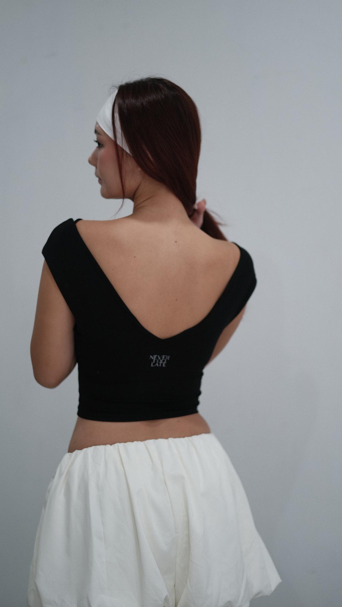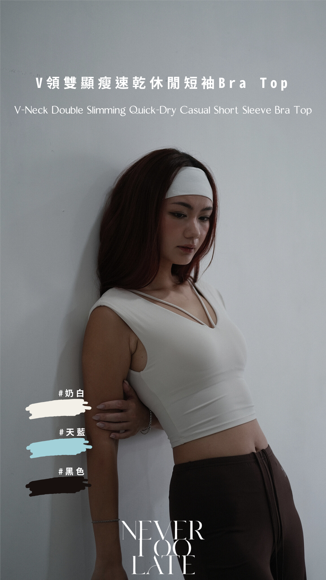NVTT487- 黑色V領雙顯瘦速乾休閒短袖Bra Top