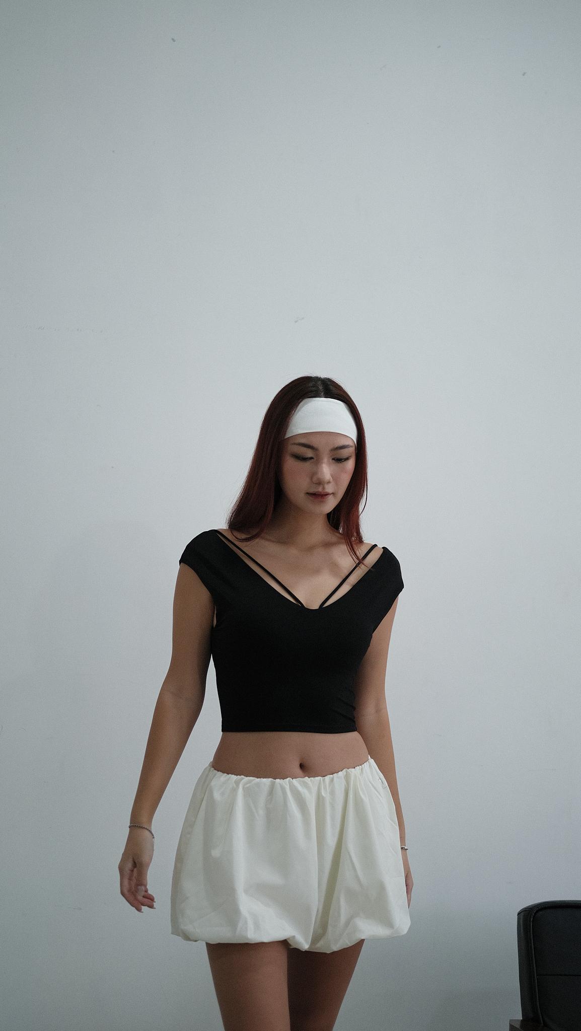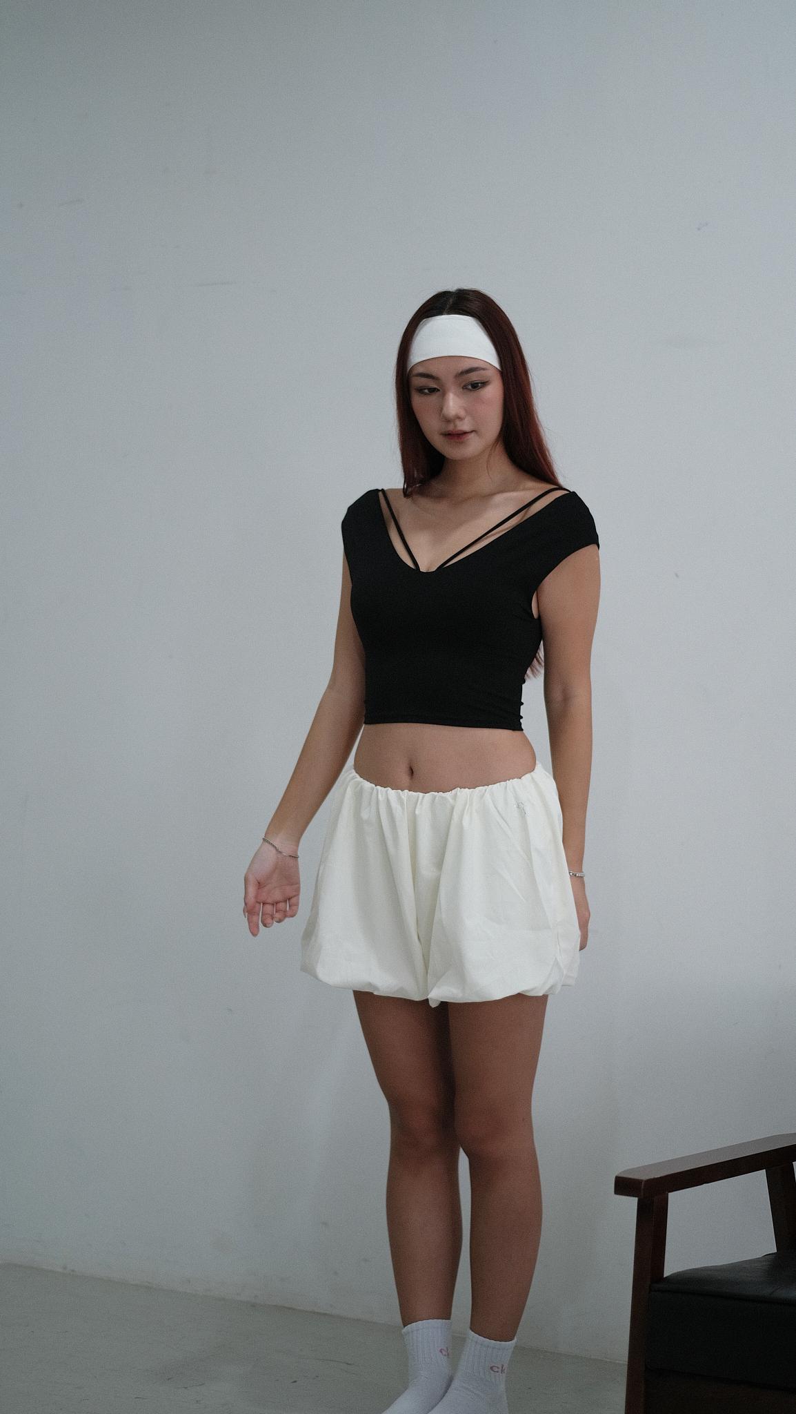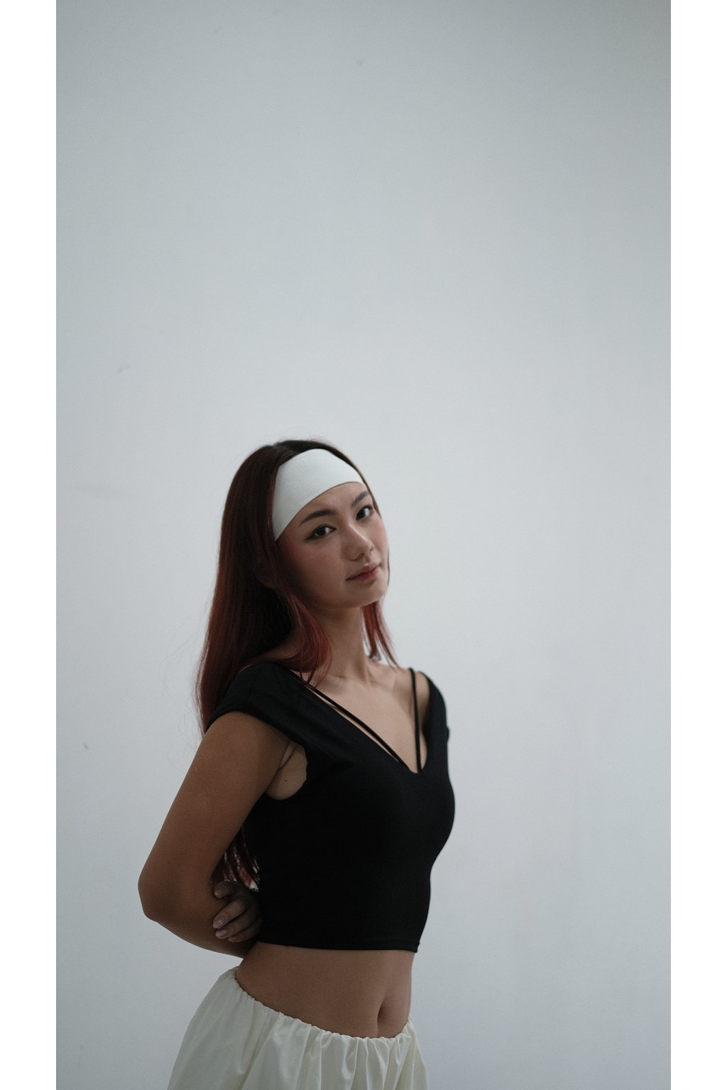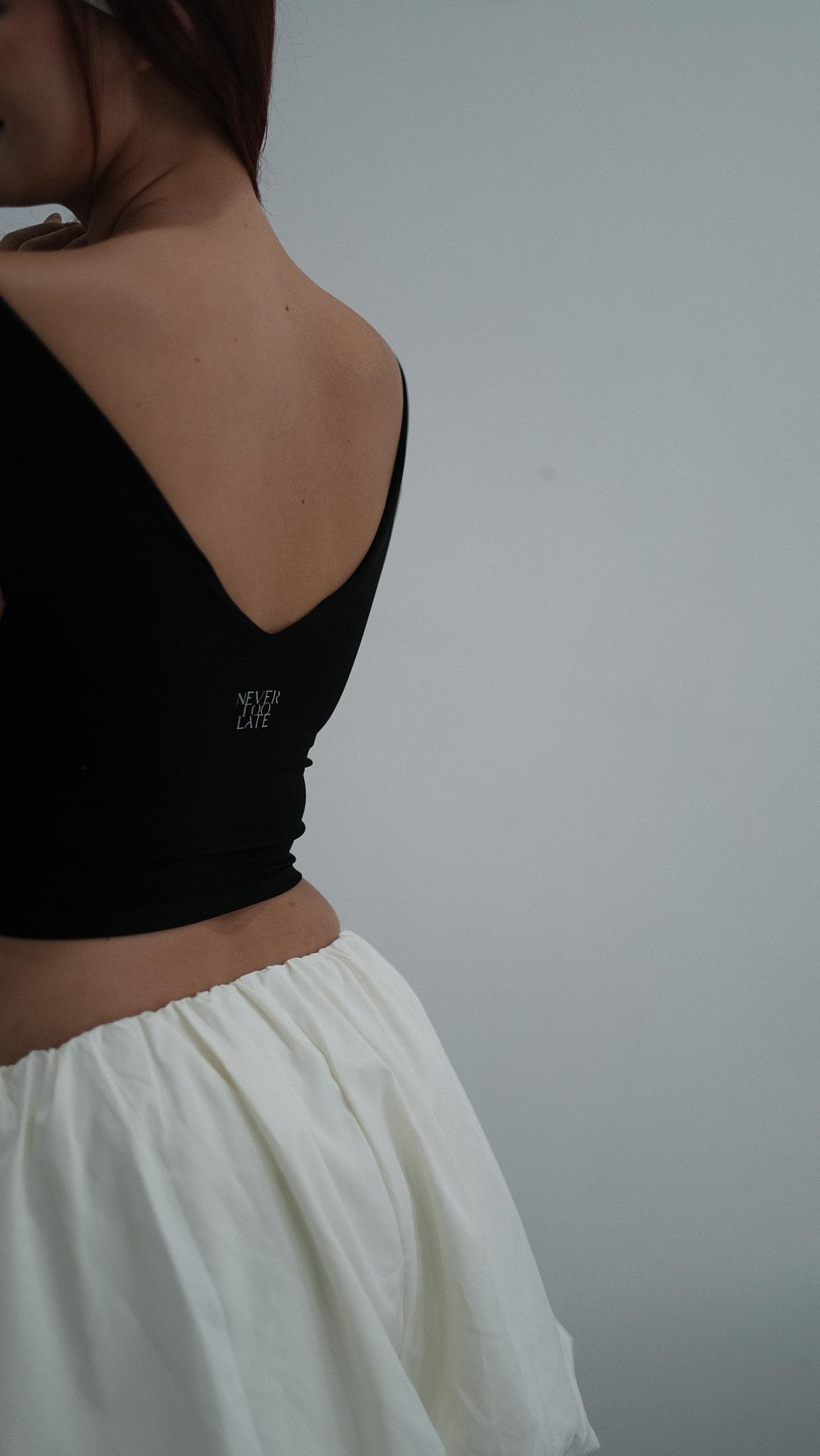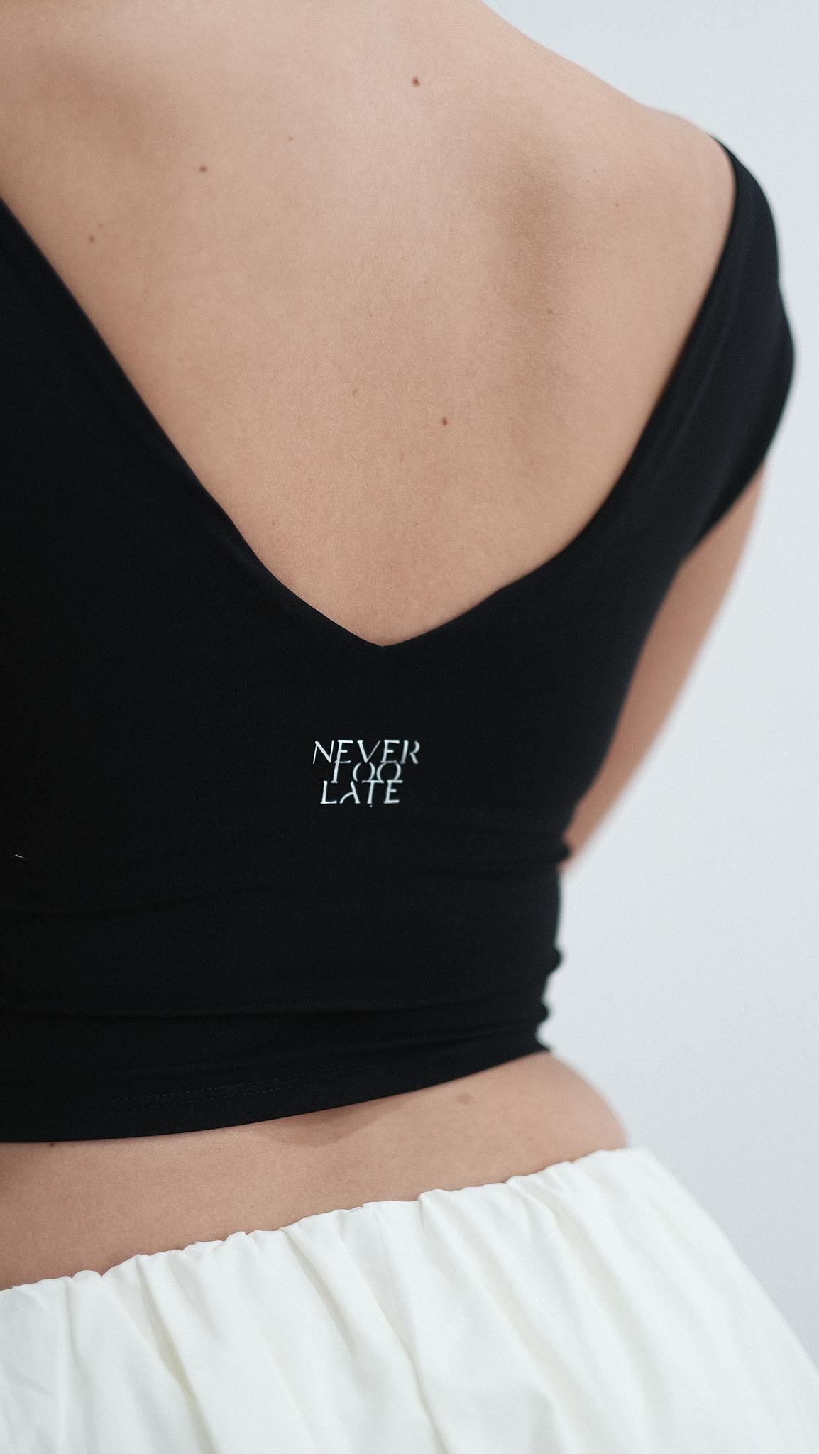 NVTT487- 黑色V領雙顯瘦速乾休閒短袖Bra Top