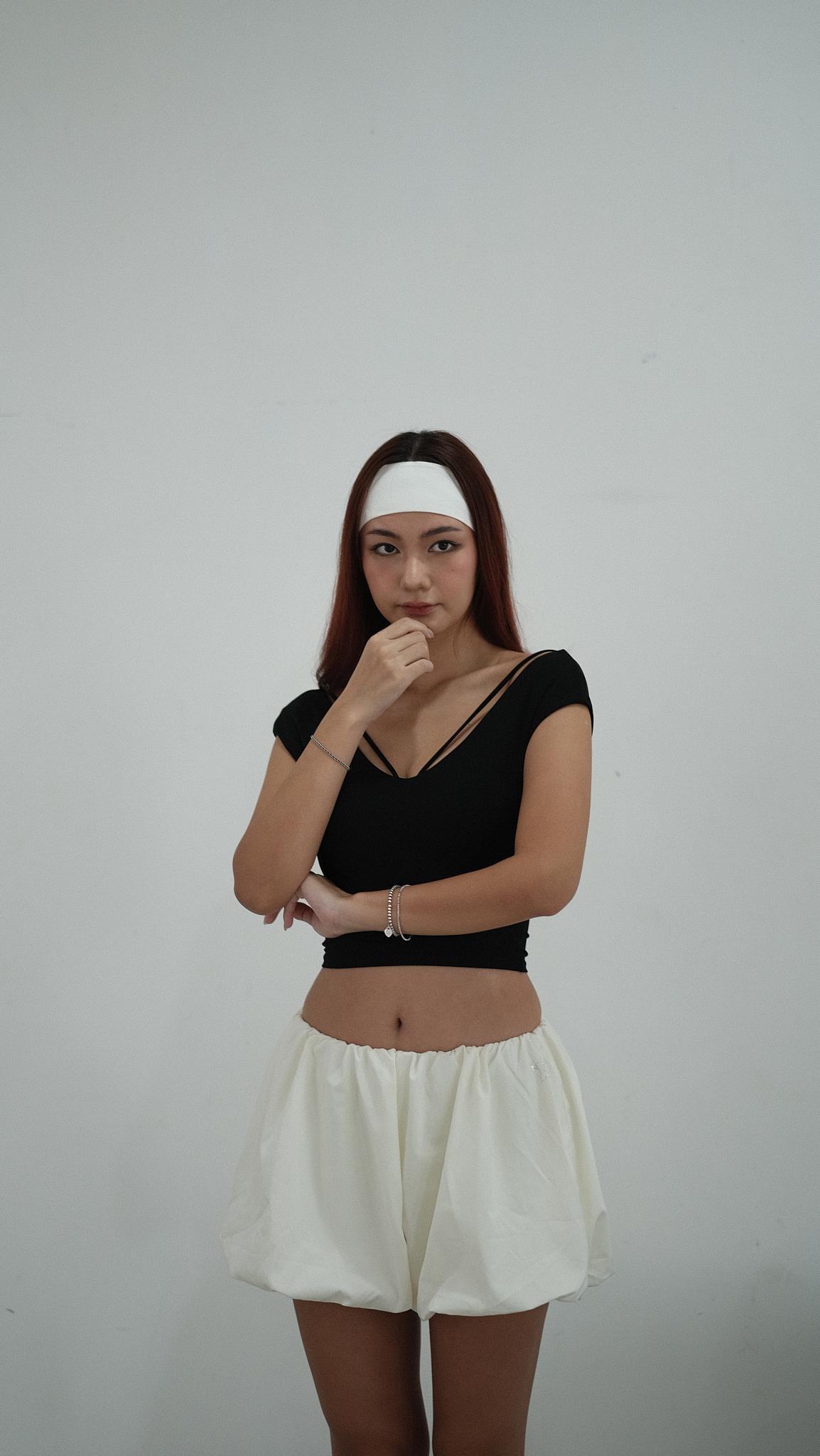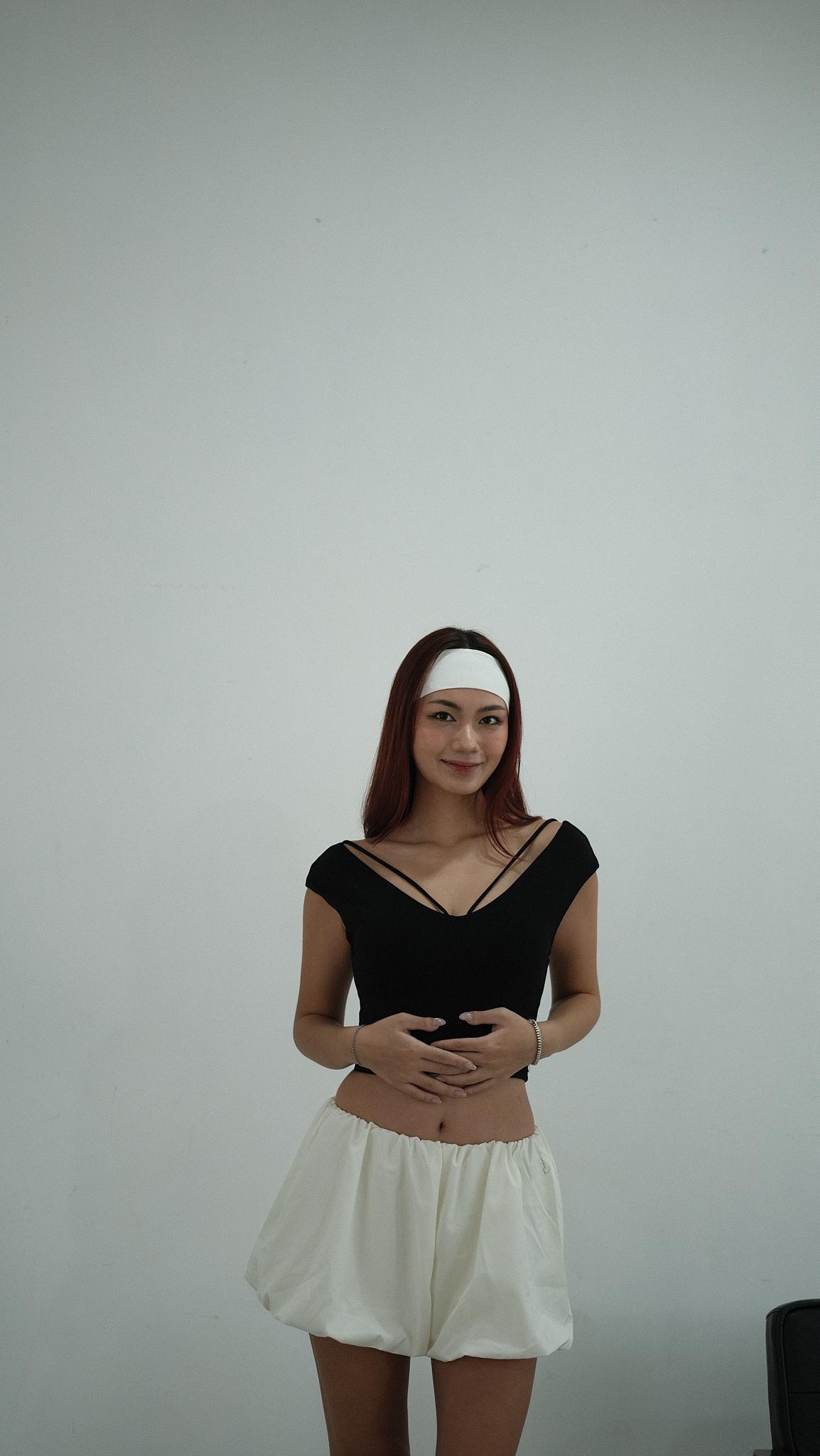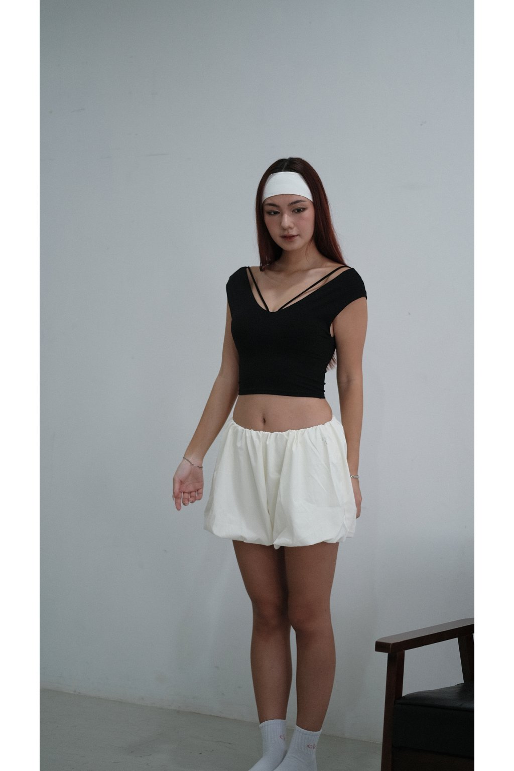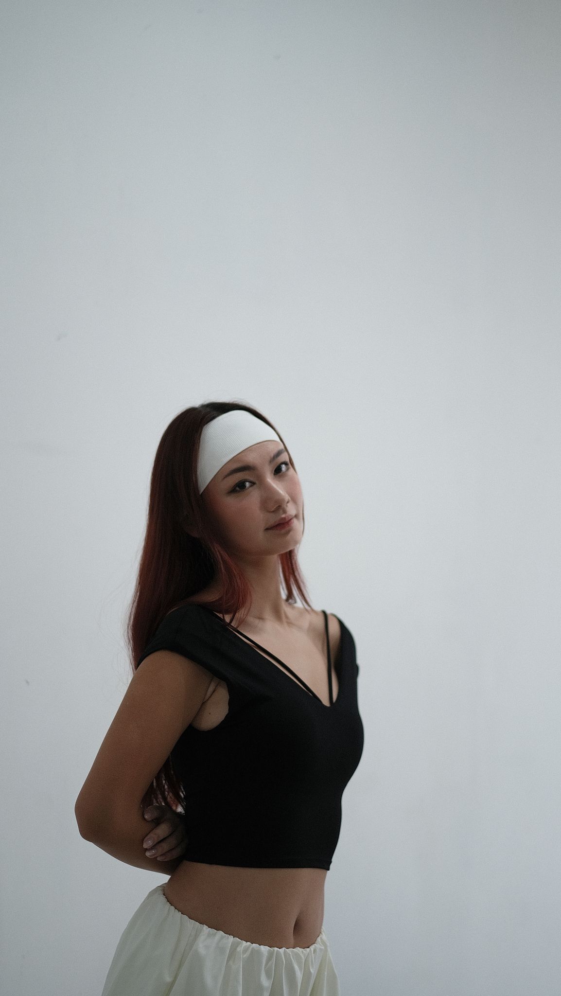 NVTT487- 黑色V領雙顯瘦速乾休閒短袖Bra Top