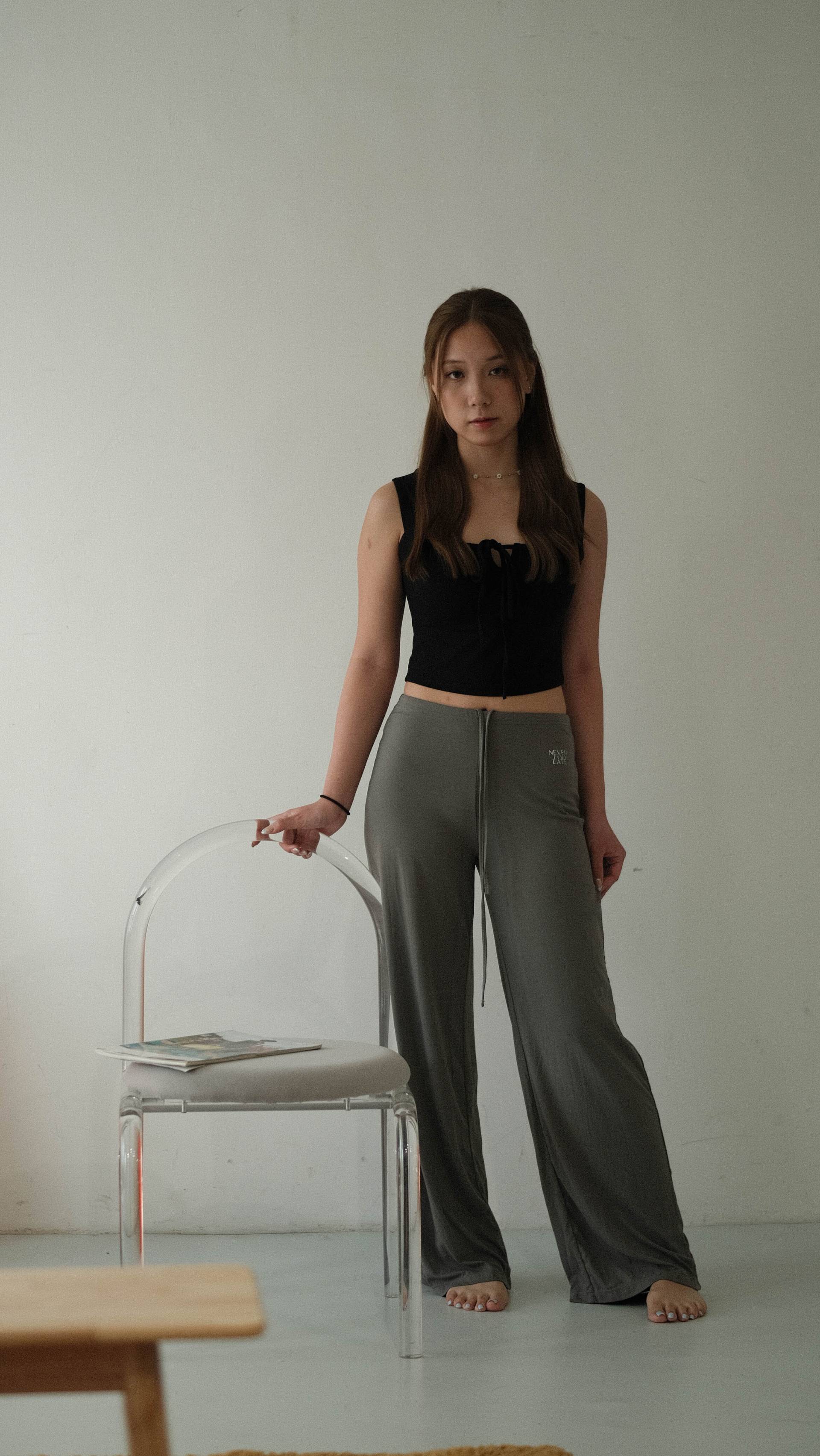 NVTT489- 黑色U型領中強度抽繩寬肩帶胸墊Bra Top
