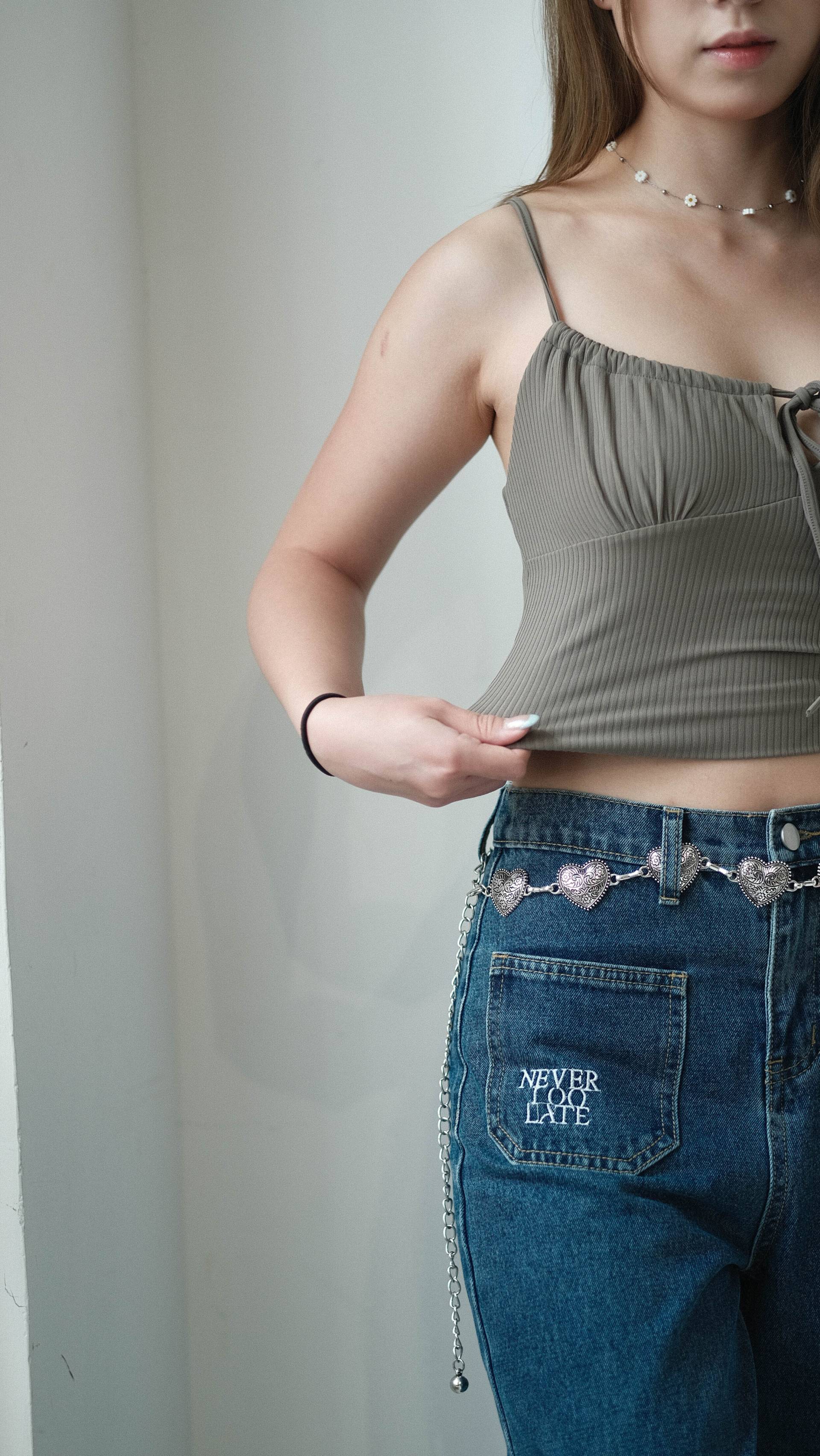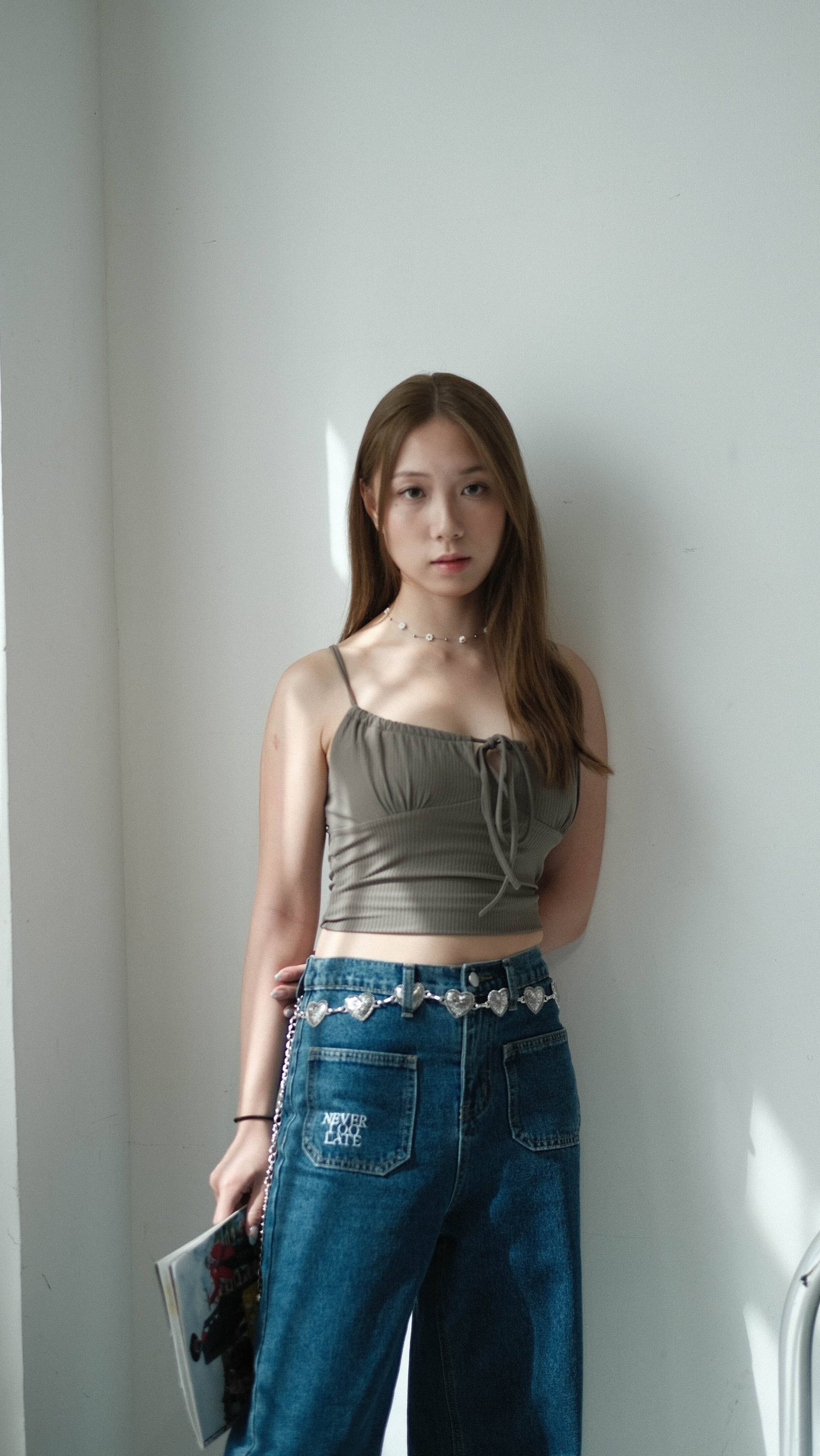 NVTT494- 卡其法式別緻感鏤空綁帶Bra Top