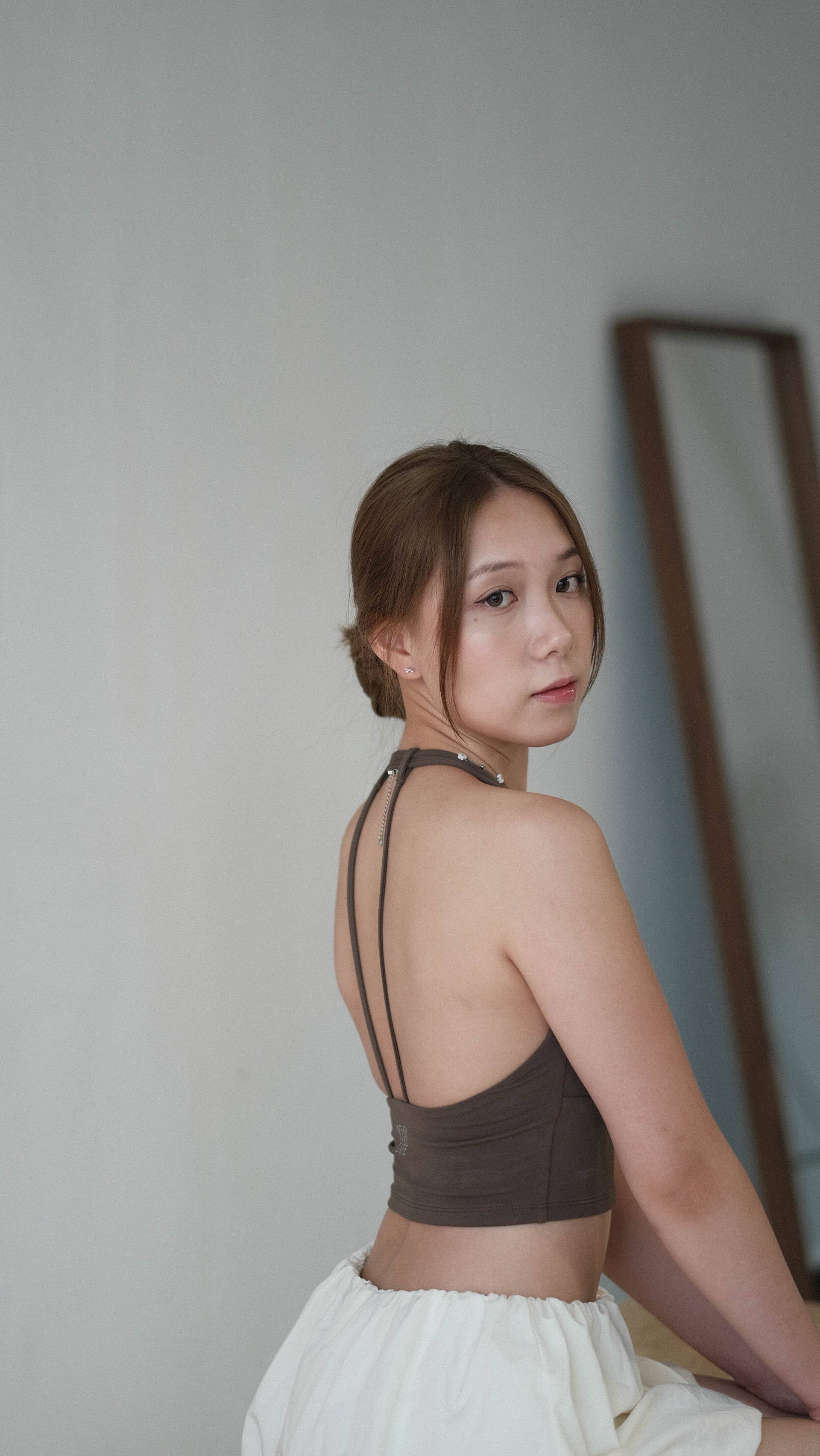 NVTT502- 啡木灰裸感透氣紐結美背Bra Top