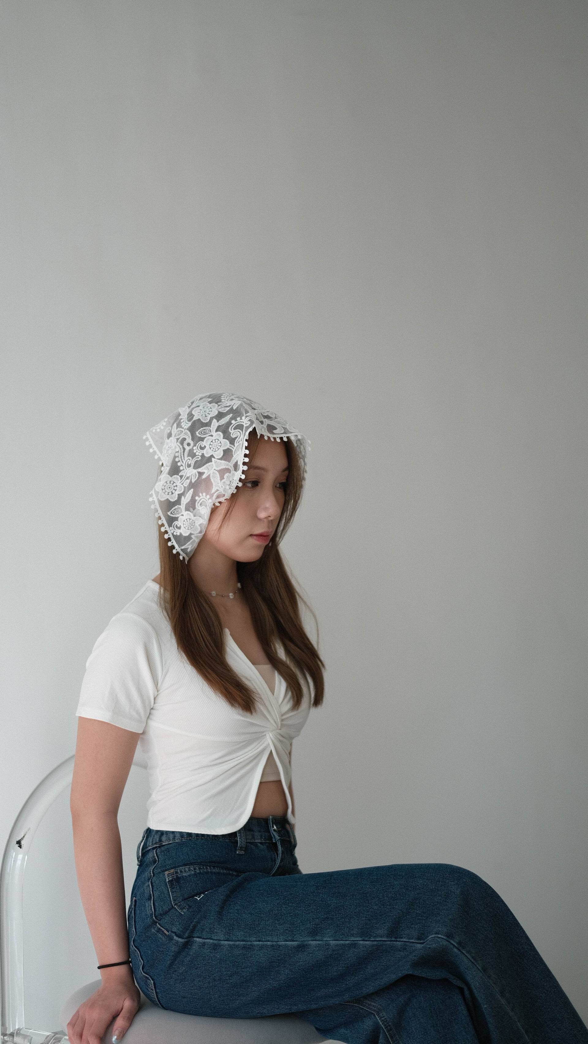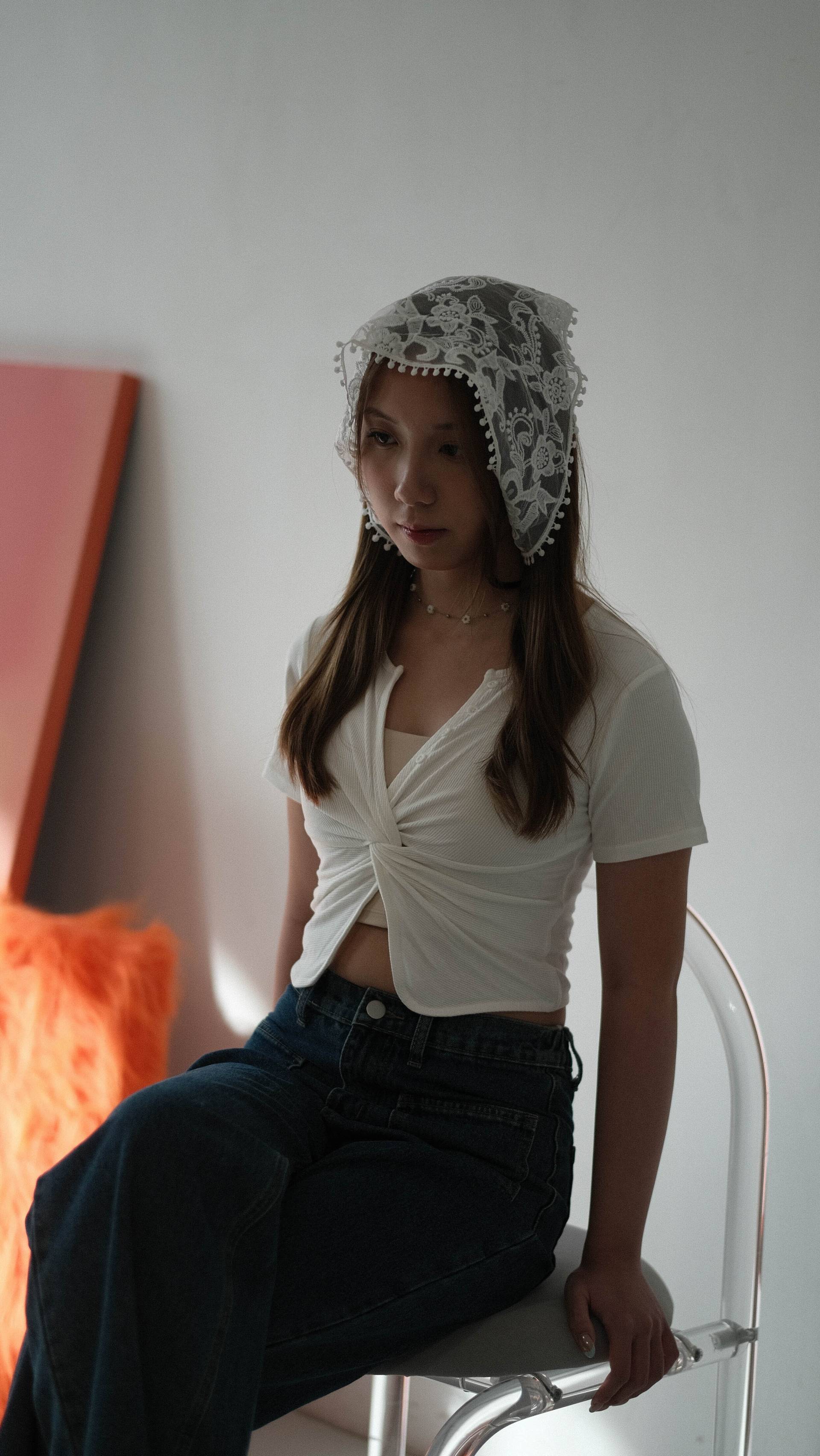 NVTO619- 白色假扣扭結速乾短袖罩衫