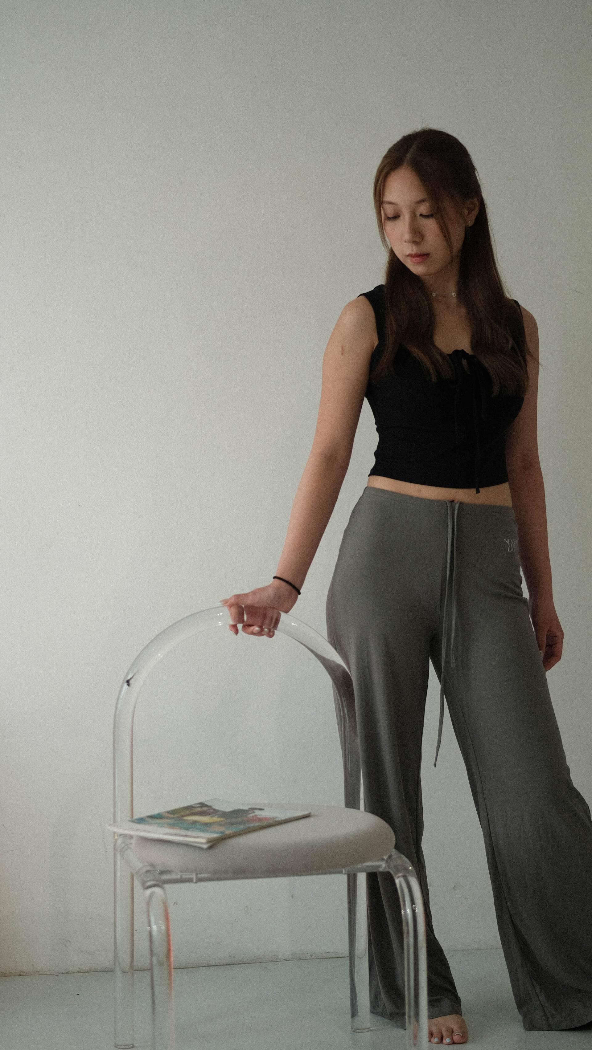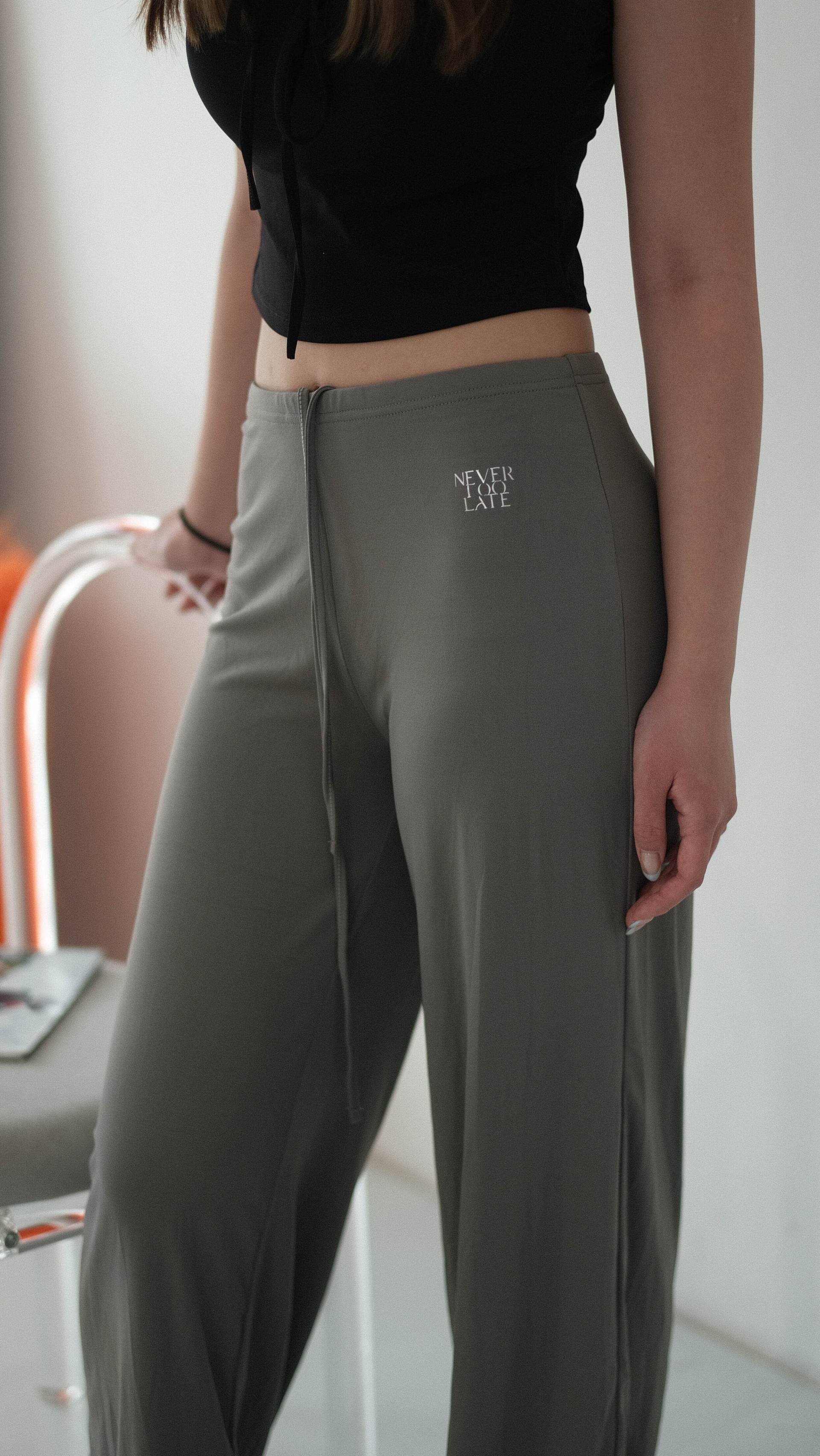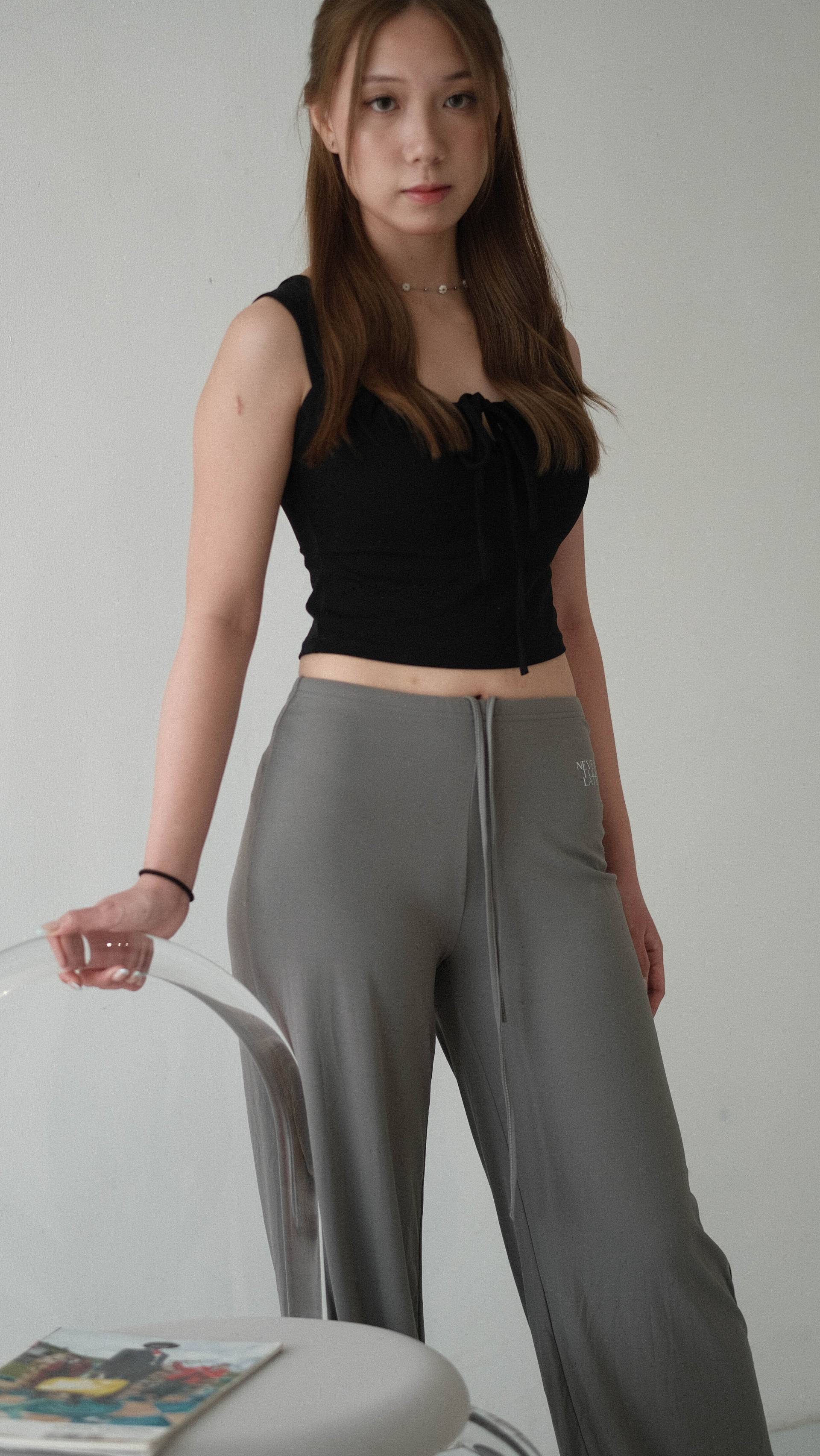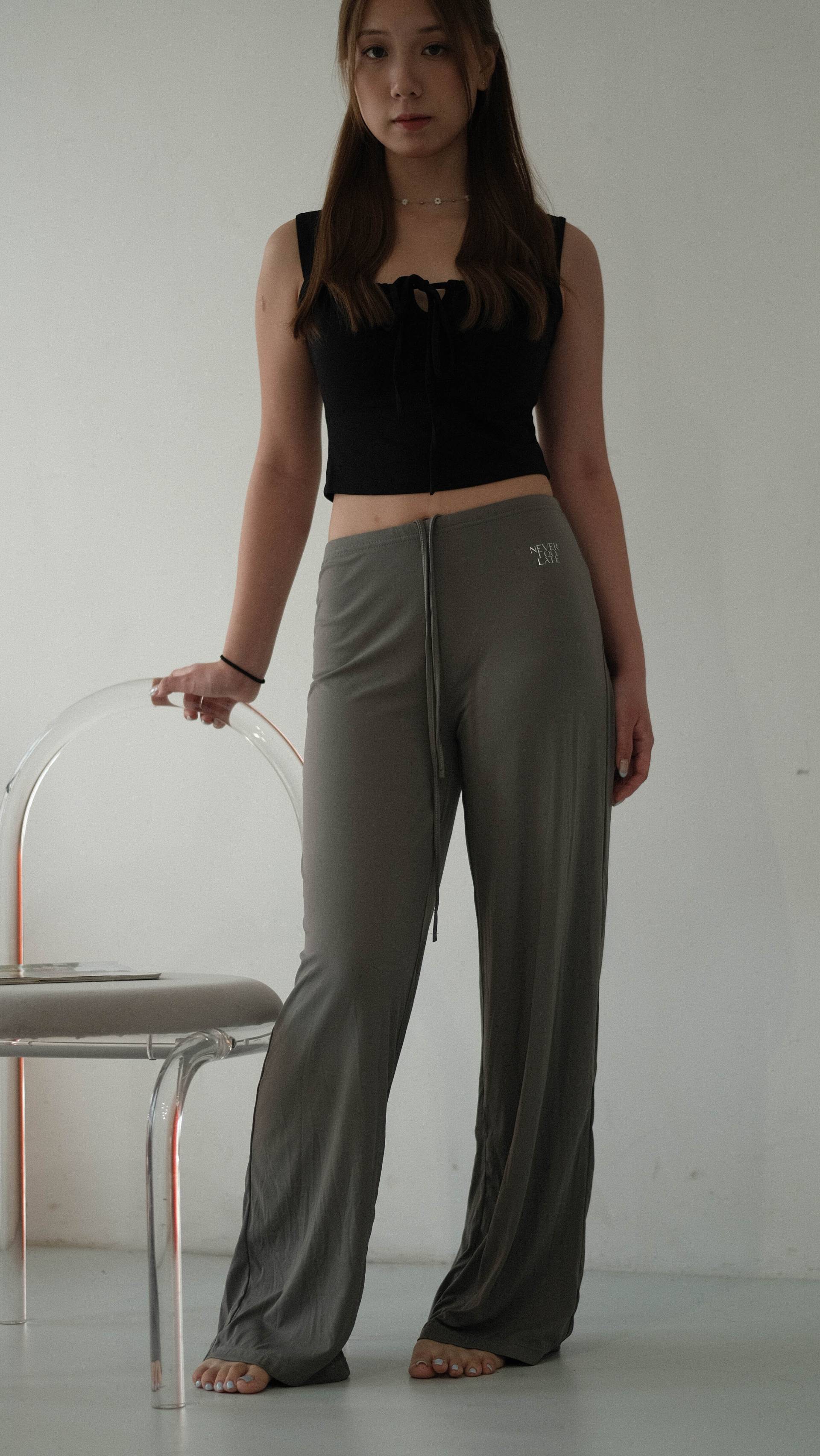 NVTP495- 深灰順滑抗菌寬鬆顯瘦垂墜感休閒長褲