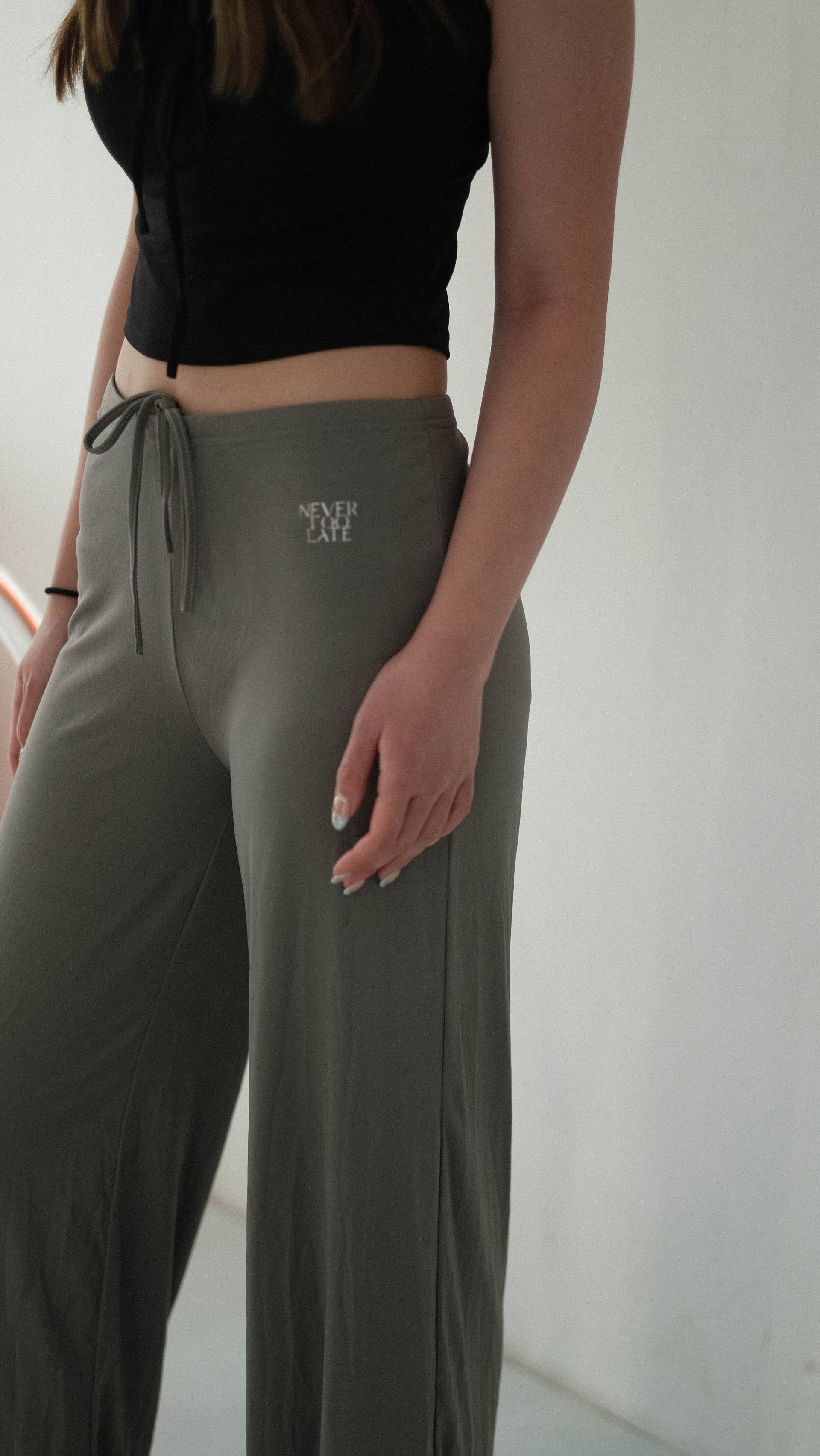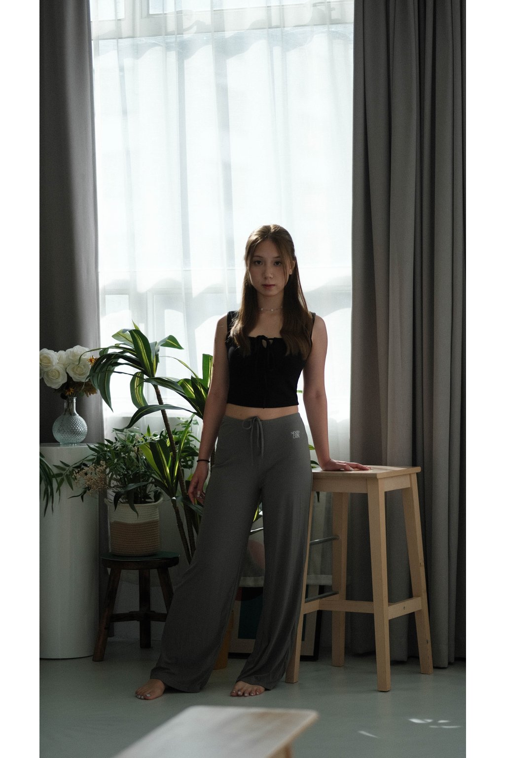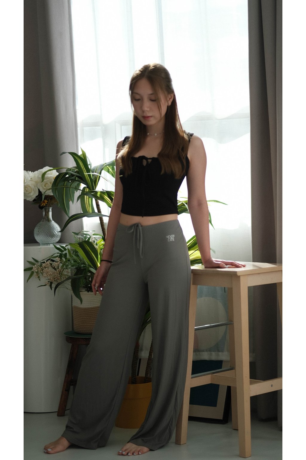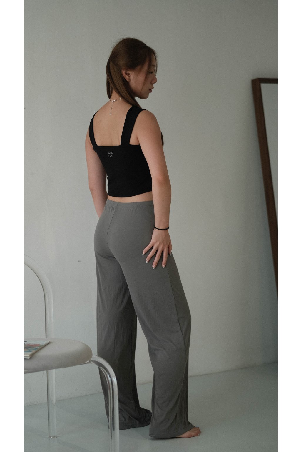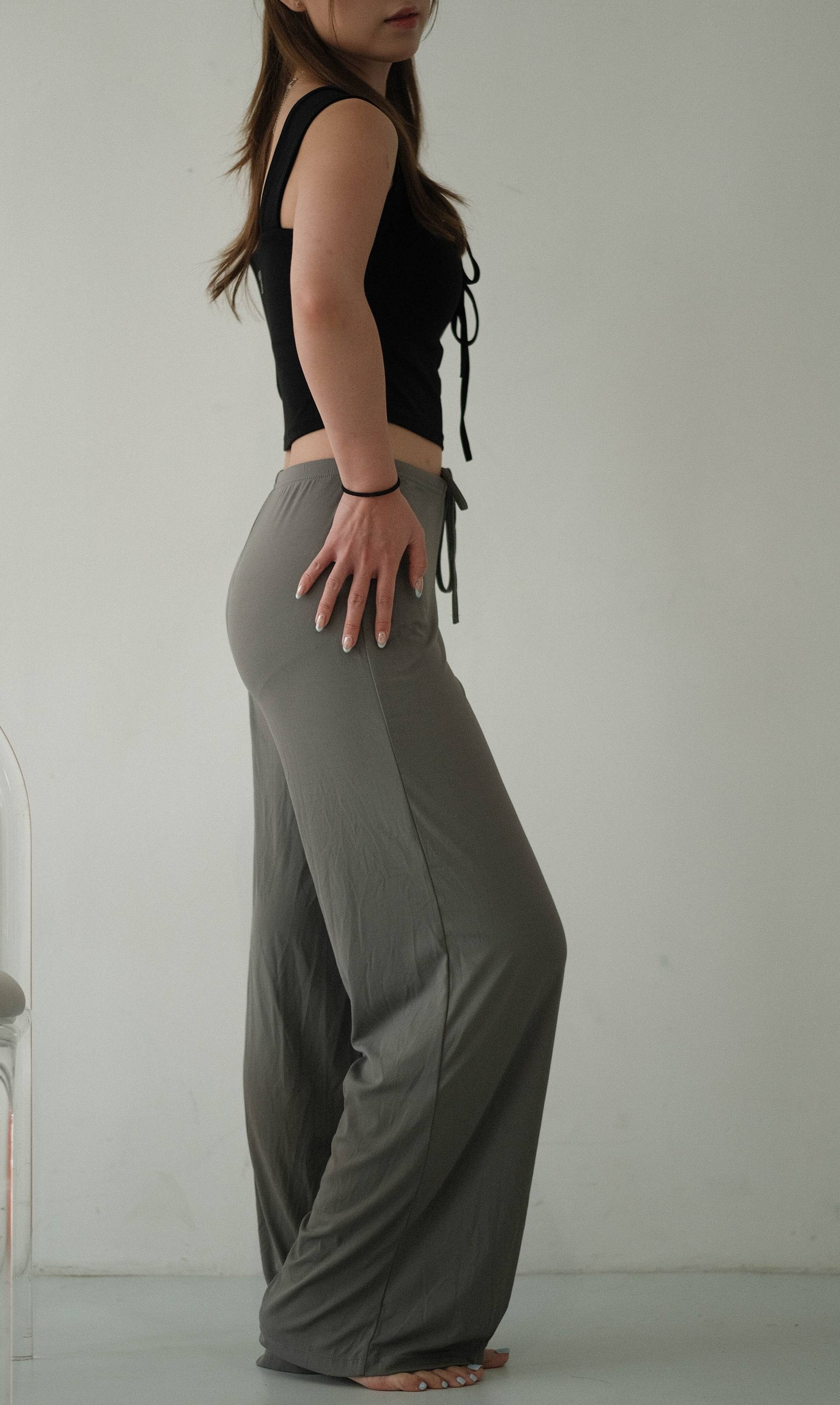 NVTP495- 深灰順滑抗菌寬鬆顯瘦垂墜感休閒長褲