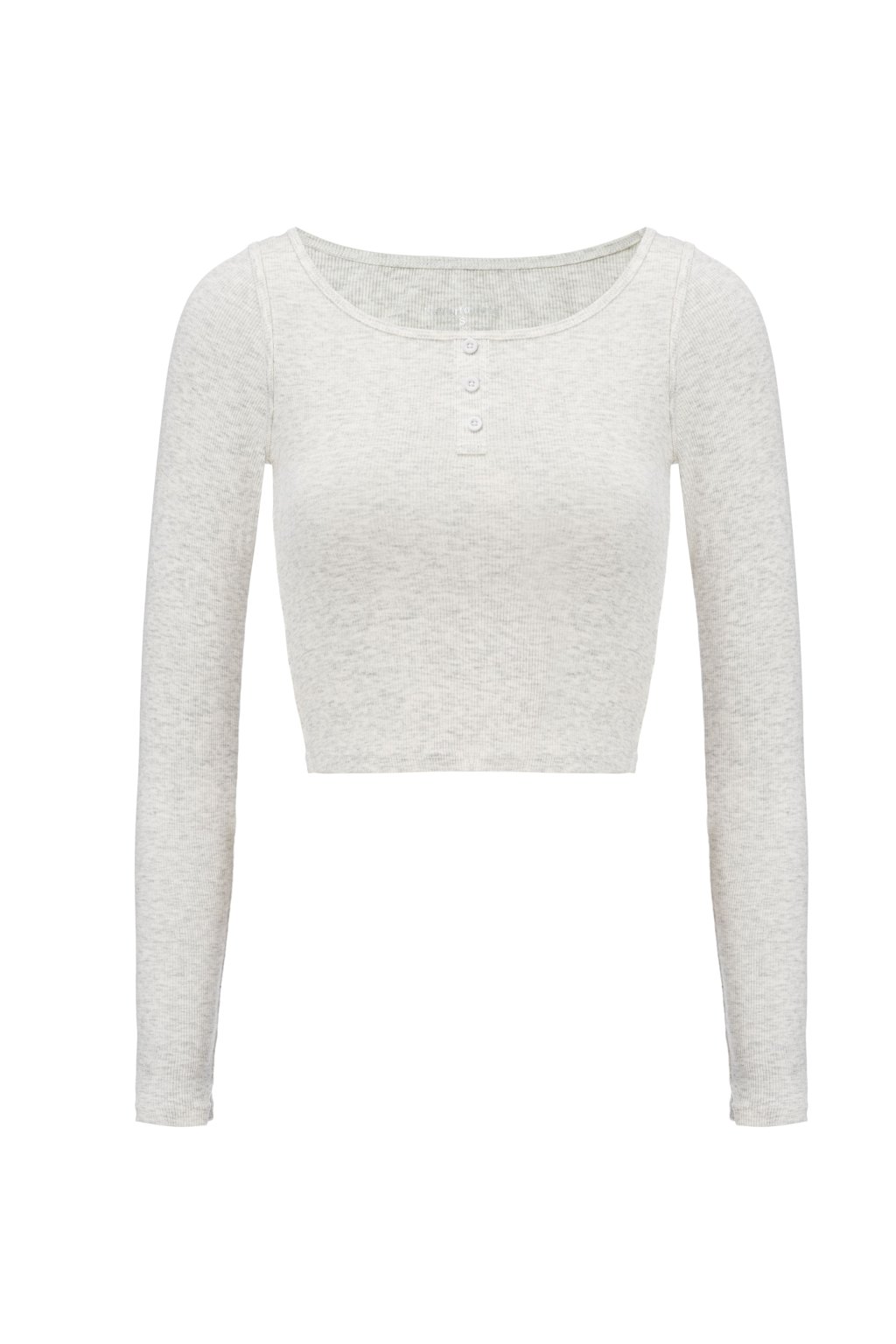 款式定位:長袖、套頭、衣長及腰 (Crop/Just at Waist)。