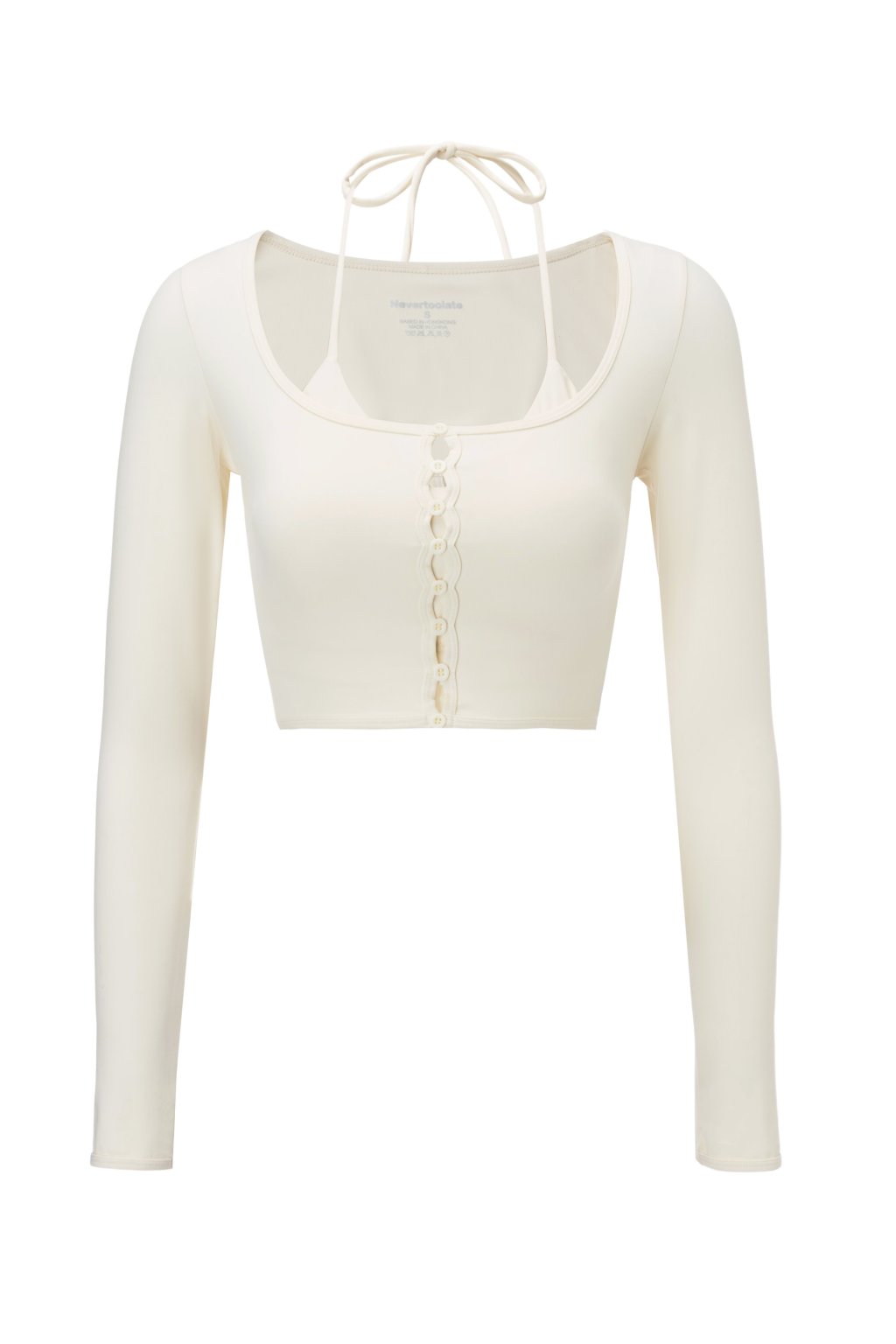 NVTT511- 象牙白顯瘦貓耳掛頸假兩件運動上衣(連胸墊)