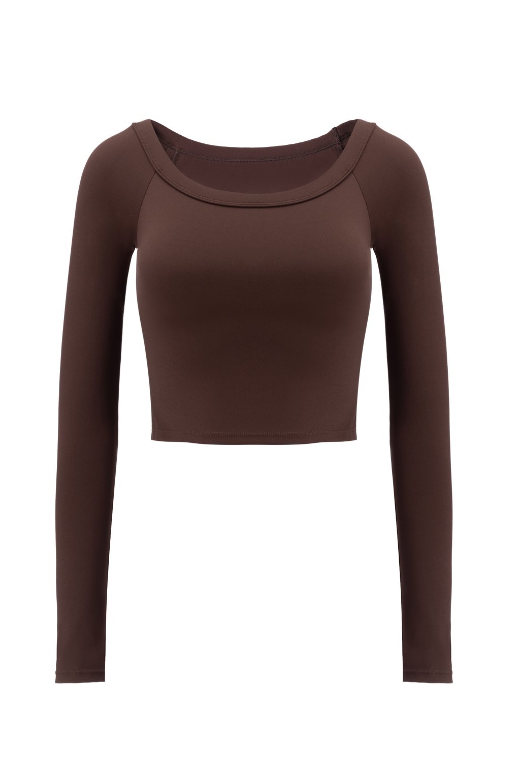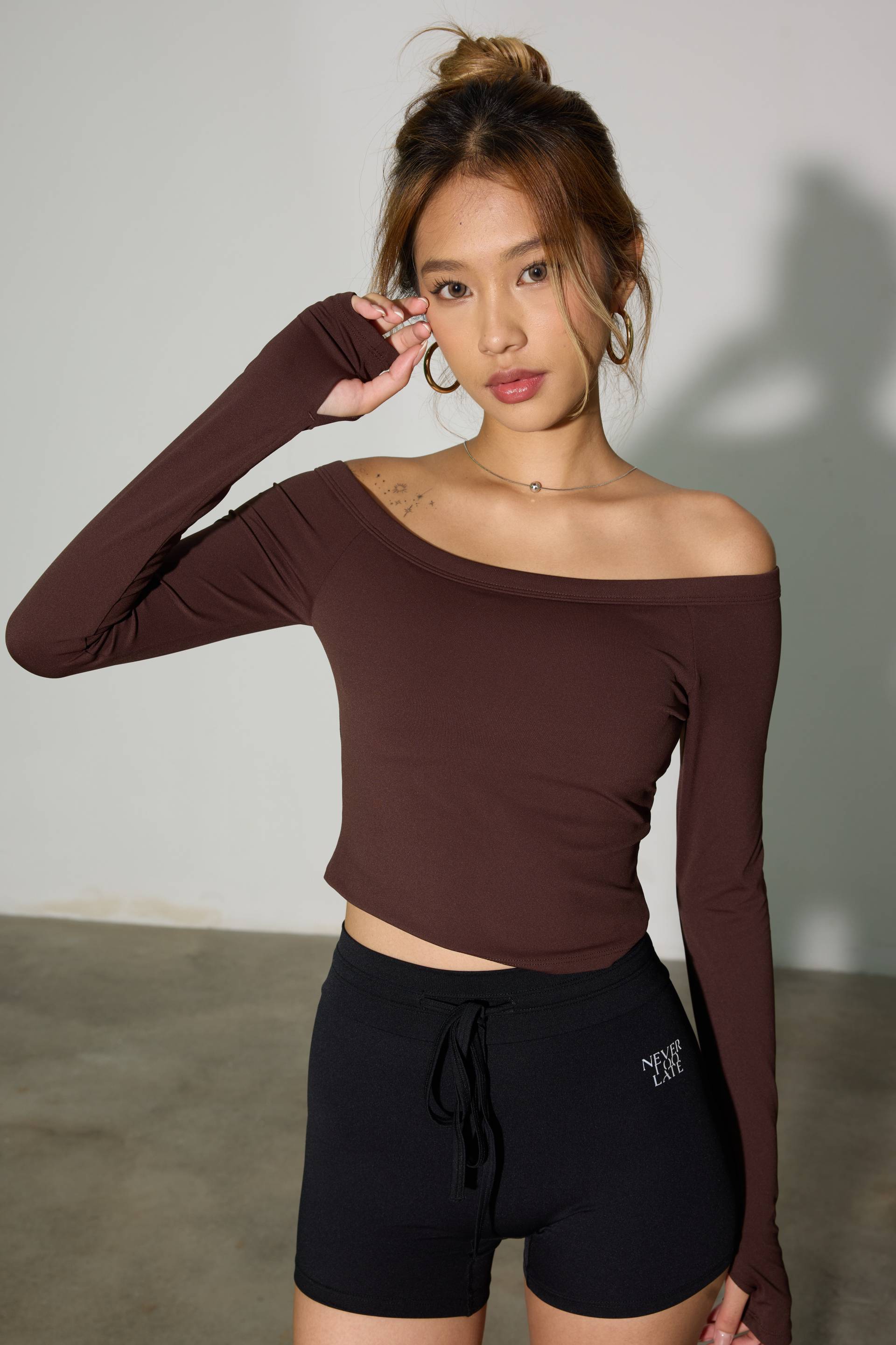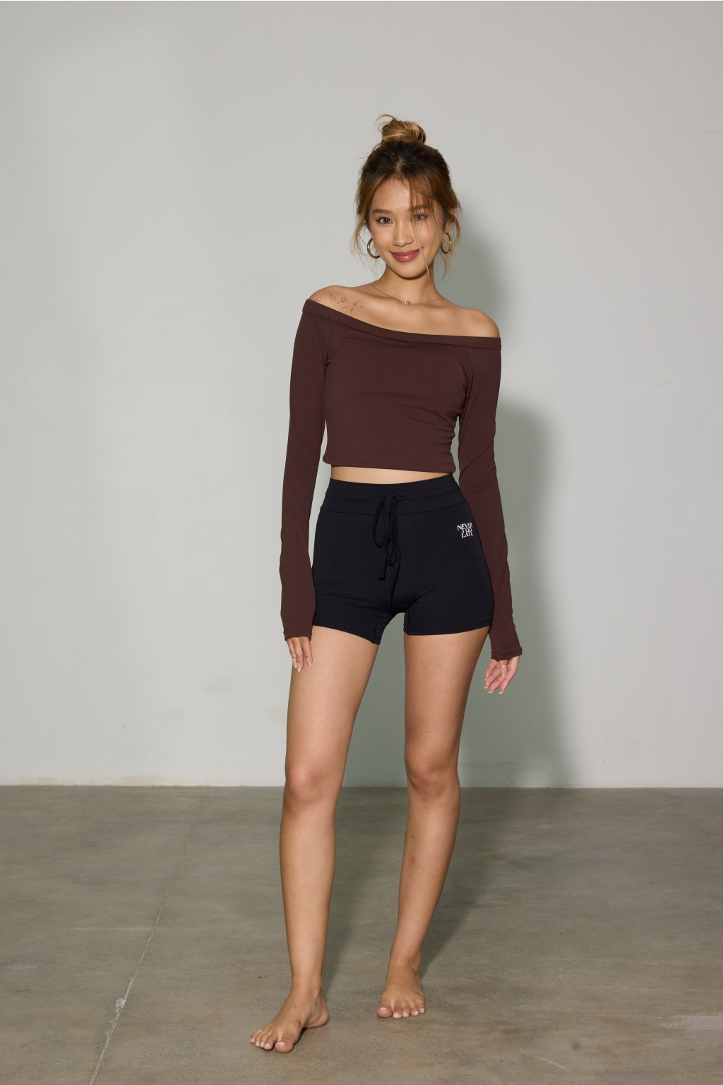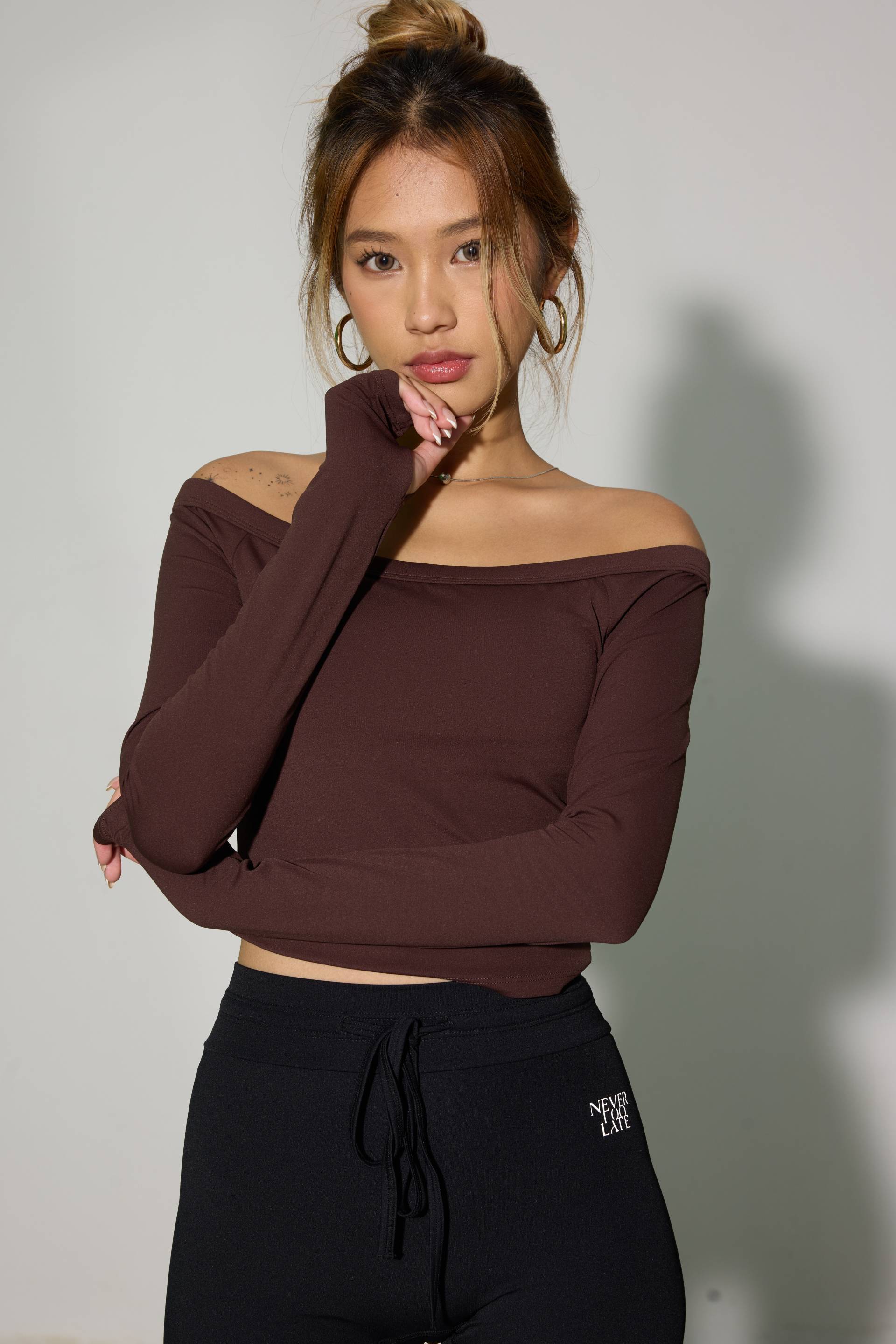 NVTT518- 深咖啡一字肩貼身多造型運動上衣(連胸墊)