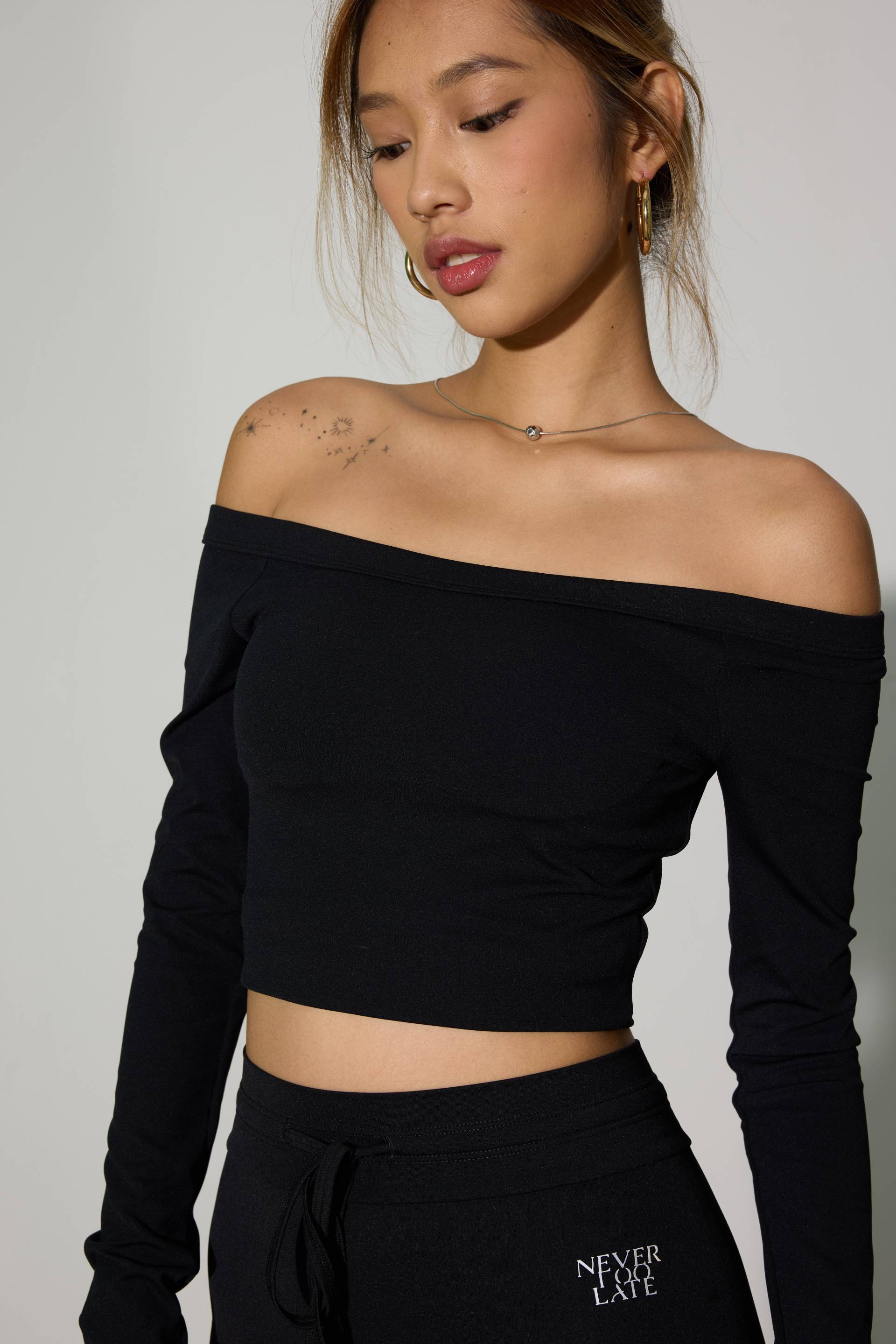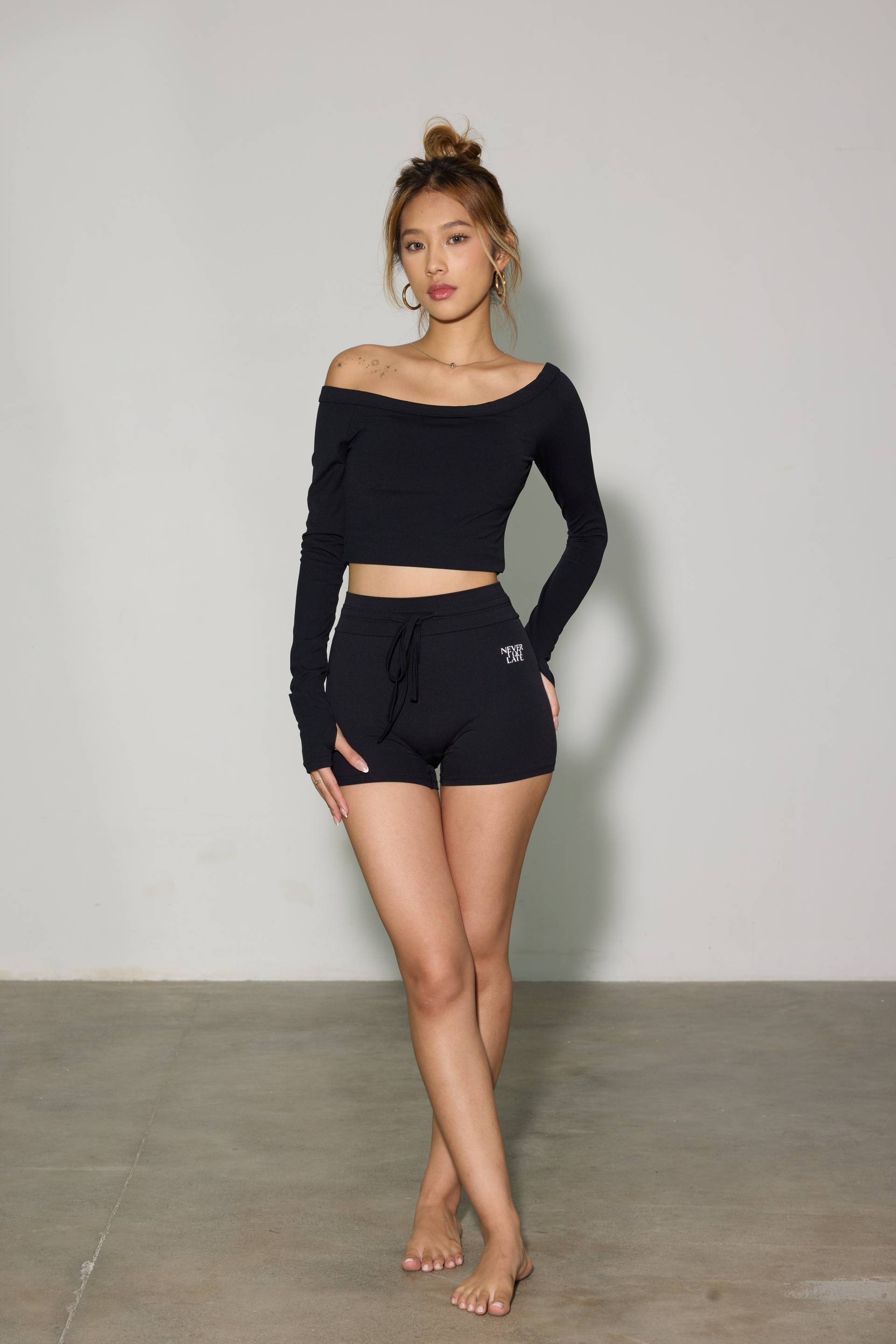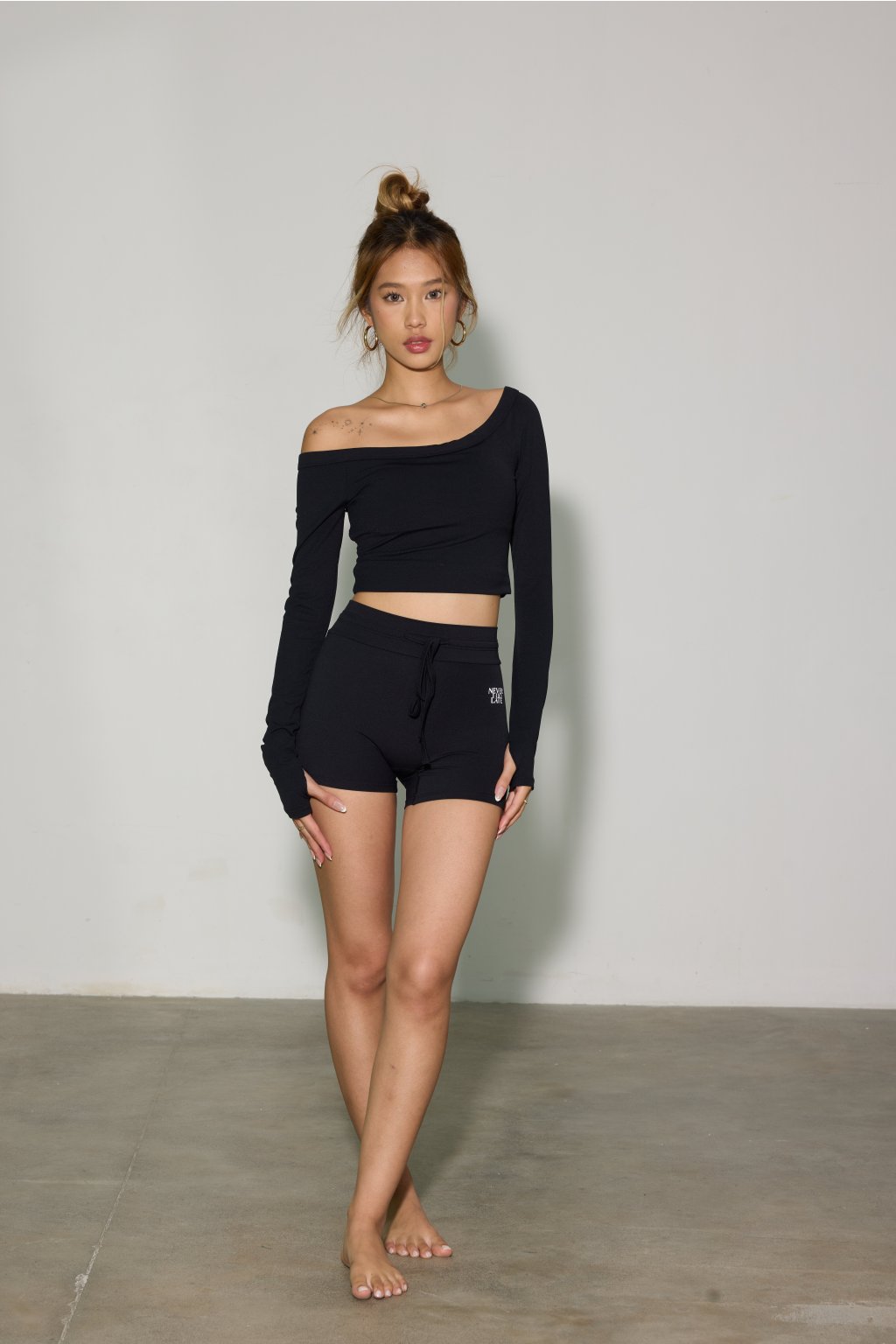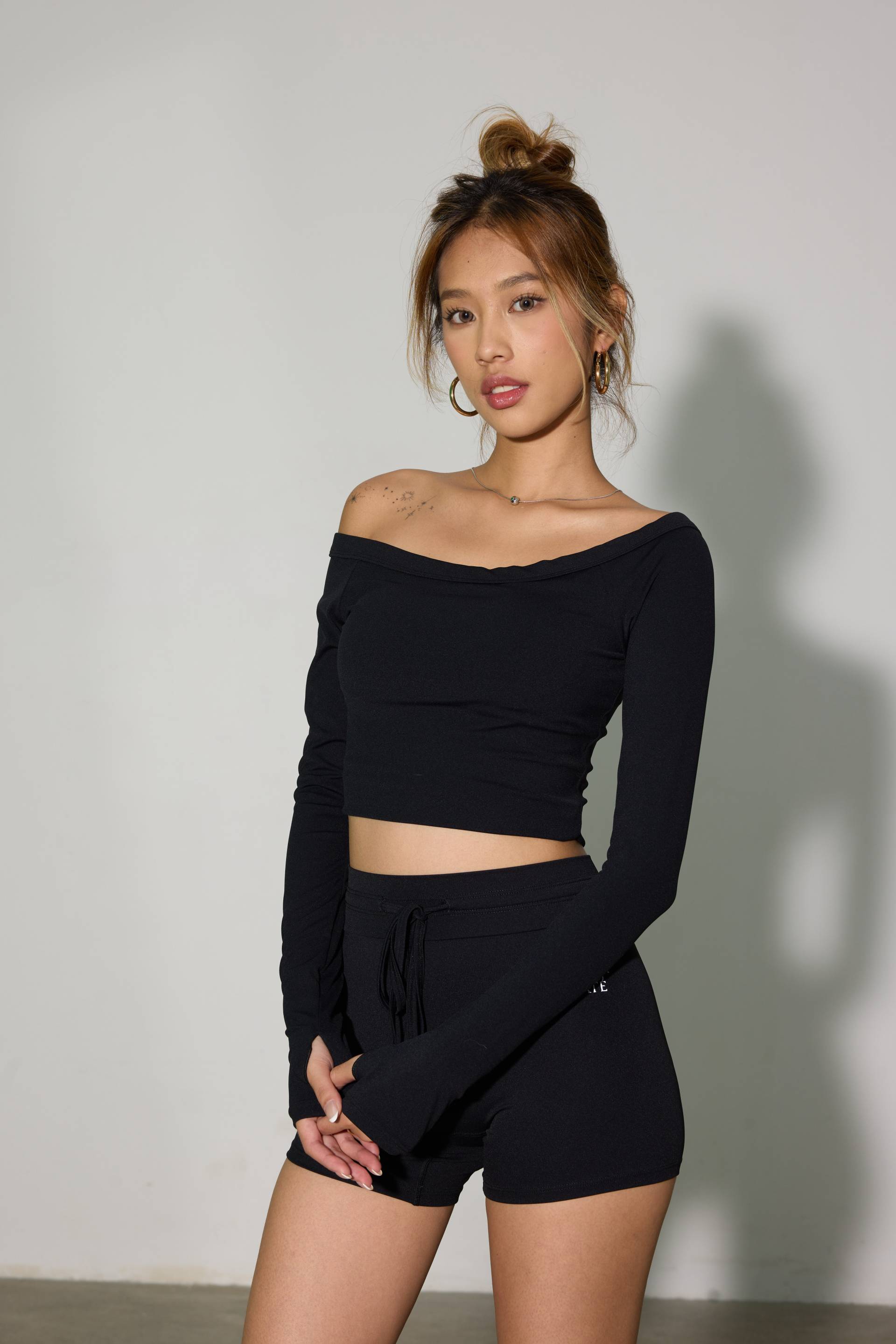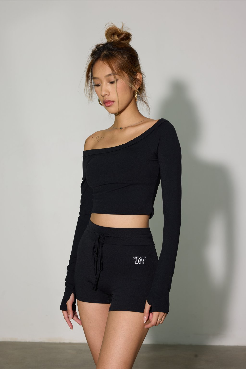 NVTT519- 黑色一字肩貼身多造型運動上衣(連胸墊)