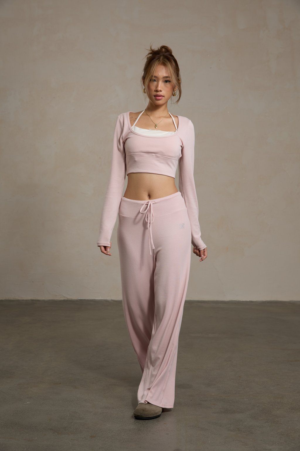 NVTT525- 朦朧粉撞色假兩件掛頸運動上衣(連胸墊)