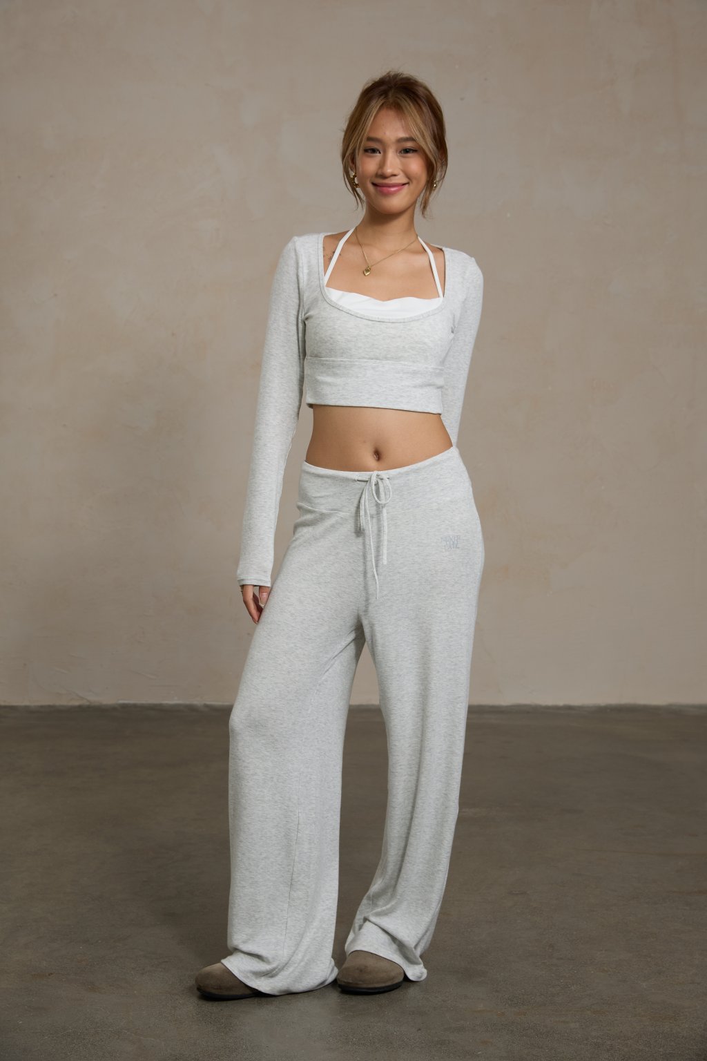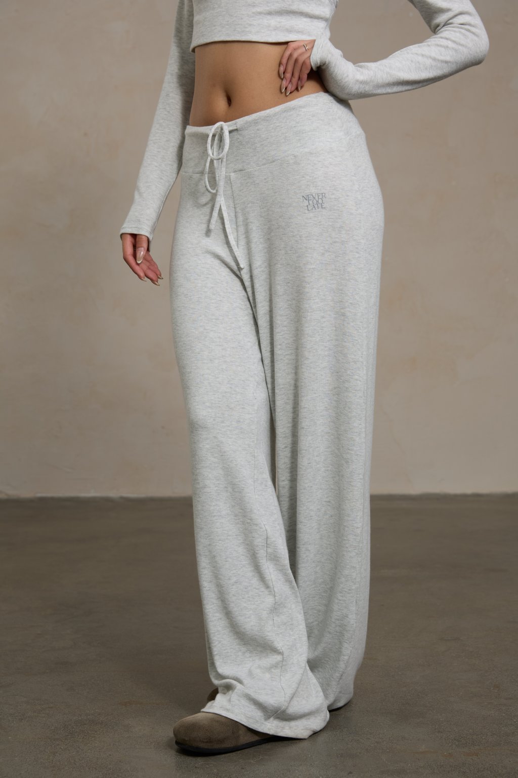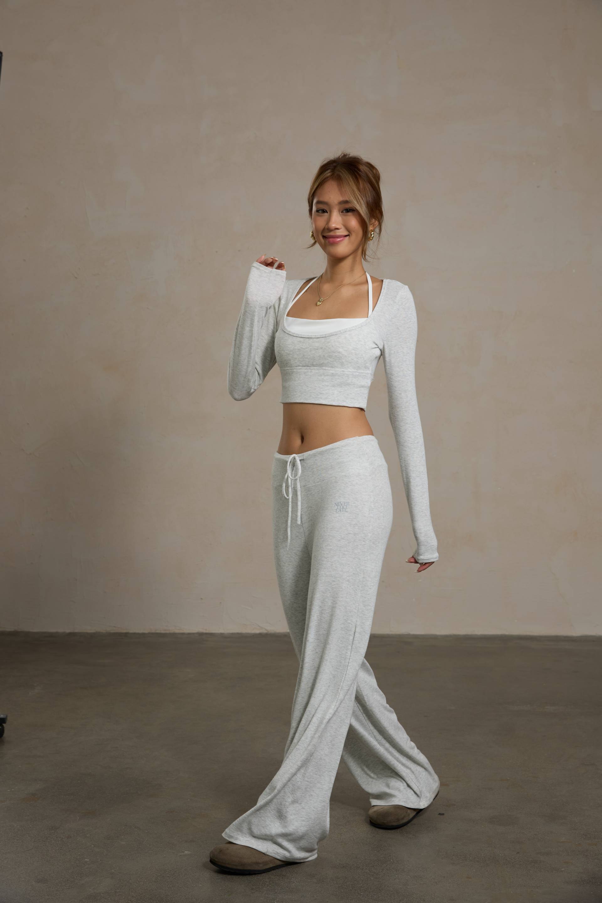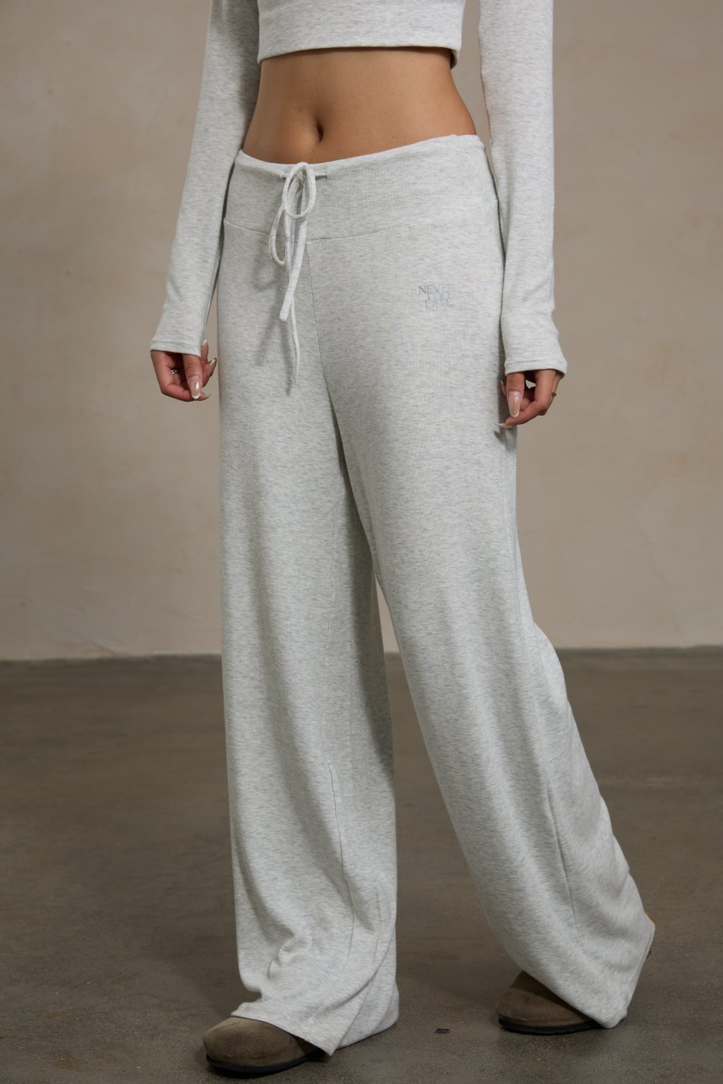 NVTP500- 白麻灰奶油慕斯絨垂墜感直筒休閒褲