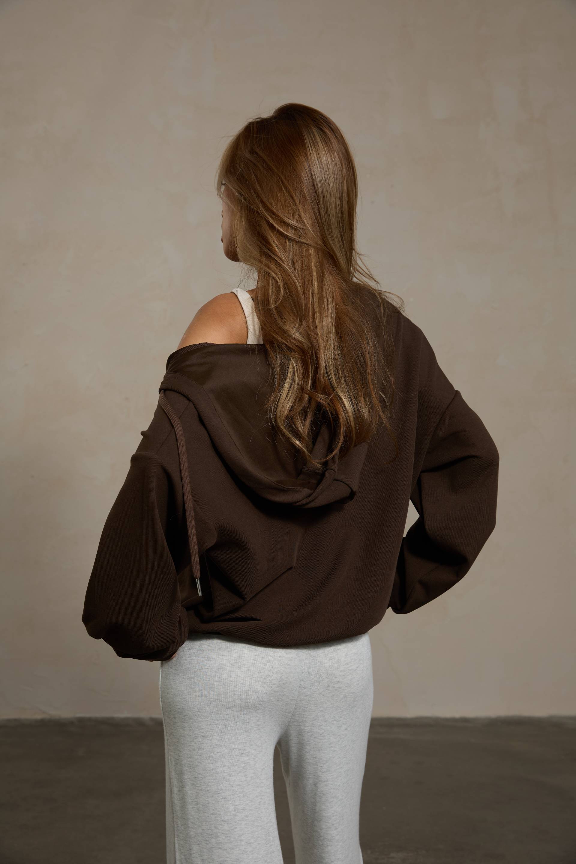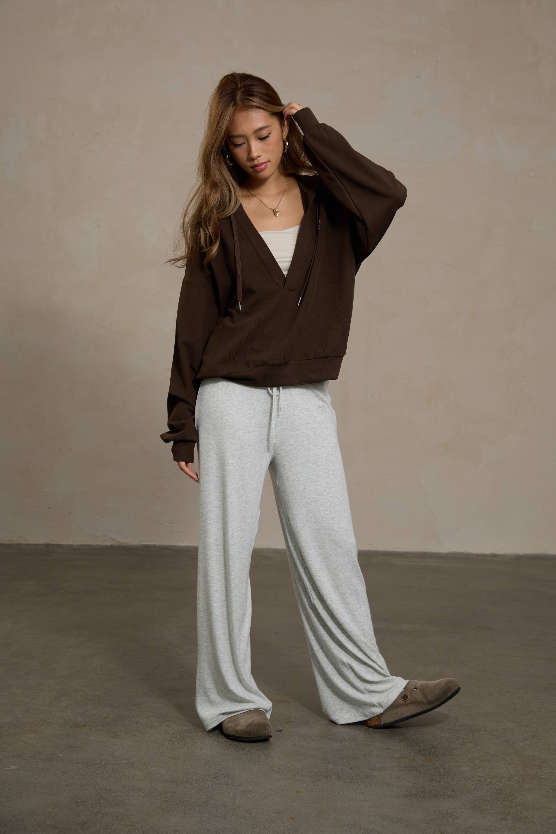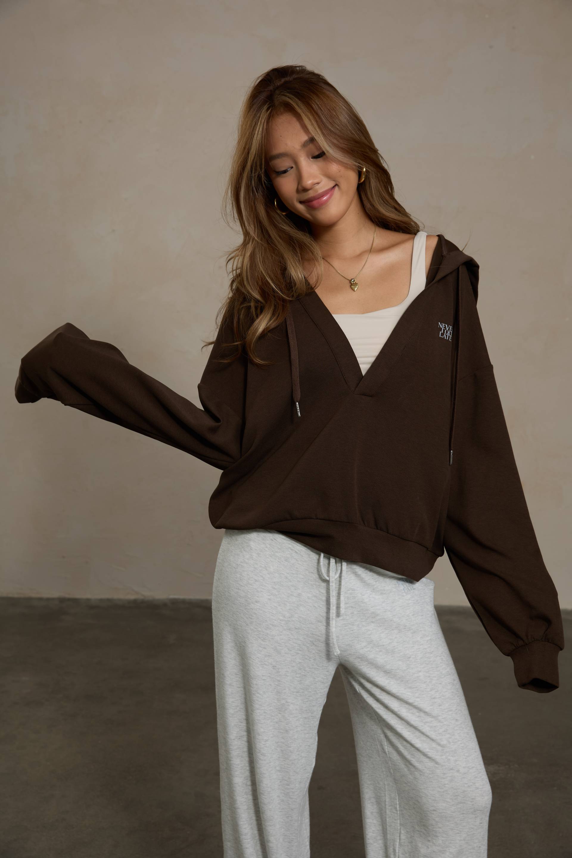 NVTO630- 特濃咖啡大V領防風保暖寬鬆連帽衛衣