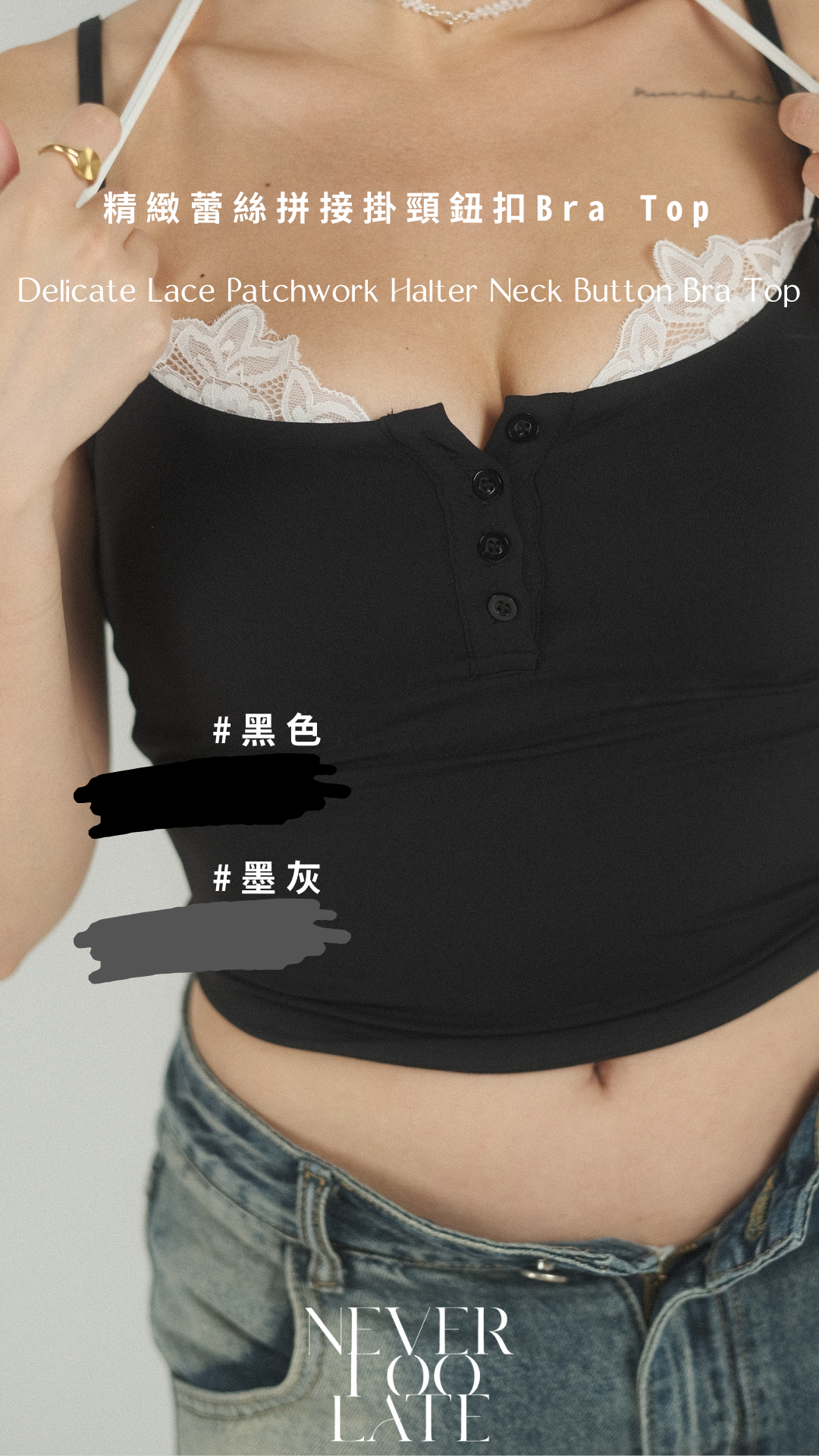 NVTT446- 黑色精緻蕾絲拼接掛頸鈕扣Bra Top