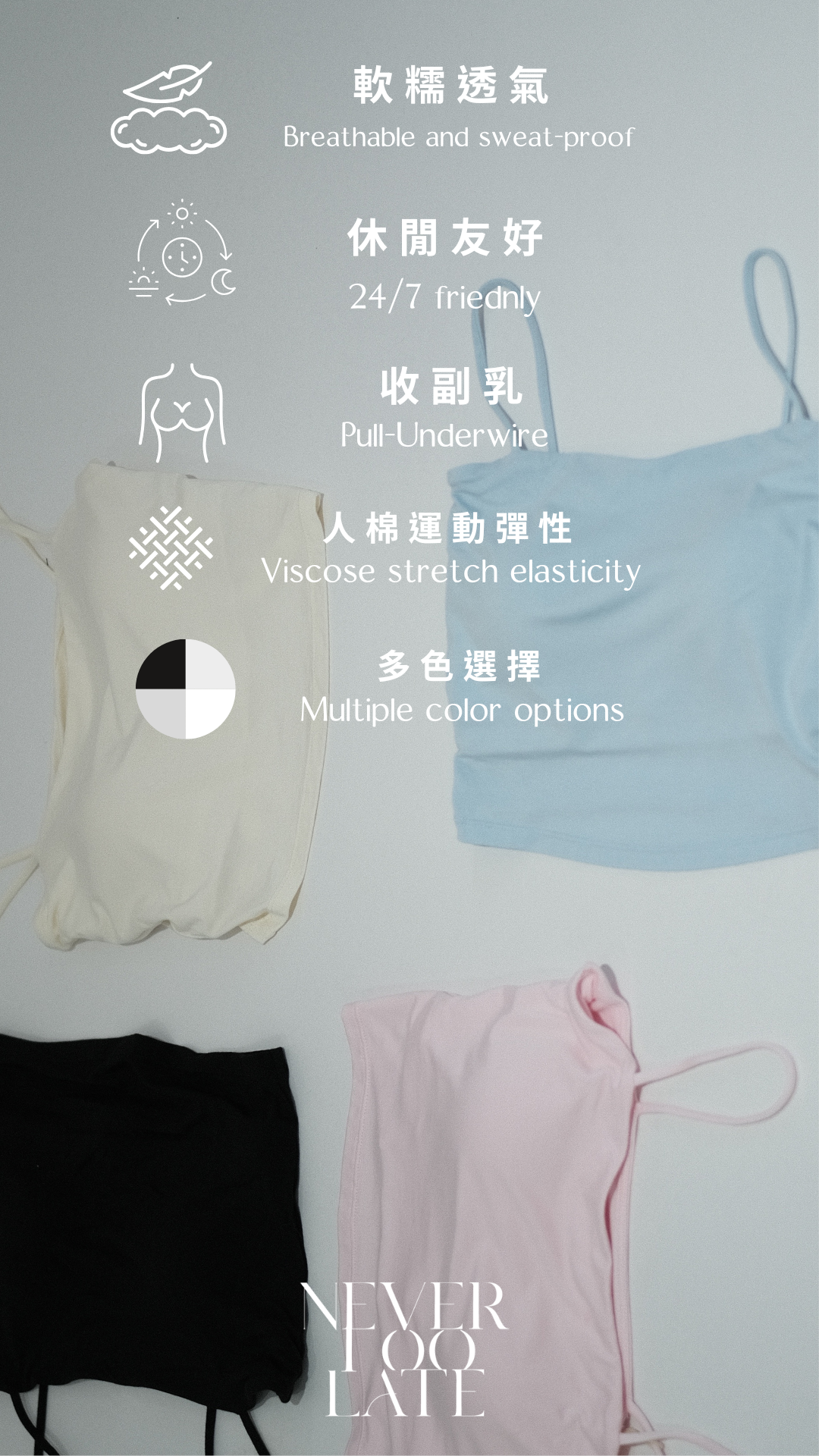 NVTT455-日常百搭棉花糖收副乳平口吊帶Bra Top(四色)