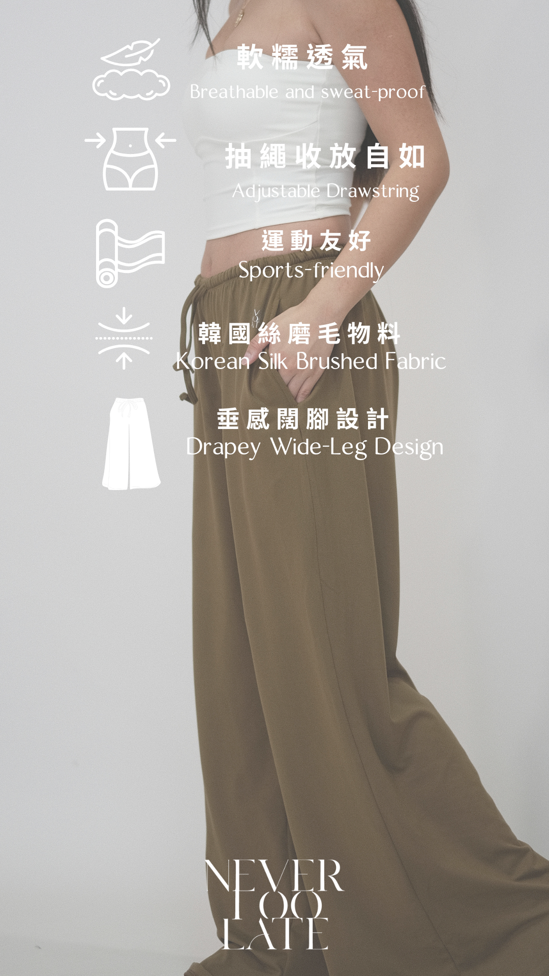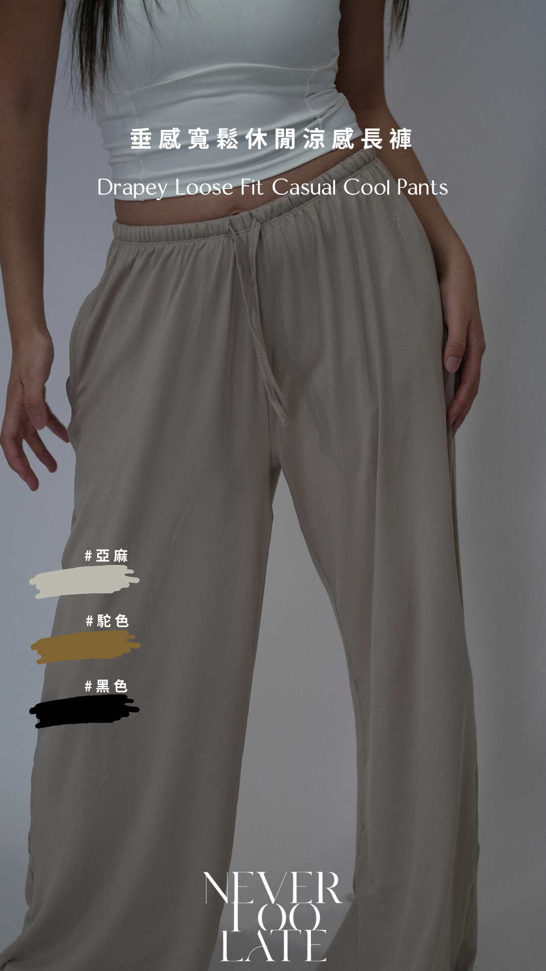 NVTP495- 駝色垂感寬鬆休閒涼感長褲