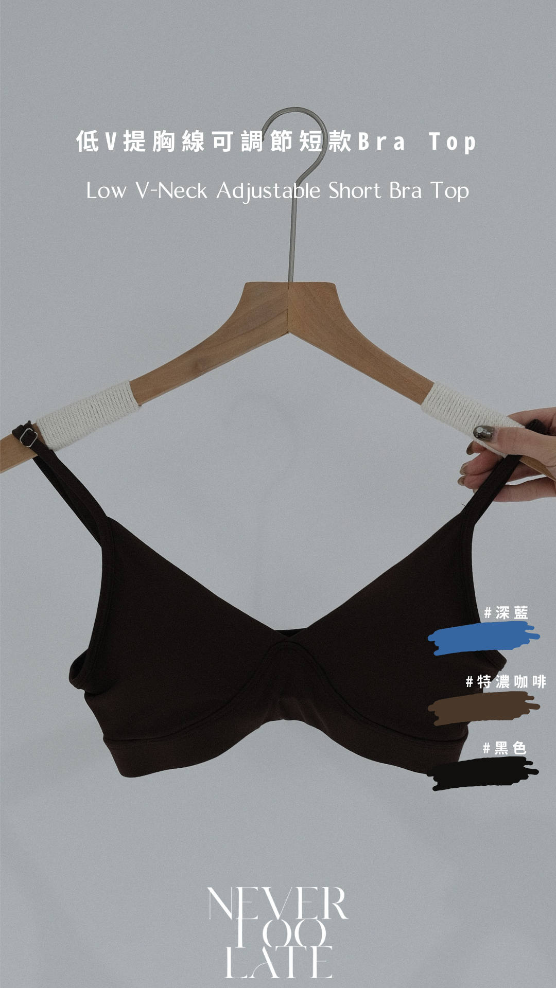 NVTT459- 黑色低V提胸線可調節短款Bra Top